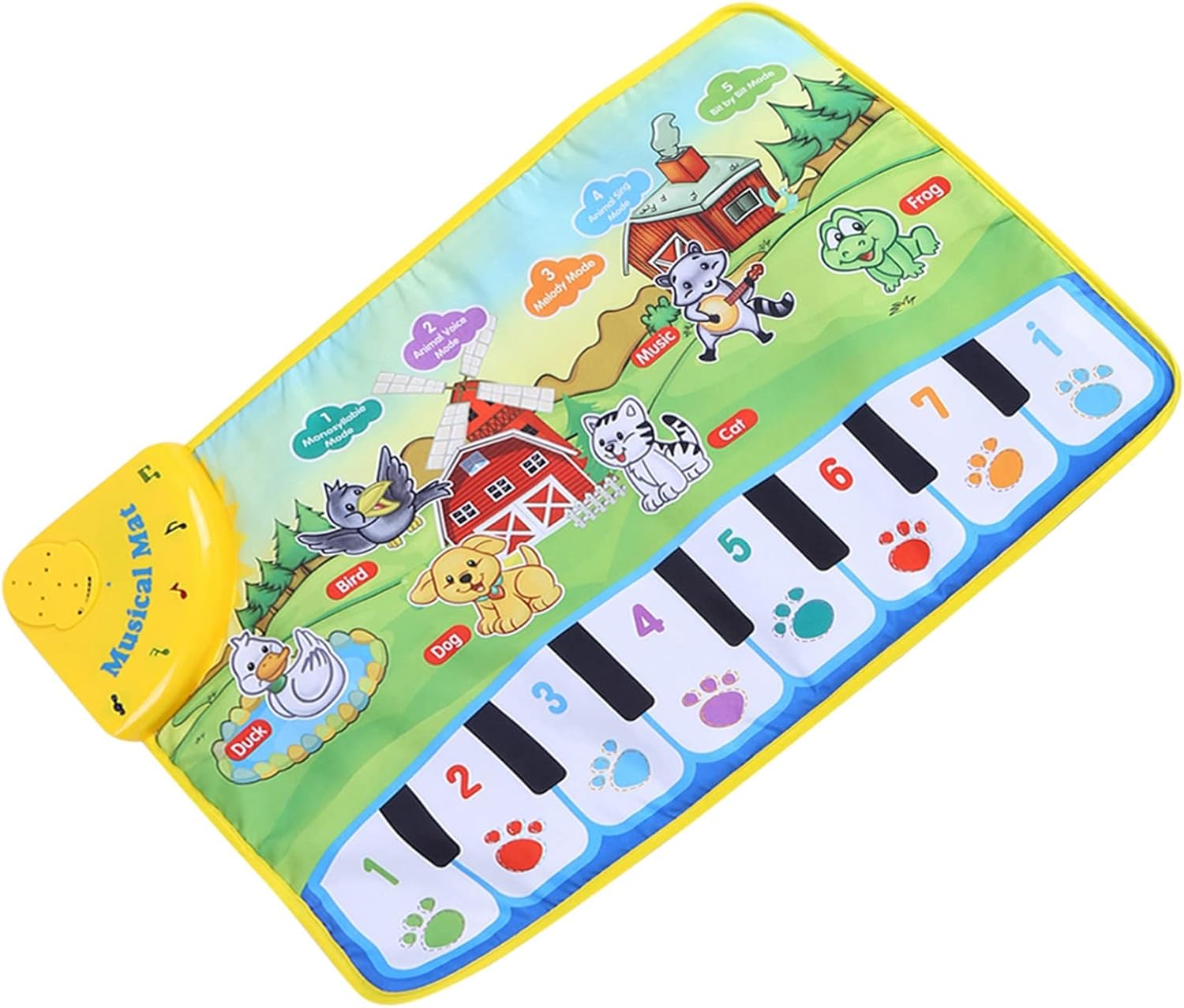[COMODO STOCCAGGIO] Risparmia spazio piegando questo tappetino musicale per bambini realizzato in plastica e tessuto. modalità, tra cui monosillabico, suono degli animali, melodia, degli animali e modalità traccia, l'udito del tuo bambino. [GIOCO EDUCATIVO] Migliora le capacità cognitive e le capacità di memoria mentre insegni al tuo bambino i colori e gli animali. Il design accattivante del modello fattoria con colori vivaci mantiene il tuo bambino intrattenuto e concentrato. Supporta lo sviluppo sensoriale riproducendo musica interattiva quando il bambino tocca determinate aree.