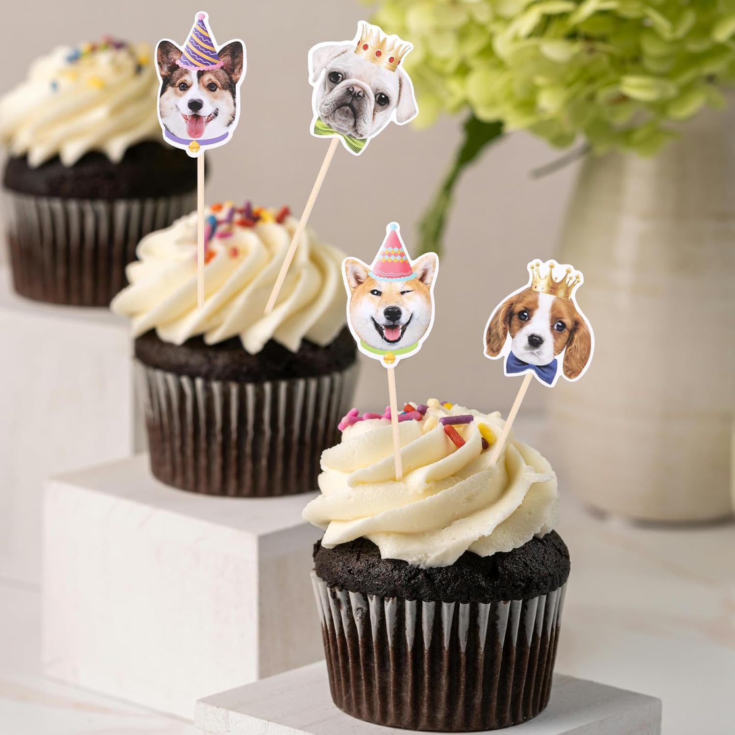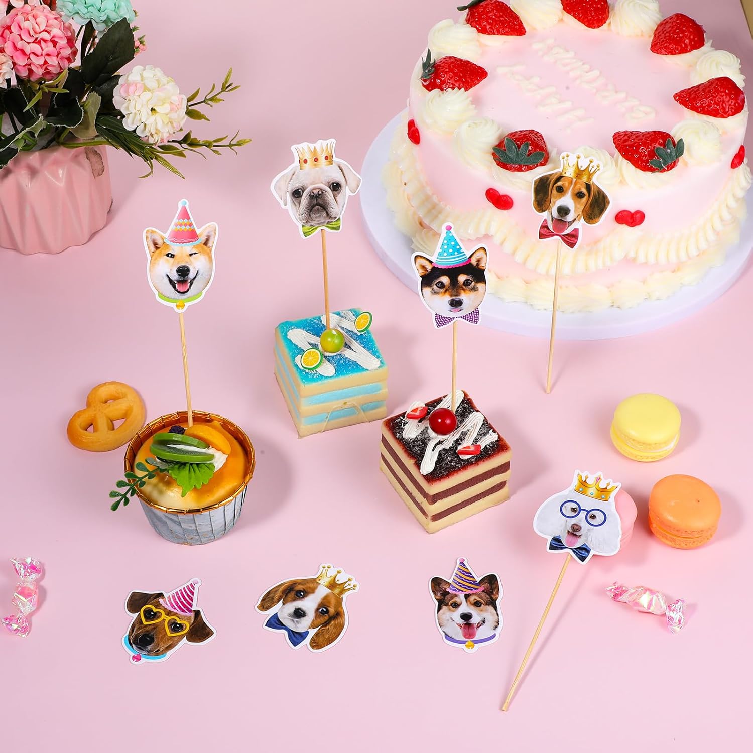 Ampio set di decorazioni per cupcake per cani: il nostro set di decorazioni per cupcake con glitter a tema cane contiene 24 decorazioni per torte realizzate con cura in 8 diversi design con 3 pezzi, perfetto per ogni cane, decorazione di compleanno e feste a tema Simpatico design della decorazione per torta di compleanno: queste adorabili decorazioni per cuccioli di cane mostrano volti giocosi di cane con effetto glitter e espressioni facciali amichevoli che rendono il tuo cane torta di compleanno una vera attrazione e arricchiscono i motivi fotografici Set di decorazioni per cake di alta qualità: realizzato in robusta combinazione di carta e bambù, le nostre tute decorative per cani sono durevoli, ecologiche e riutilizzabili senza sbiadire o rompersi per più applicazioni di festa Versatile decorazione per cupcake per cani: ideale come decorazione da tavolo per cani per feste di compleanno per bambini, feste in giardino e feste di famiglia. Le decorazioni per torte sono adatte per cupcake, torte, dessert e decorazioni creative a buffet Facile da usare il topper per cupcake a tema cane: i pratici topper per cupcake per cani possono essere facilmente posizionati rimuovendo la pellicola protettiva e applicando le bacchette di bambù, in modo da poter creare in un batter d'occhio splendide creazioni da dessert