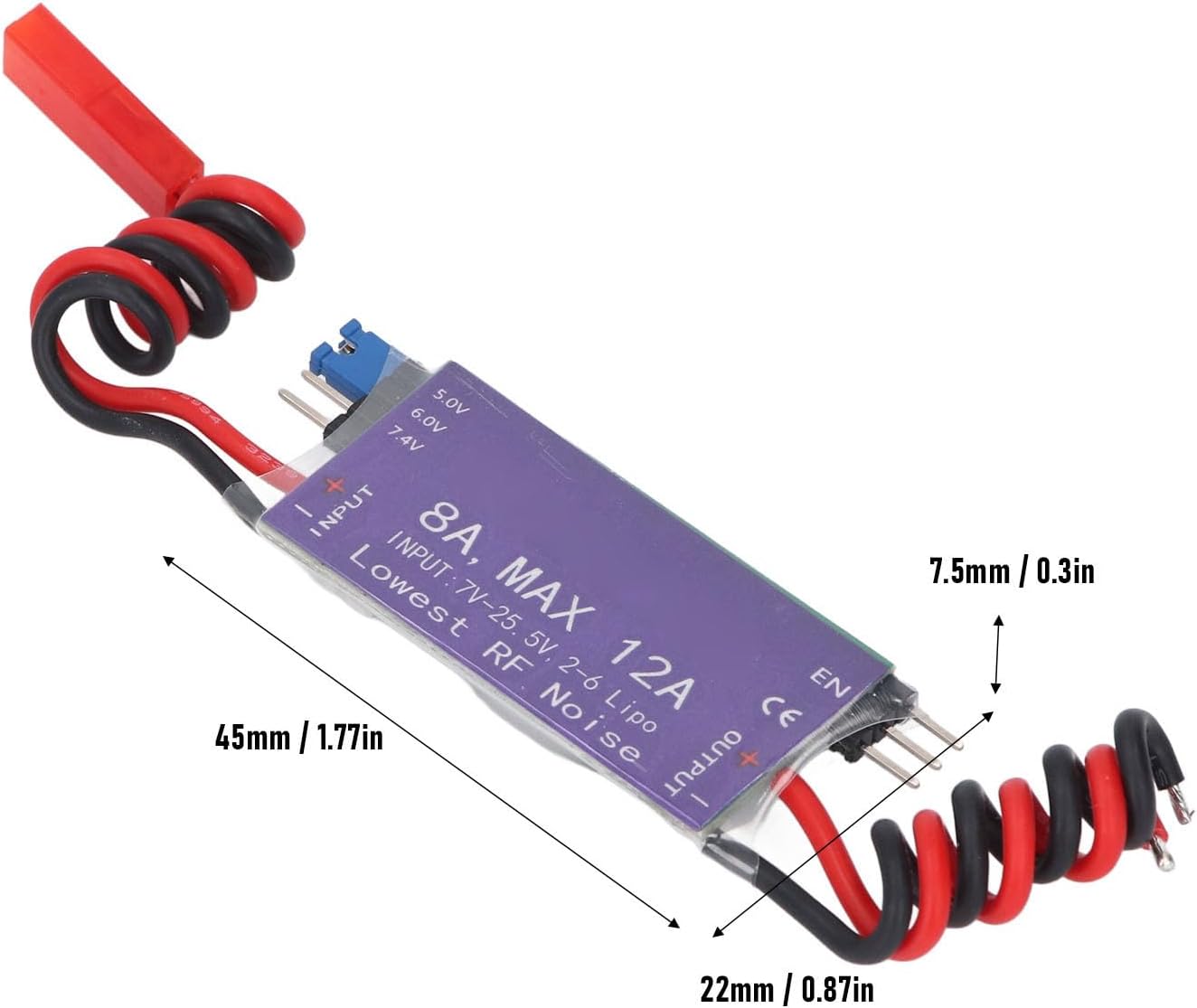 Potenza ad alte prestazioni: questo modulo di regolatore di tensione UBEC 8A offre un'uscita stabile 5V 6V o 7,4 V fino a 8A Potenza continua per droni e servitori RC elicotteri che garantiscono prestazioni affidabili in carichi pesanti. Progettazione efficiente: la scheda del regolatore di tensione UBEC presenta una tecnologia di rettifica sincrona che raggiunge l'efficienza del 93% fornendo al contempo una protezione della corrente e della temperatura per la durata estesa del dispositivo. Ampia compatibilità: il modulo del regolatore di tensione supporta batterie NIMH 2-6s LiPO e 6-16 cella che eliminano la necessità di pacchetti di ricevitori separati in aerei e robotica di auto RC. Riduzione del rumore: con tecnologia di interferenza anti -interferenza integrata questa scheda di regolatore di tensione UBEC riduce al minimo il rumore elettromagnetico garantendo la trasmissione del segnale regolare per i ricevitori. Build compatta: misura 45x22x7,5 mm Questo modulo del regolatore di tensione offre una corrente massima 12A in un design ultra leggero ideale per applicazioni RC e droni limitate nello spazio.