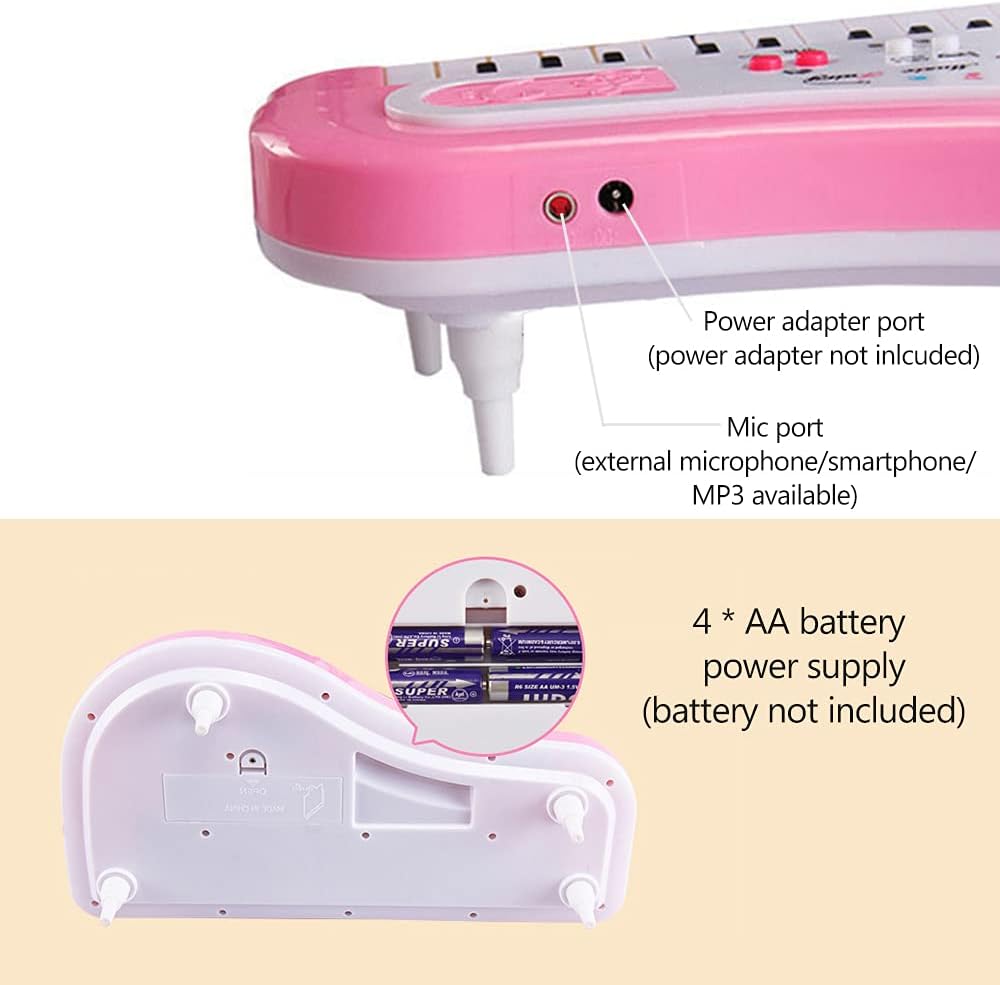 Materiali di la tastiera per piano elettrico è realizzata in materiale plastico premium, garantendo che dura la durata. Produce suoni chiari e piacevoli, perfetti per i giovani appassionati di musica. Caratteristiche per bambini: il pianoforte presenta un interruttore di ondazione a 2 posizioni, gambe rimovibili, un microfono ad angolo regolabile e un jack per collegare un microfono o un altoparlante. per bambini di età superiore ai 3 anni. Idea squisita: questa deliziosa tastiera per pianoforte elettrica è un meraviglioso per i bambini nei compleanni o per la giornata per bambini. È compatto, salvaspazio e può essere alimentato da un adattatore di alimentazione o da 4 batterie AA per uso interno ed esterno. Design multifunzionale: con 24 melodie, 8 musiche a percussione e 4 effetti sonori regolabili dai pulsanti, questo piano offre una varietà di opzioni musicali per i bambini da esplorare e divertirsi. Divertimento educativo: questo pianoforte a 37 tasti non è solo un giocattolo divertente, ma aiuta anche nello sviluppo di capacità di udito e coordinamento a mano nei bambini. Fornisce un'esperienza di apprendimento sana attraverso la musica.