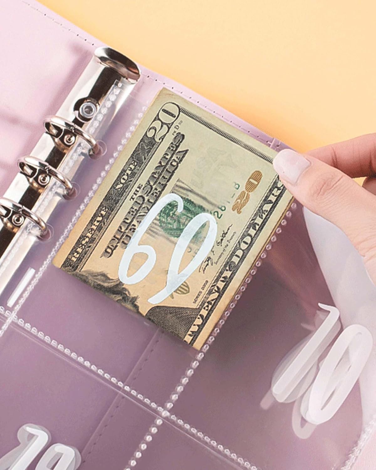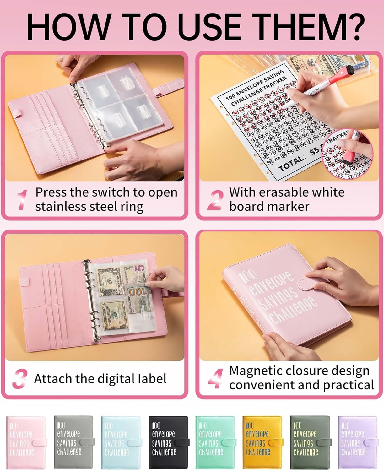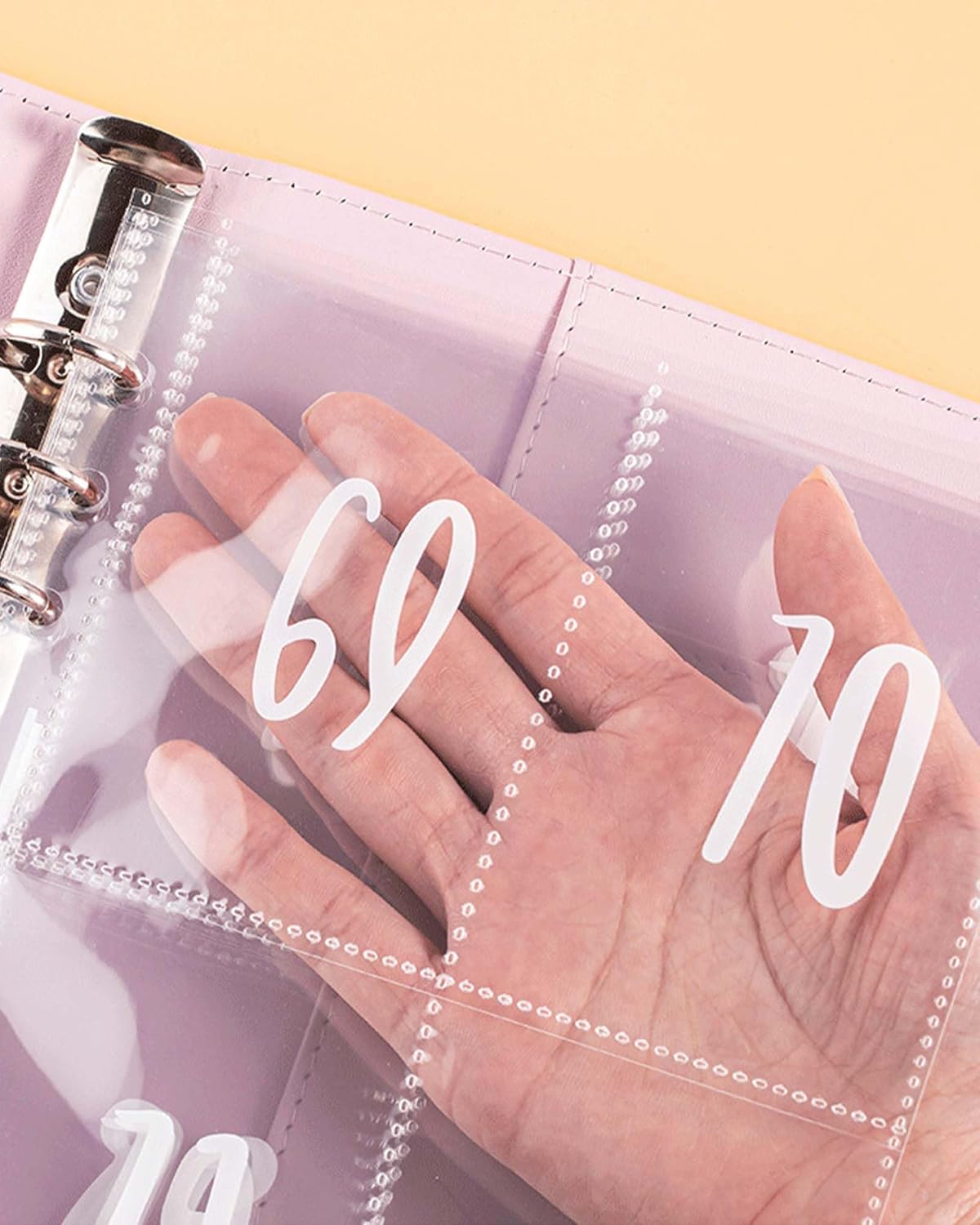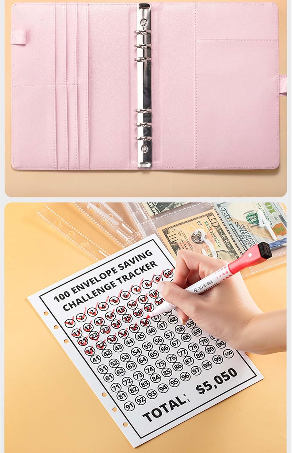 【Risparmiare 5,050 euro con facilità!】Sfida del risparmio in 100 buste! Iniziate con 1€ il primo giorno e raddoppiate ogni giorno ...... Al 100° giorno avrete risparmiato 5,050 €! 【Materiali pregiati per una protezione ottimale】Realizzate in pelle resistente e materiale in PVC che si sente comodamente in mano, le buste sono trasparenti, impermeabili e antipolvere e mantengono al sicuro i vostri contanti, banconote o carte. 【Design e accessori sofisticati】Si adatta facilmente a zaini e borse per essere trasportata. Un modo divertente e facile da capire per raggiungere facilmente gli obiettivi finanziari e sviluppare la consapevolezza e la responsabilità finanziaria delle persone. 【Versatile e facile da usare】Adatto a diverse occasioni, non è solo un regalo pratico, ma anche uno strumento efficace per la gestione delle finanze. Il raccoglitore a fogli sciolti Savings ha diverse tasche per il denaro tra cui scegliere e uno stile di carattere facile da vedere a colpo d'occhio. È anche un regalo per instillare nei bambini sane abitudini di risparmio. 【Cosa contiene.】Include 25 fogli di pellicola trasparente a 4 quadratini (100 scomparti per carte in totale), 1 cartellina in pelle PU A5, 3*tessere per la sfida dei 100 giorni (in euro), penna cancellabile. Disponibile per 100 giorni.