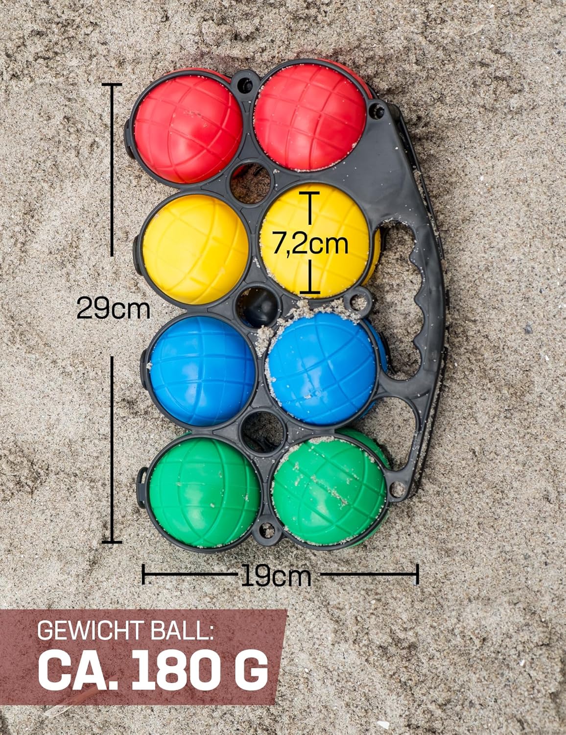 ✅ Set JELEX BOCCIA: il gioco di bocche di JELEX ti offre un'esperienza di gioco di alta qualità con 8 palline da bocce (diametro 7,2 cm) in colori accattivanti, 1 pallina bersaglio e 1 pratico cestino per il trasporto. Le sfere in polietilene resistente hanno una sensazione ideale e sono facili da tenere in mano. La borsa in polietilene con manico (circa 29 x 19 x 7,1 cm) consente di riporre le palline salvaspazio ed è particolarmente robusta. ✅ INCLUSO: borsa per il trasporto: il set JELEX Boule è il tuo compagno ideale in viaggio e in viaggio. La borsa non solo offre un luogo sicuro per riporre le vostre palline da bocce, ma anche un trasporto facile e veloce. ✅ Sfere robuste (diametro 7,2 cm) – Le palline per bocciak JELEX Outdoor sono realizzate in robusto polietilene e riempite d'acqua. Questo materiale impedisce la rottura delle sfere e garantisce un divertimento duraturo. Il gioco Boule è perfetto per diverse superfici come prato, piazze, sentieri, spiaggia ed è anche facile da pulire. ✅ Divertimento enorme per tutte le età: il gioco JELEX Boule sfida la tua sicurezza. L'obiettivo è quello di avvicinarsi possibile al piccolo bersaglio con le sfere più grandi o di allontanare i proiettili nemici dal bersaglio. Il metro a nastro incluso nel set consente di determinare con precisione la distanza e di identificare una squadra vincente o vincente. ✅ Favorisce l'abilità e la concentrazione: il gioco Boule di JELEX non è solo incredibilmente divertente, ma stimola anche abilità e concentrazione. Adatto per principianti e professionisti, combina generazioni e offre divertimento in giardino, in piazza, in spiaggia e oltre. Lasciate che il set JELEX Boule arricchisca il vostro tempo libero!