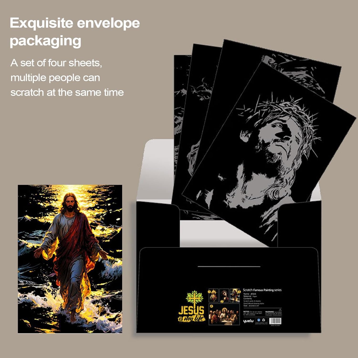 Esplorare l'arte spirituale: sperimenta le fasi culturali e religiose della vita di Gesù con diversi temi classici, Colori vivaci: con una robusta struttura in carta spessa, questa arte antigraffio garantisce danni ridotti, tonalità vivaci e artigianato senza cuciture, offrendo agli utenti una soddisfazione ineguagliabile Outlet creativo rassicurante: trovare la pace interiore e sbloccare l'immaginazione attraverso progetti artistici graffianti che offrono un piacevole senso di realizzazione, in uno sforzo semplice ma coinvolgente elaborato per il relax Presentazione elegante: la confezione di alta qualità assicura che il set di arte Scratch Off sia un accessorio raffinato e un regalo premuroso che protegge l'opera d'arte con stile e funzionalità Versatile negli usi: coltiva l'espressione personale, innesca l'ispirazione, migliora l'educazione artistica e promuove un legame più profondo con le narrazioni religiose attraverso opere interattive Scratch-Off