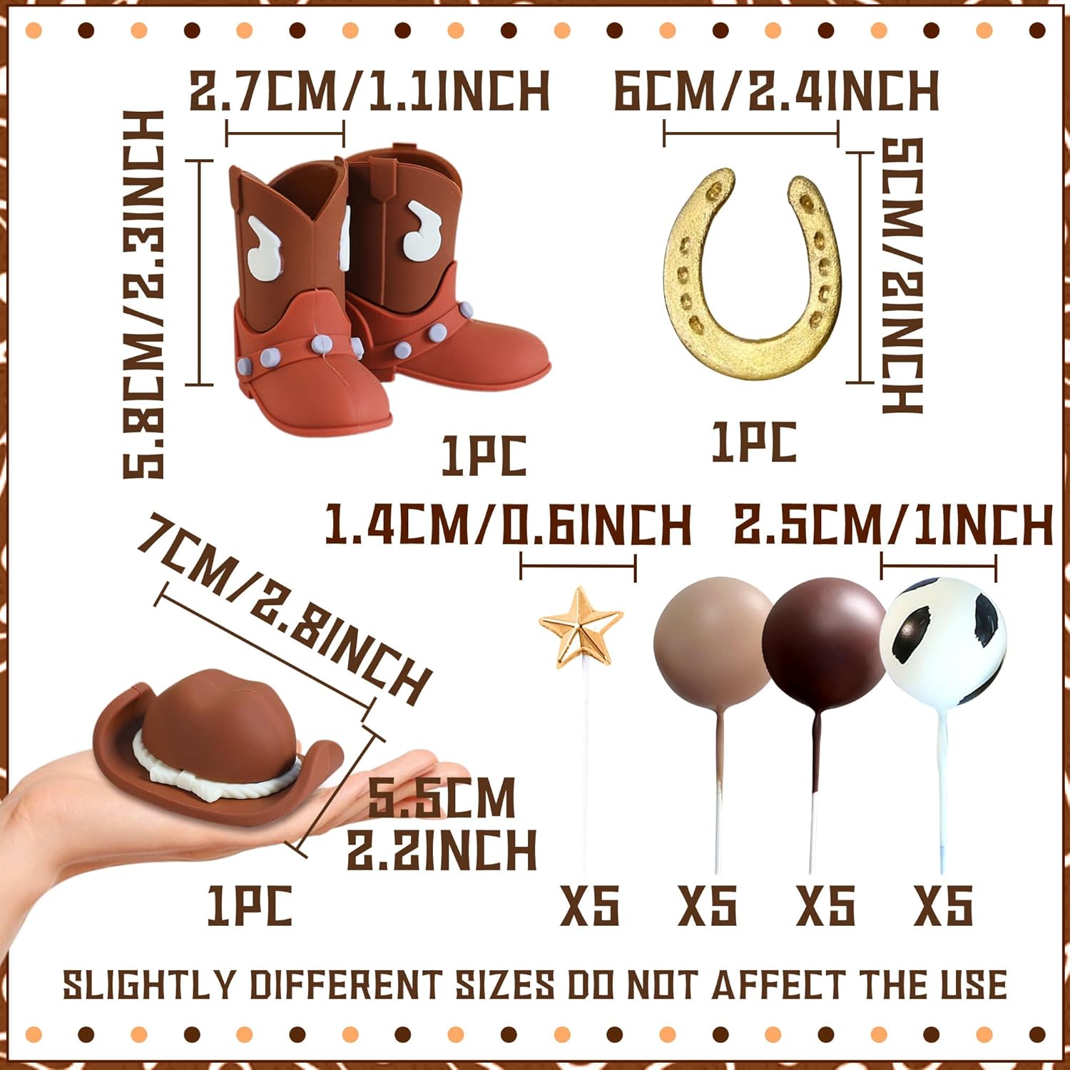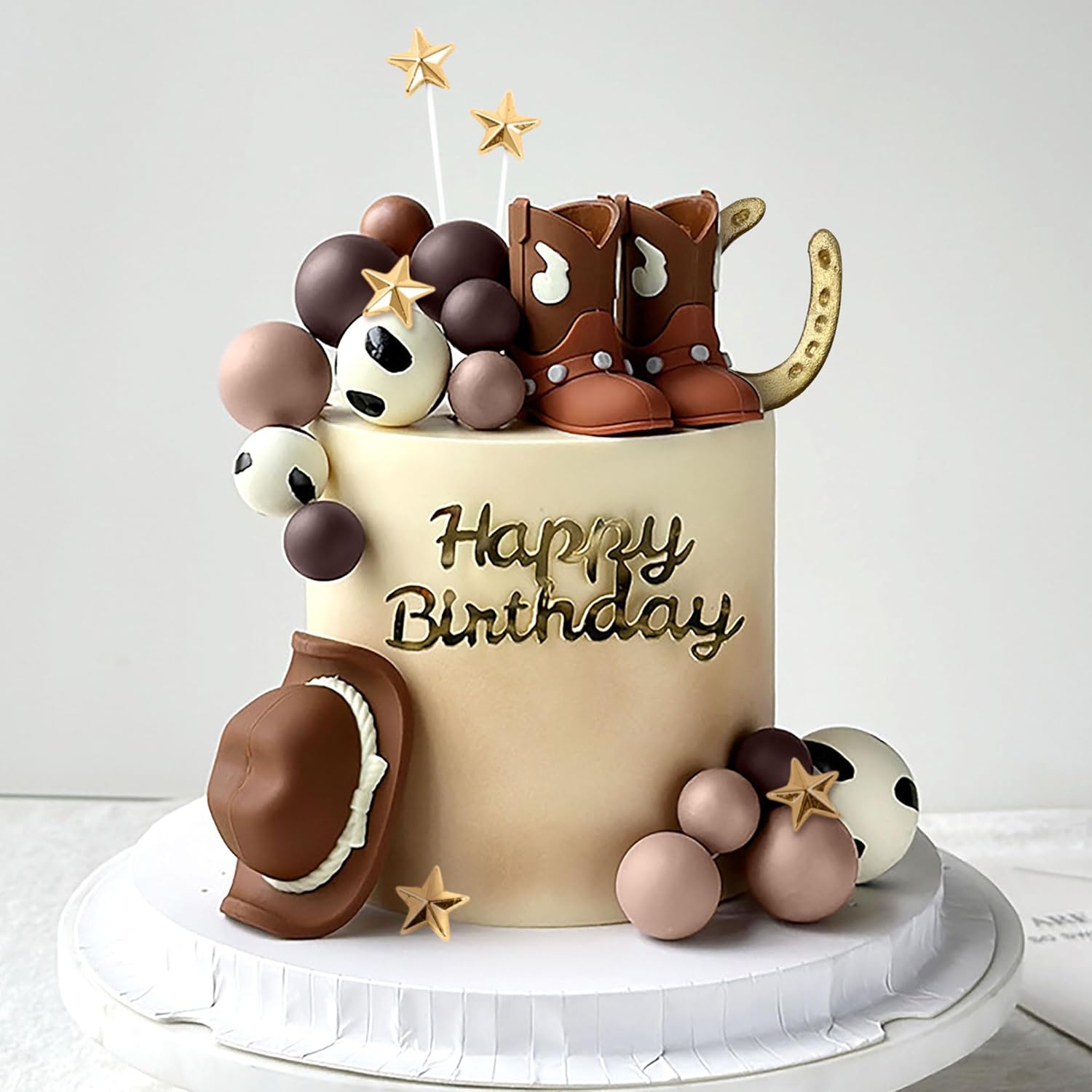 La nostra decorazione per torta da rodeo da cowboy porterà un tocco di sogno e abbellimento alla tua festa La nostra decorazione per torta di compleanno da cowboy porterà gioia senza precedenti e bellissimi momenti alla tua famiglia e ai tuoi amici Per la persona amata, sentite il compleanno indimenticabile e godetevi questo momento toccante insieme Cosa riceverai: 1 cappello da cowboy, 1 paio di stivali da cowboy, 1 ferro di cavallo, 15 palline per la torta, 5 stelle per la torta Se hai problemi con il prodotto, faccelo sapere