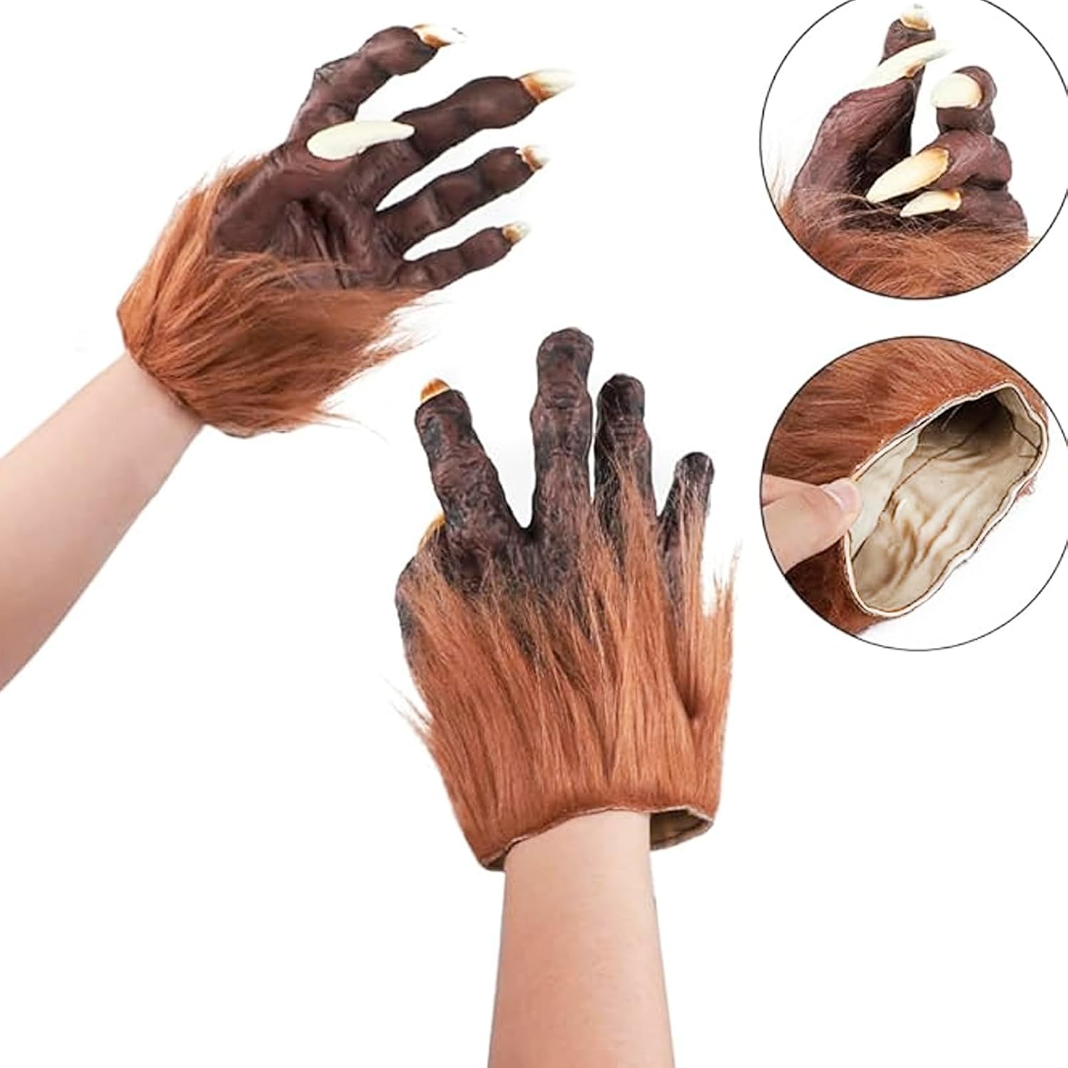 JIAHG Guanti da Gorilla Halloween Carnevale Festival Horror Guanti da Lupo Mannaro Pelliccia Sintetica Accessorio per Costume Animale Adulto Scimpanzé Cosplay Spettacolo Teatrale