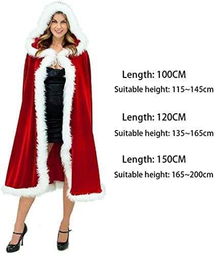 VELLUTO DI ALTA QUALITÀ: il mantello natalizio rosso realizzato in poliestere, morbido e piacevole al tatto, resistente, delicato sulla pelle e traspirante ed è facile da indossare e da togliere MYSTERIOUS LOOK DESIGN: cappotto rosso con cappuccio, il design è così cool. Stile classico cappotto natalizio, assolutamente il condimento più bello per la festa di Natale. La chiusura anteriore rende molto comodo indossare e togliere il mantello Crea una forte atmosfera natalizia: con il bordo bianco in pelliccia sintetica migliorerai notevolmente l'atmosfera di Natale e Capodanno, ti renderà più affascinante, il mantello rosso di Natale porta grande divertimento alle feste di Natale e alle riunioni di famiglia, ecc Ampia applicazione: i costumi cosplay da donna sono oggetti di scena ideali per Halloween, feste a tema, cosplay, Natale, feste in maschera, Pasqua, Capodanno, spettacoli scolastici e molto altro ancora Taglie disponibili: ci sono 4 misure a scelta (con lunghezza del cappuccio): 100 cm (altezza consigliata: 110-130 cm); 120 cm/47,2 pollici (altezza consigliata: (130-160 cm), 150 cm / 59,1 pollici (altezza consigliata: 160-170 cm), 8 cm. 0 cm. 4 pollici, perfetto per la maggior parte degli adulti, donne, uomini e donne