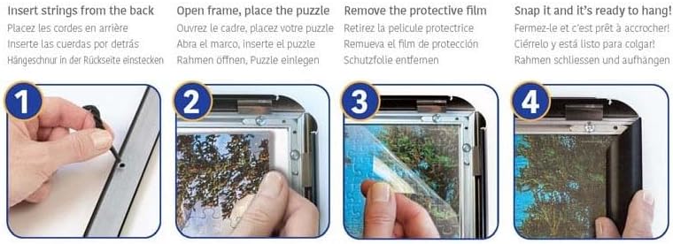 Migliora le tue creazioni: questa cornice per puzzle ti permette di creare le tue creazioni dei veri oggetti decorativi. Il suo design elegante in alluminio nero opaco, dallo stile contemporaneo, si adatta a qualsiasi stile di casa. Ha idealmente caratterizzato il puzzle, mentre lo protegge. SISTEMA DI CLIPS INGENIOSO: Grazie al suo sistema di clip, l'inquadratura di puzzle è molto facile! Inoltre, questo ingegnoso sistema permette anche di cambiare facilmente il puzzle, secondo i vostri desideri e le vostre ultime creazioni! TELAIO PER PUZZLES DA 12 A 500 PEZZI: Questa cornice è progettata per essere compatibile con qualsiasi puzzle di dimensioni massime 47,70 x 34,20 cm. Queste dimensioni corrispondono ai puzzle 500 pezzi dei marchi Bluebird, Pieces & Peace o Grafika. Dimensioni: le dimensioni della cornice sono 47,9 x 34,40 cm. IL SPECIALISTA DEGLI ACCESSORI PER PUZZLES : Jig & Puz è il marchio francese dedicato agli accessori per puzzle. I nostri prodotti accompagnano gli appassionati di puzzle, per offrire loro condizioni ottimali. Trova tappetini per puzzle, scatole di smistamento, puzzle board, vassoi o colle per puzzle