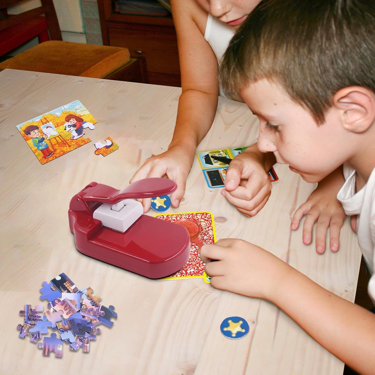 Abilità perfetta: la nostra macchina per creare puzzle garantisce bordi non macchiati con una testa di taglio precisa e affilata. Con un efficiente funzionamento del motore, consente un taglio del filo sottile e liscio in vari materiali, perfetto per l'artigianato dei bambini. Design sicuro: garantisci la sicurezza del tuo bambino con la struttura portatile della nostra macchina per creare puzzle e guaina anti-Taglio. Leggero e facile da verificare, è anche dotato di protezione contro il surriscaldamento per offrire un business spensierato ai più piccoli. Multiuse: migliora il tuo gioco di creazione con una macchina versatile per la creazione di puzzle in grado di tagliare accuratamente scheletri e creare puzzle. Perfetto per soddisfare le diverse esigenze di artigianato per bambini e funge anche da strumento di decorazione per aggiungere stile ai tuoi progetti. Sviluppa le abilità: migliora la coordinazione degli occhi e la pazienza di tuo figlio creando un regalo di puzzle unico per la vigilia di Capodanno con la nostra auto per creare puzzle. Questo strumento di apprendimento creativo insegna la cognizione del , la corrispondenza dei colori e la costruzione spaziale per una maggiore crescita mentale! Stimola l'immaginazione: promuove la creatività e le abilità manuali di tuo figlio con il nostro creatore di puzzle. Offrendo la possibilità di progettare o scaricare risorse di rete per creare pezzi di puzzle di tutte le forme e dimensioni, stimolando l'innovazione e le competenze pratiche per promuovere l'ingegno.