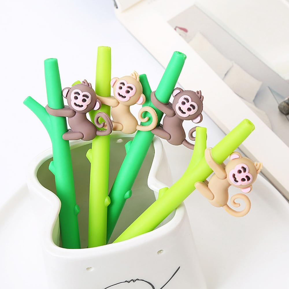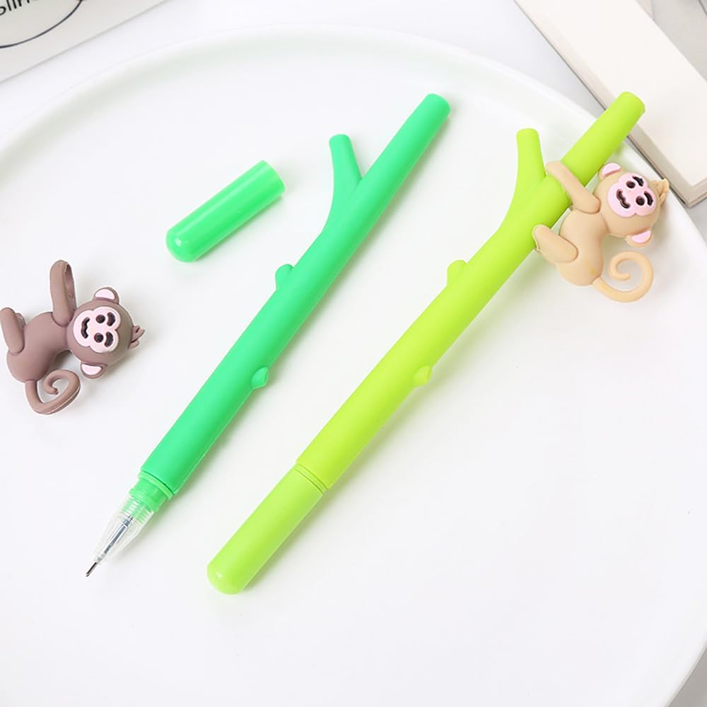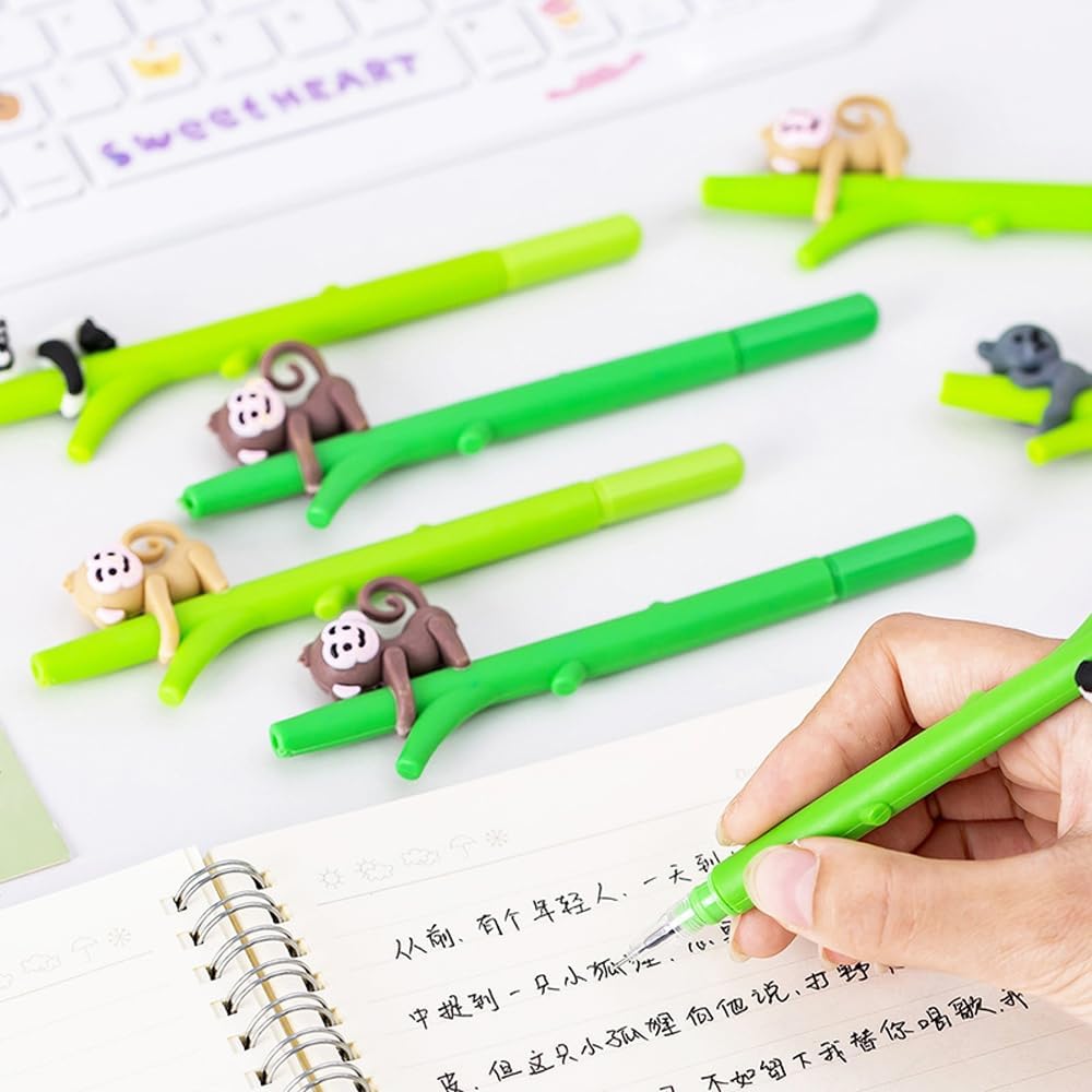 Contenuto della confezione: 8 penne a inchiostro gel a forma di scimmia, 2 stili, 4 pezzi per ogni stile. Materiale: realizzato in guscio di plastica e ricariche di alta qualità. Dimensioni: inchiostro nero con punta a sfera da 0,5 mm. Colore: verde scuro e verde chiaro. Scrivere senza intoppi, è possibile utilizzarlo per lavorare, studiare, per darti una buona esperienza di scrittura. Design carino a forma di scimmia, sono un regalo perfetto per amici e bambini.