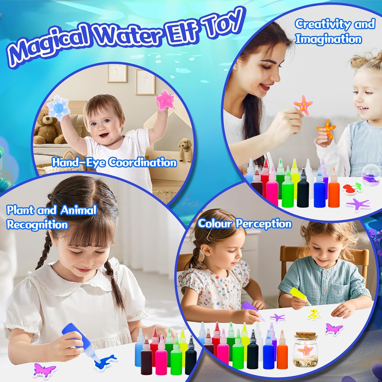 🐳MAGIC WATER ELF TOY KIT: Riceverete: Scatola*1, 60ml di gel*12 (colore casuale), 50ml di gel fosforescente*6, forma tridimensionale*16 (stile casuale), bottiglia di vetro*2, misurino da 100ml*1, retino da pesca*2, pennello*1, conchiglia*1 sacchetto, guanti*2, lattato di calcio in polvere*4 sacchetti, bottiglia trasparente*1, pietre colorate fosforescenti*1 sacchetto e istruzioni*1.I bambini possono creare diversi tipi di folletti d'acqua. 🐋SICURO E ATOSSICO: Questo set di giochi in idrogel è realizzato con materiali adatti ai bambini. L'idrogel e il lattato di calcio in polvere sono sicuri e atossici, i bambini possono toccarli senza preoccupazioni. Gli stampi sono realizzati in plastica riutilizzabile, sicura e atossica, con superficie liscia, robusta e durevole, non facile da sbiadire e in grado di divertire i bambini per molto tempo. 🐬EDUCATIVO E DIVERTENTE: Con questo set di folletti d'acqua, i bambini possono sperimentare il divertimento pratico e sviluppare le loro abilità pratiche mentre realizzano i folletti d'acqua. Realizzando le fate d'acqua in 3D, i bambini imparano a giudicare i diversi animali e piante. Inoltre, allena le abilità manuali, la creatività, l'attenzione, la percezione dei colori e la coordinazione occhio-mano dei bambini. 🐟MAGICI FOLLETTI D'ACQUA FAI-DA-TE: Immergiti in un magico mondo acquatico in 3D! Con 16 stampi di forma diversa e 18 colori di gel d'acqua, i bambini possono creare i loro animali e piante colorate in gel d'acqua. Basta versare il gel d'acqua magico negli stampi e poi nella giusta proporzione di soluzione acquosa di lattato di calcio e in 3 secondi si possono creare magici folletti d'acqua! Leggere attentamente le istruzioni e il video quando si usa per la prima volta. 🐠SCELTA REGALO PERFETTA: Questo giocattolo artigianale è il regalo perfetto per i bambini dai 3 anni in su ed è ideale per Natale, Halloween, compleanni, feste estive, vacanze scolastiche e weekend di divertimento. Non solo offre ai bambini il divertimento della manualità, ma è anche una perfetta alternativa ai dispositivi elettronici. Può anche essere usato per interagire tra genitori, figli e amici, permettendo ai bambini di divertirsi e di intrattenersi.