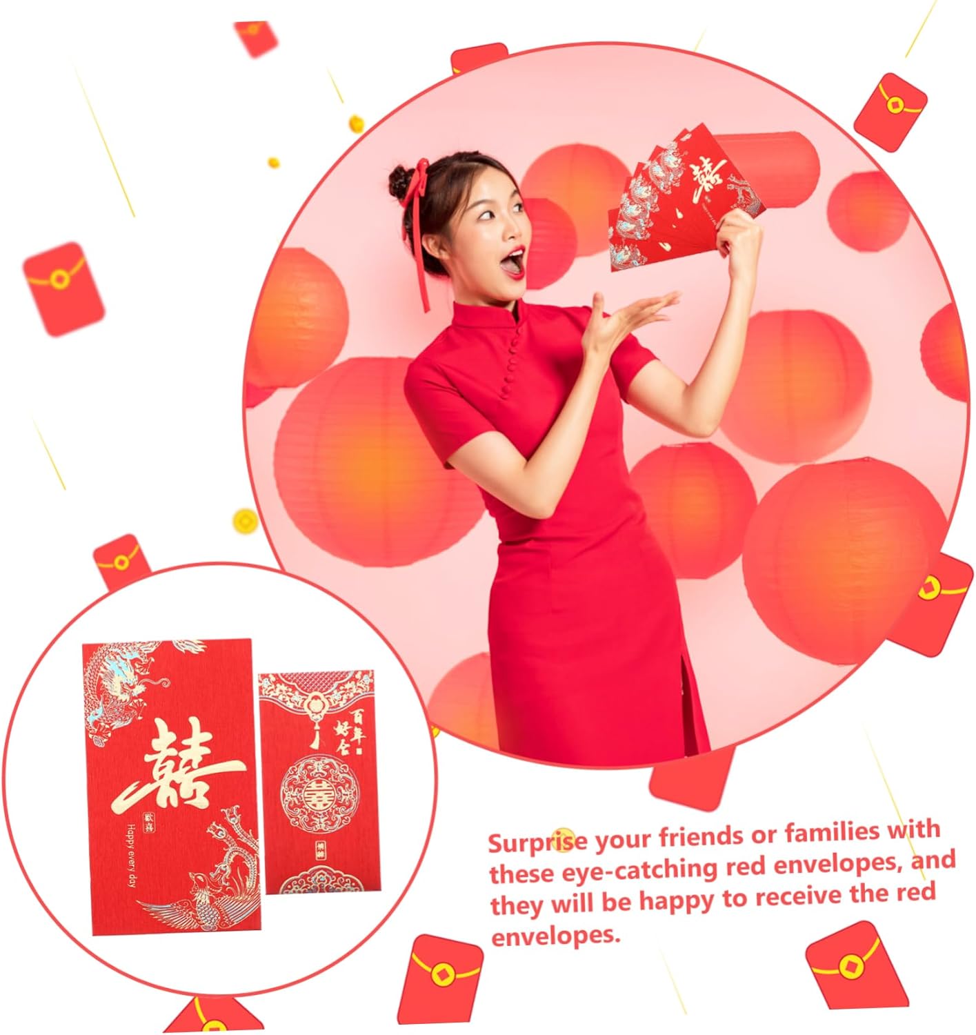 Busta rossa per il festival: il rosso è un simbolo di fortuna per i cinesi, i pacchetti rossi hanno e il destinatario sentirà la tua gentilezza, porta soldi Buste rosse cinesi: grandi buste per il capodanno lunare cinese, festival o feste di matrimonio, buste rosse cinesi Pacchetto rosso: design in stile cinese, forte sapore tradizionale cinese, assolutamente piacevole per il destinatario, tasca portafortuna Buste per denaro contante: ogni busta rossa augura ai destinatari gioia, prosperità, benedizioni, ecc., fortuna buste rosse per denaro Buste rosse: artigianato eccellente, curato in ogni dettaglio per conferire un aspetto chic, elegante e bello, buste rosse riutilizzabili