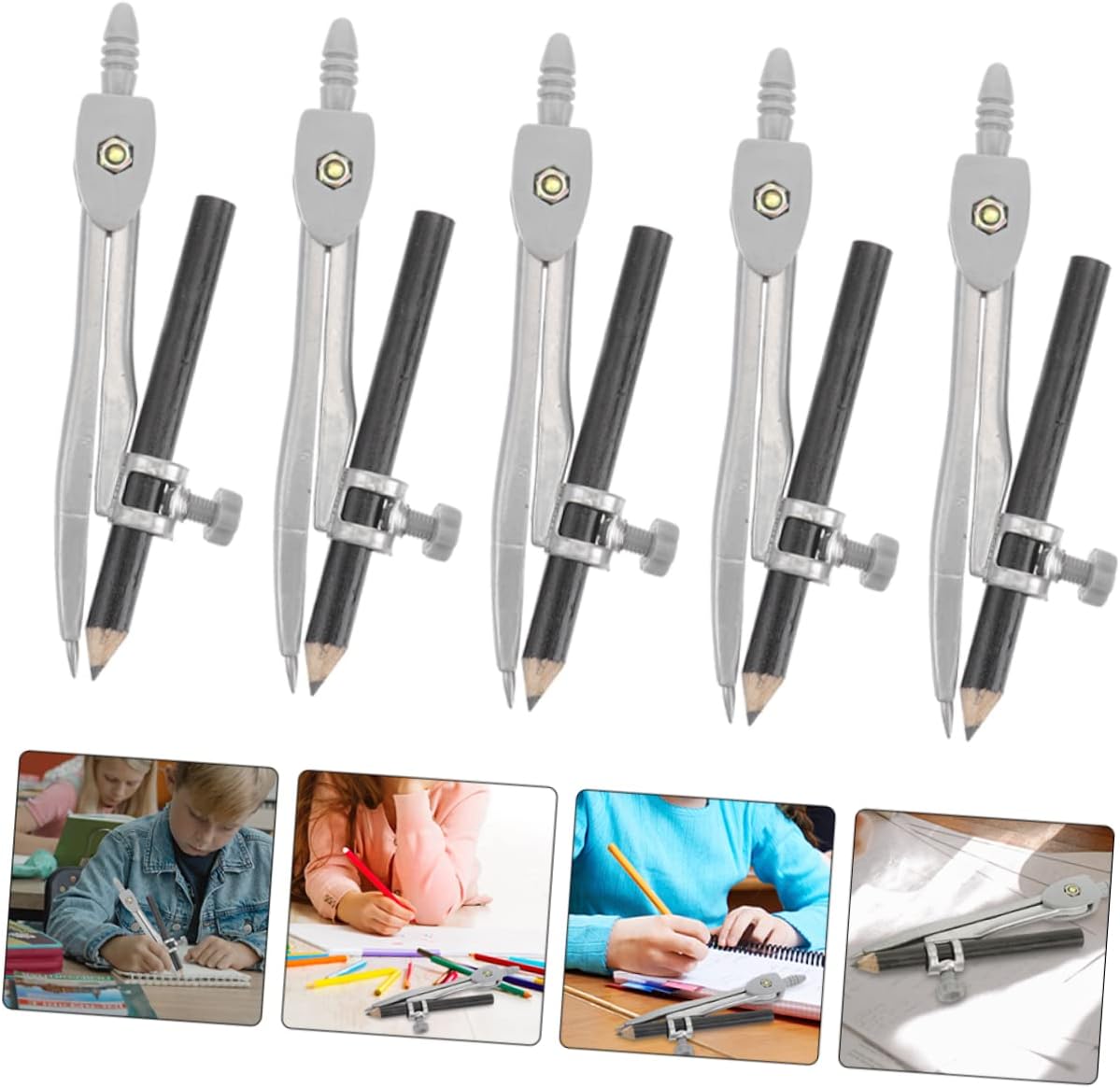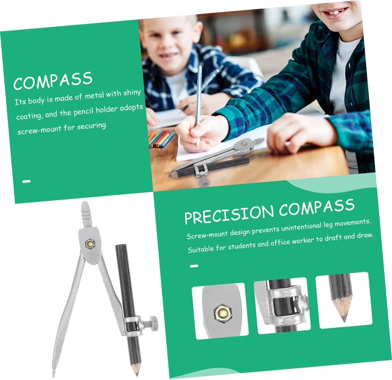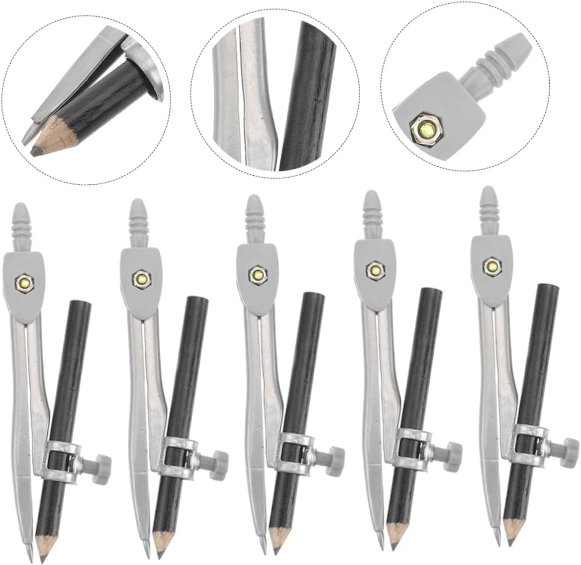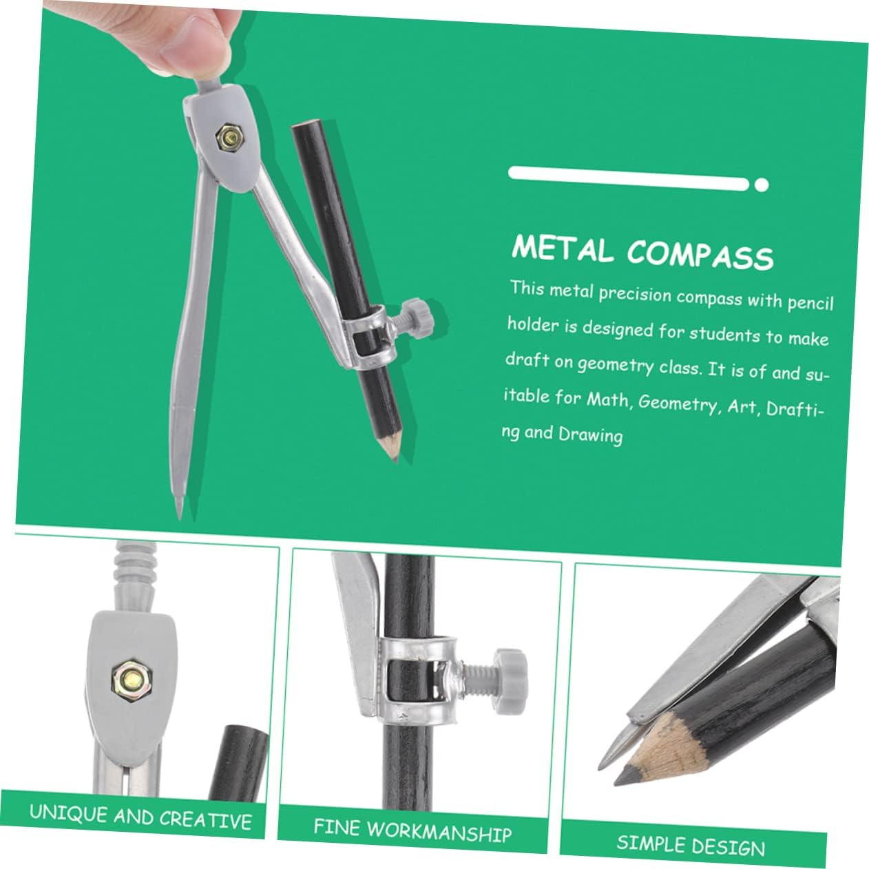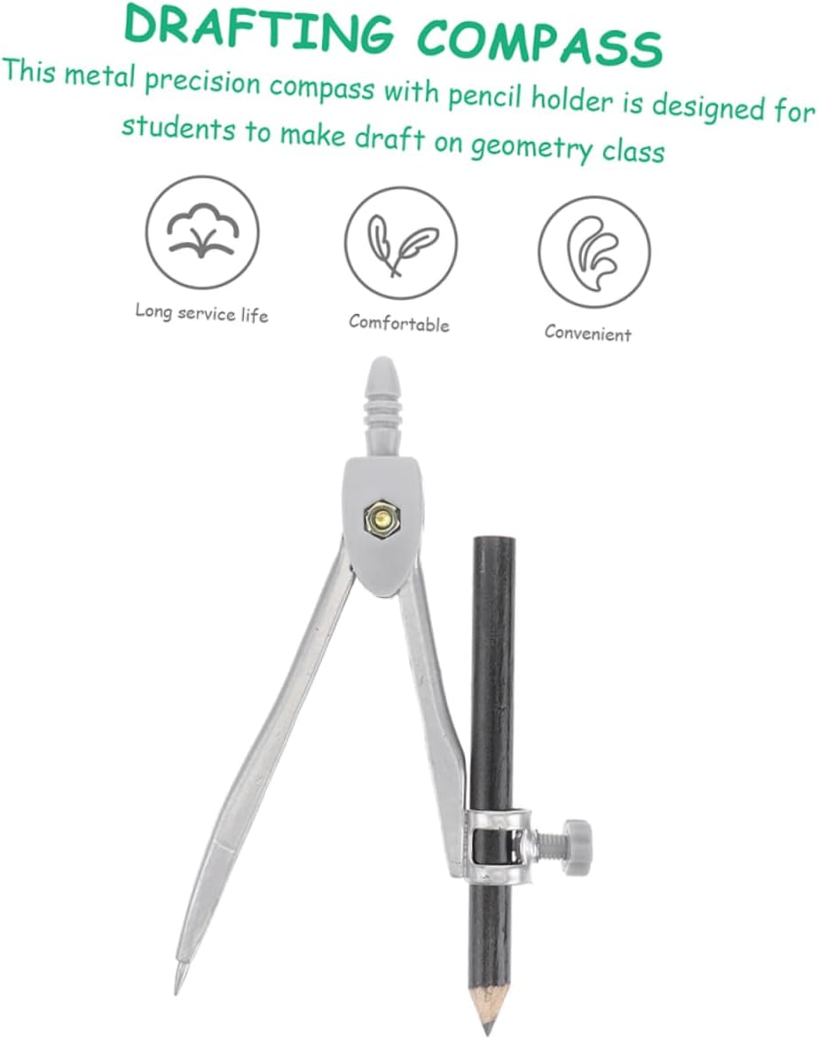 Compasso scolastico: ampiamente utilizzato per matematica, geometria, arte, design, disegno, disegno e altri campi, compassi per studenti Compasso per disegnare cerchi - strumenti geometrici, particolarmente adatti per l'uso didattico da parte degli insegnanti, materiali di alta qualità, supporto per un uso prolungato, compasso circolare Bussola portatile: la punta dura della bussola può essere fissata saldamente sulla superficie orizzontale della pelle e del legno per un disegno accurato, strumento per disegnare cerchi Bussola per strumenti da disegno: con il design leggero e compatto, la bussola portatile può essere facile da trasportare e riporre, bussola riutilizzabile Disegno con strumento circolare: le punte dure del compasso possono marcare con precisione il pezzo in lavorazione, adatte per disegnare archi, cerchi, linee di divisione, segmenti di , ecc., strumento per creare cerchi