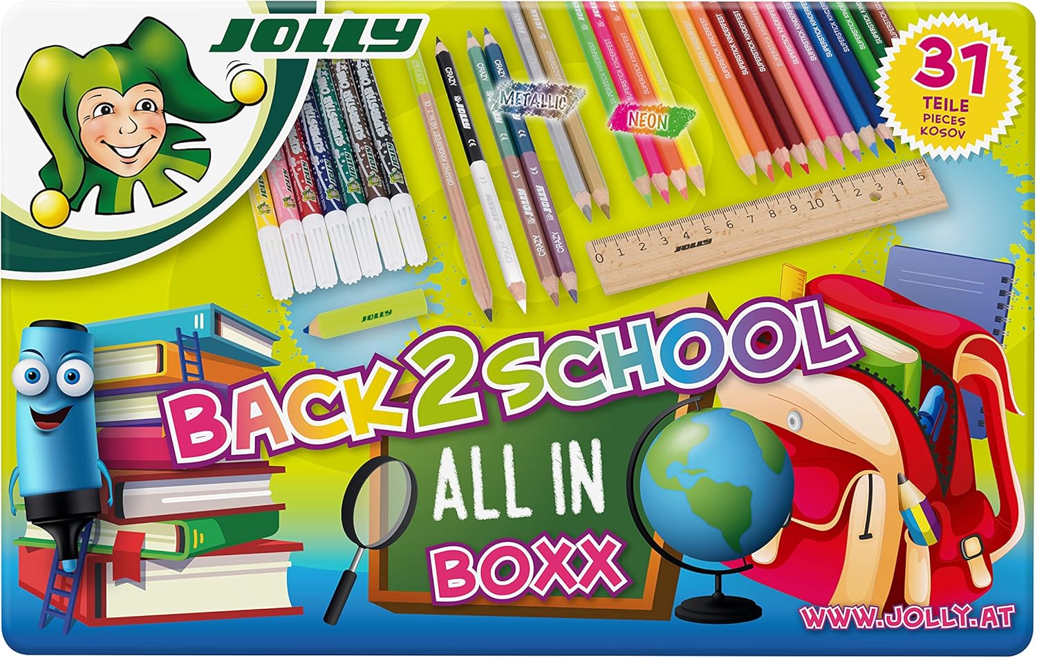 Attrezzature complete: il nostro kit di partenza per la scuola contiene 31 parti di alta qualità, tra cui matite colorate, pennarelli, matite di grafite, righello e gomma, in modo che il bambino sia perfettamente attrezzato per l'inizio della scuola. Scopri la tecnologia JOLLY Kinderfest: le nostre matite colorate nel set di partenza della scuola sono dotate di una tecnologia a prova di rottura appositamente progettata per i bambini. Non importa quanto selvaggia sia l'avventura nel cortile della scuola, le nostre penne rimangono intatte e pronte all'uso. La tecnologia JOLLY Kinderfest offre un piacere di scrittura e pittura senza pensieri che sprigiona tutta la creatività del tuo bambino senza doversi preoccupare di rompere le penne. Produzione in Austria secondo i più elevati standard di qualità: il nostro set di avviamento scolastico viene prodotto esclusivamente in Austria, dove viene prodotto secondo le più severe direttive di qualità. Scatenare la creatività: con una vasta gamma di colori e strumenti di scrittura, il nostro kit di partenza scolastico stimolerà la fantasia e lo sviluppo creativo del tuo bambino, sia in classe che nel tempo libero.