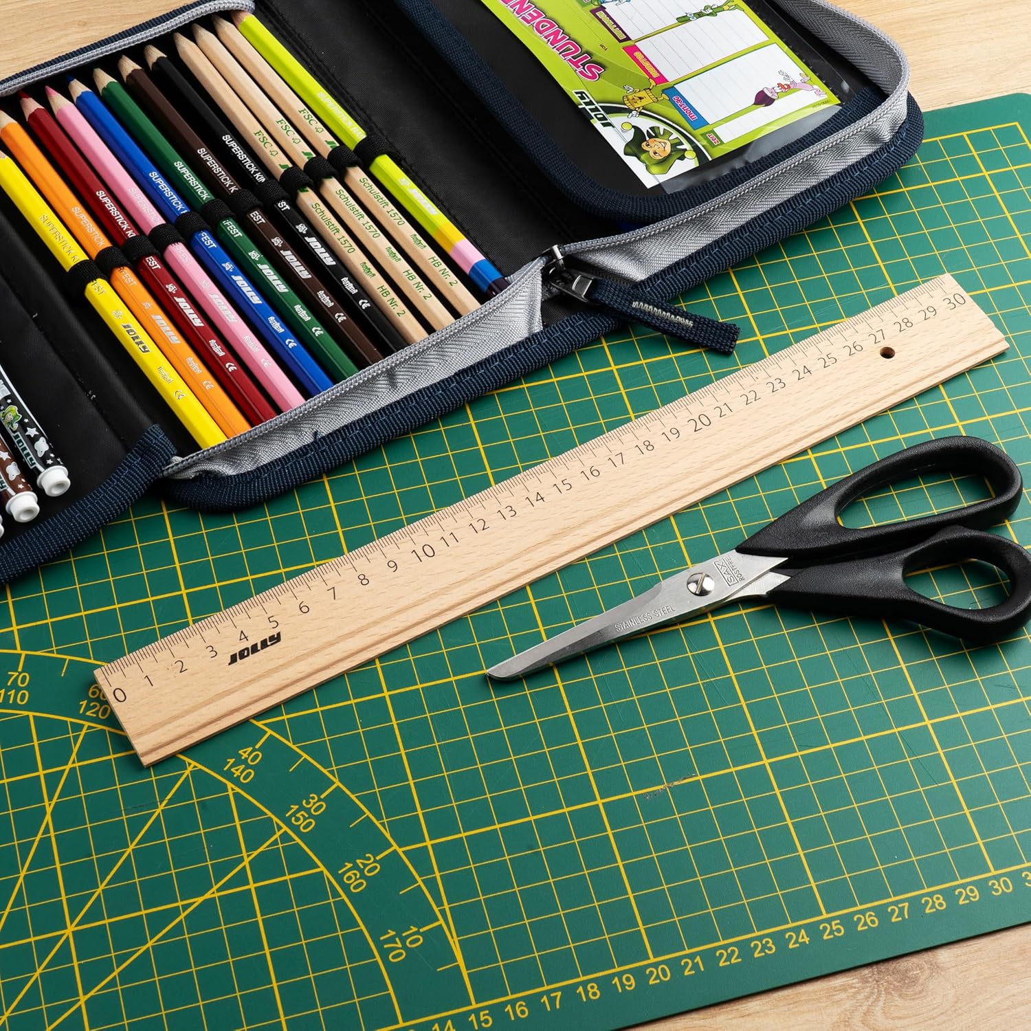 30 cm di lunghezza, molto spazio per misurare, ideale per linee più lunghe, schizzi o attività di geometria nella vita scolastica. Infrangibile e robusto: realizzato in legno robusto, resiste in modo affidabile anche alla vita scolastica turbolenta. Design naturale: classico, semplice e durevole, il righello convince per il suo aspetto naturale e piacevole al tatto. Per applicazioni versatili: perfetto per calcolare, sottolineare, disegnare o misurare in classe o a casa. Compagno affidabile nella vita scolastica: un pratico strumento che non può mancare in nessun astuccio.