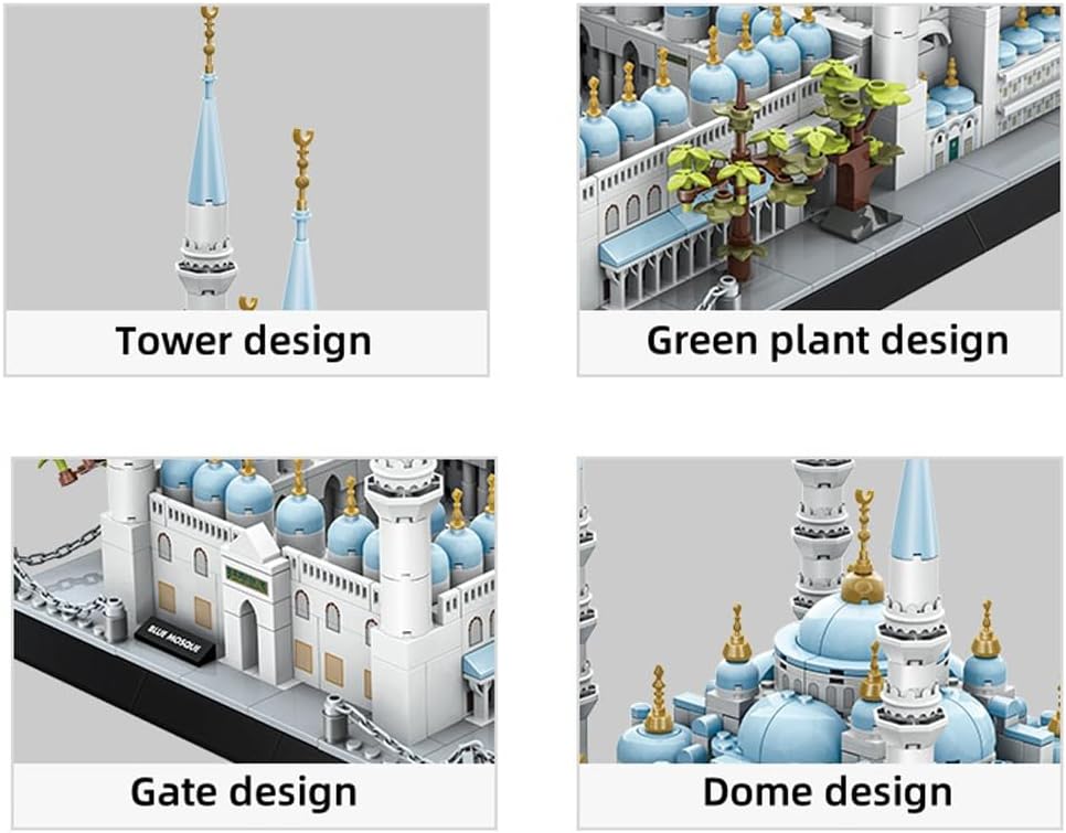 Replica architettonica accurata: ogni angolo del modello, dagli snelli e striati minareti alle scintillanti cupole blu con punte dorate, riflette fedelmente la maestosità della Moschea Blu di Istanbul. Ideale per gli amanti dell'architettura che vogliono vivere da vicino l'originale! Elegante composizione cromatica: la combinazione di bianco, facciate opache, cupole azzurre e accenti metallici dorati crea un equilibrio atmosferico tra semplicità e splendore. Il modello cattura perfettamente l'atmosfera caratteristica, quasi magica, della moschea. Esperienza di costruzione coinvolgente: con 1271 parti e piccoli highlight come piante da giardino, recinzioni a traliccio o decorazioni per finestre, il montaggio diventa un'avventura emozionante. Ogni passo vale la pena, soprattutto quando i dettagli finali trasformano il tutto in un'opera d'arte impressionante! Design stabile e decorativo: la base solida e i minareti multistrato garantiscono una solida stabilità, mentre il design compatto (circa 24,8*36,8*26 cm) lo rende ideale per l'esposizione in soggiorno, ufficio o vetrina. Un vero colpo d'occhio! Collezionabile con valore: non solo un giocattolo, ma un pezzo decorativo senza tempo per gli appassionati di costruzioni e cultura. Il modello è perfetto come regalo per compleanni, vacanze o come regalo personale: sarà apprezzato per gli anni a venire!