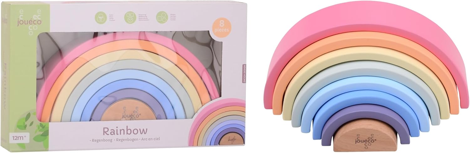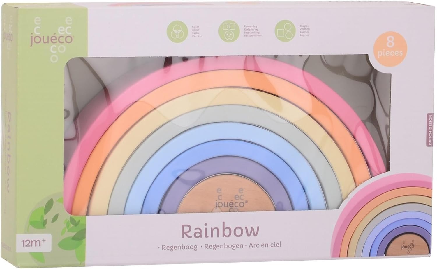 9 pezzi arcobaleno in legno della marca Jouéco. L'arcobaleno è un mix di diverse tonalità pastello.