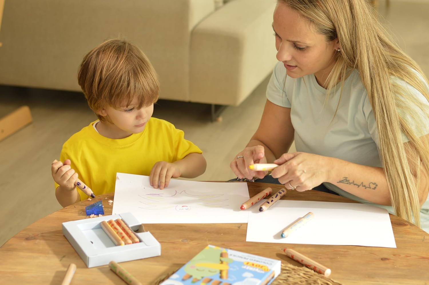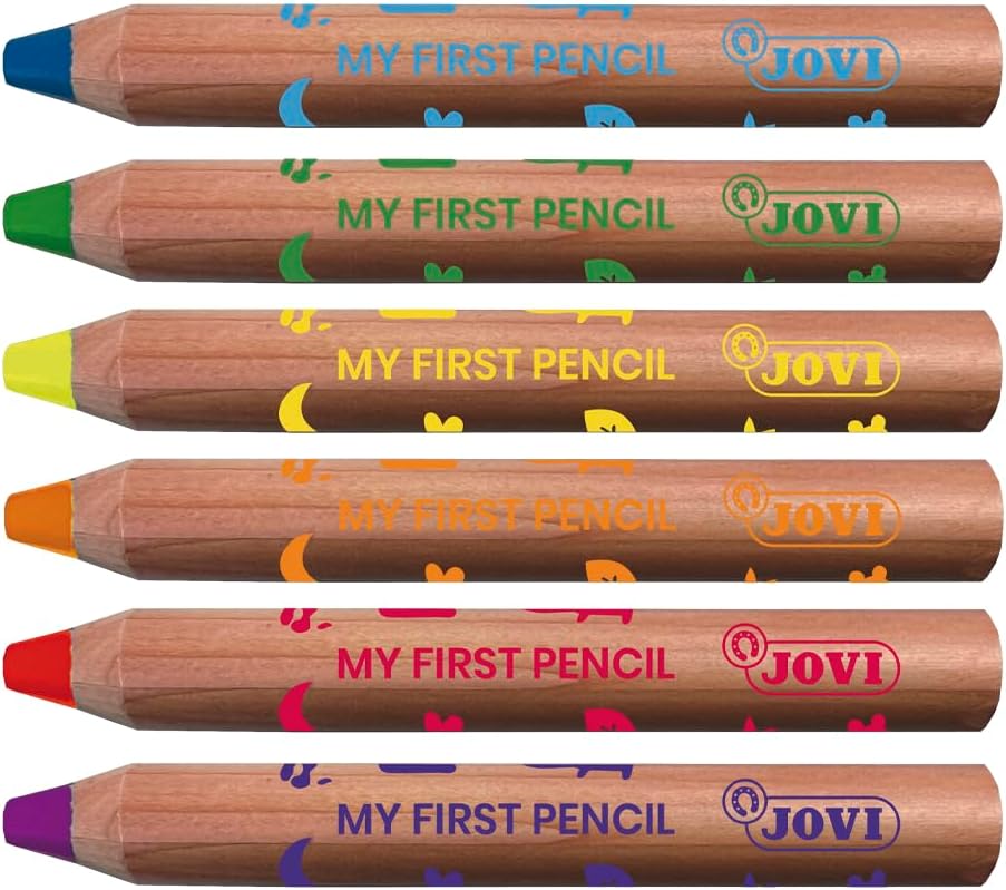Una matita pensata per i bambini più piccoli, non tossica, ideale per la sua versatilità, perché puoi usarlo come una matita colorata, una cera, una matita acquerellabile e su vetro 4 in 1. Lascieranno volare la loro immaginazione dando il posto a dipingere le loro prime opere d'arte! Sappiamo quanto sia importante lo sviluppo della loro creatività, ecco perché il suo design con una mina super morbida e extra large per coprire grandi superfici è pensato per poter dipingere più facilmente, altri include un temperamatite! Queste matite sono ideali per le mani piccole, progettate per facilitare la presa grazie alle loro dimensioni MAXI nelle loro attività. Include 6 colori verde, blu, viola, rosso, arancione e giallo. Non preoccuparti di macchie, matite lavabili dalla pelle e quasi tutti i téjidi. In Jovi sappiamo che l'infanzia è una fase chiave, con la gamma MY FIRST appositamente pensata ai più piccoli li aiutiamo a rafforzare la loro fiducia, incoraggiandoli a divertirsi e godersi il gioco mentre imparano con nuove esperienze nel mondo dell'arte e dell'artigianato. Stimolando così la coordinazione motoria e la psicomotricità fine di mani e dita.