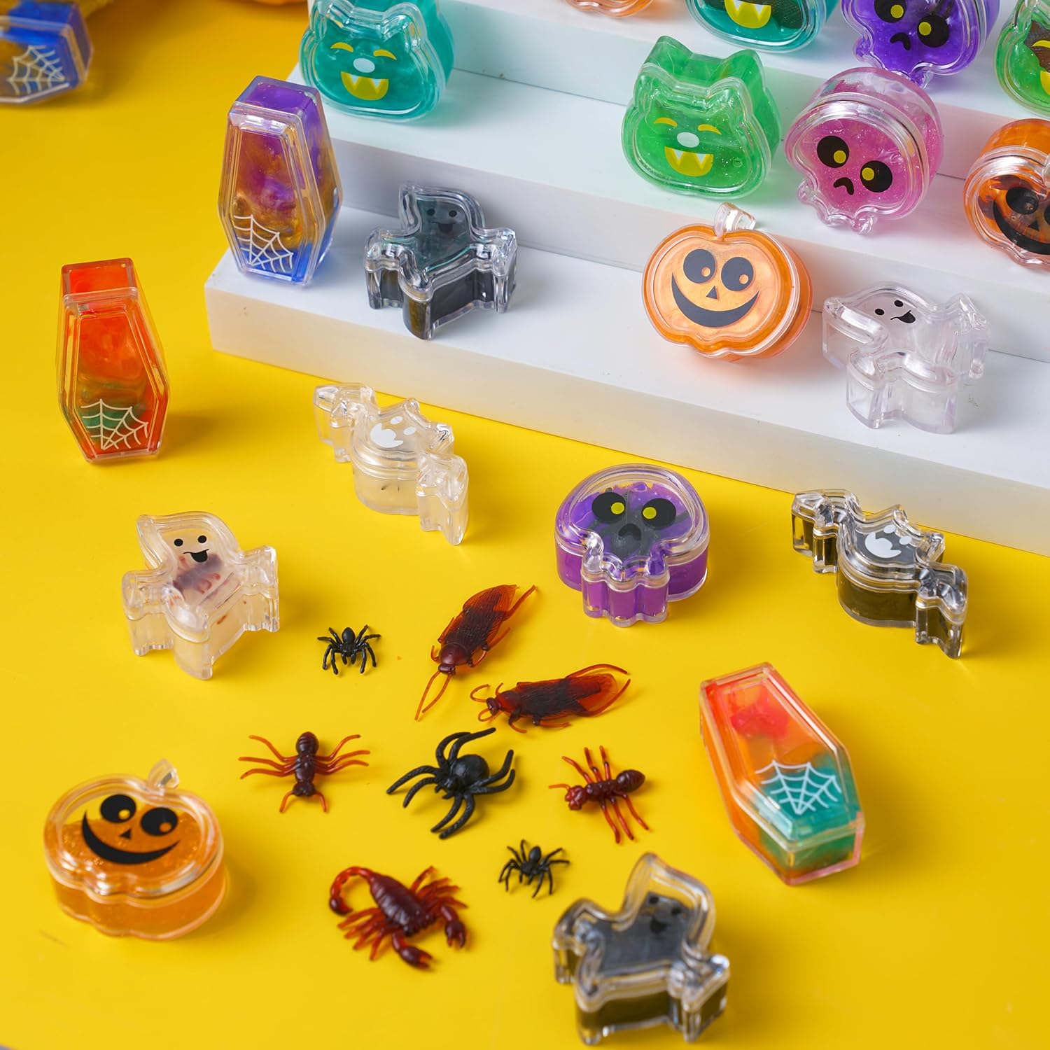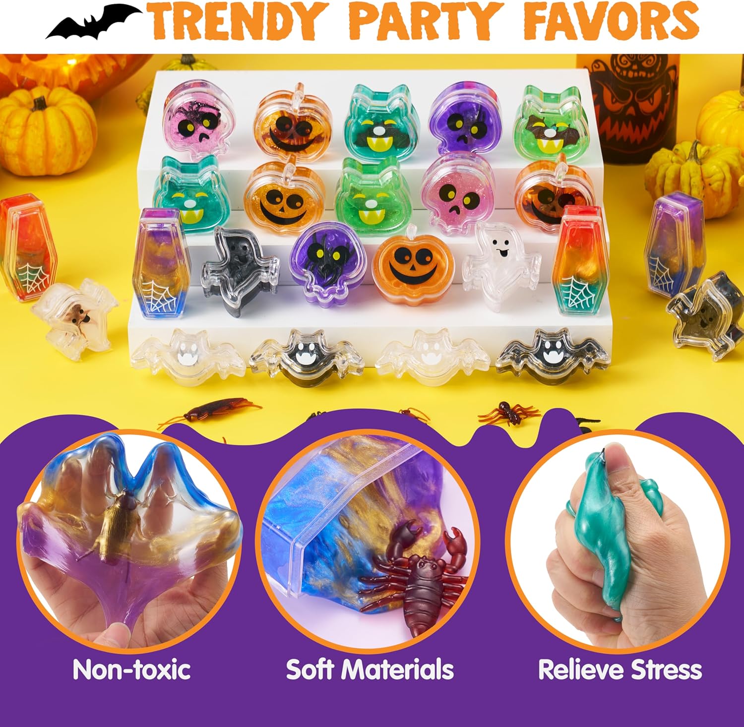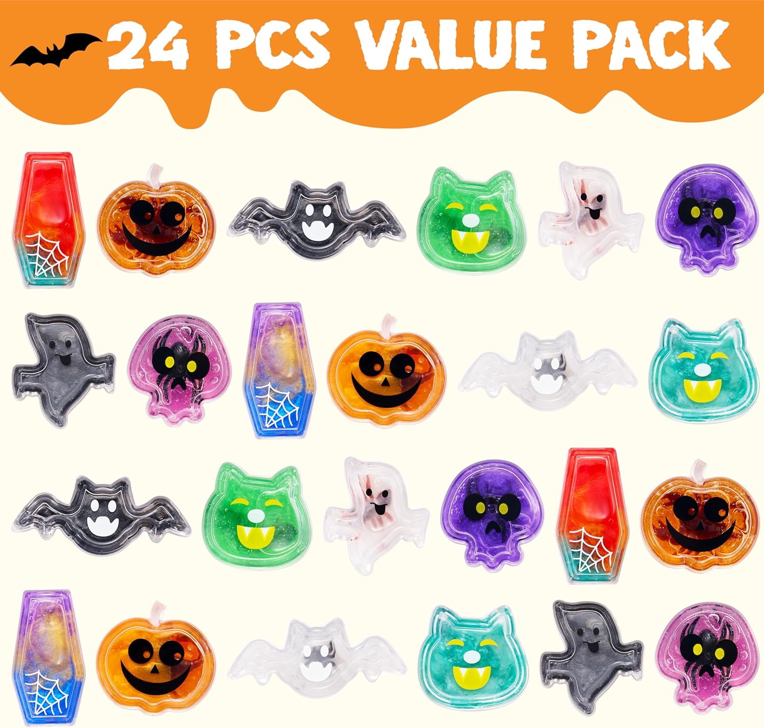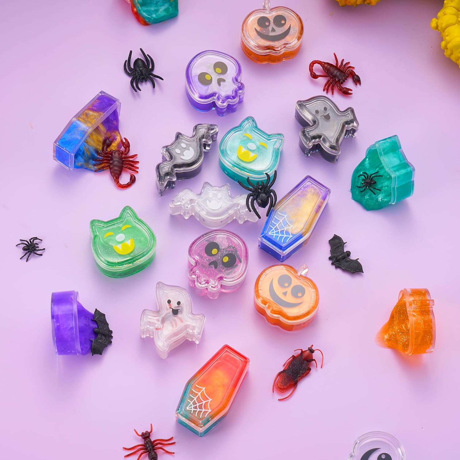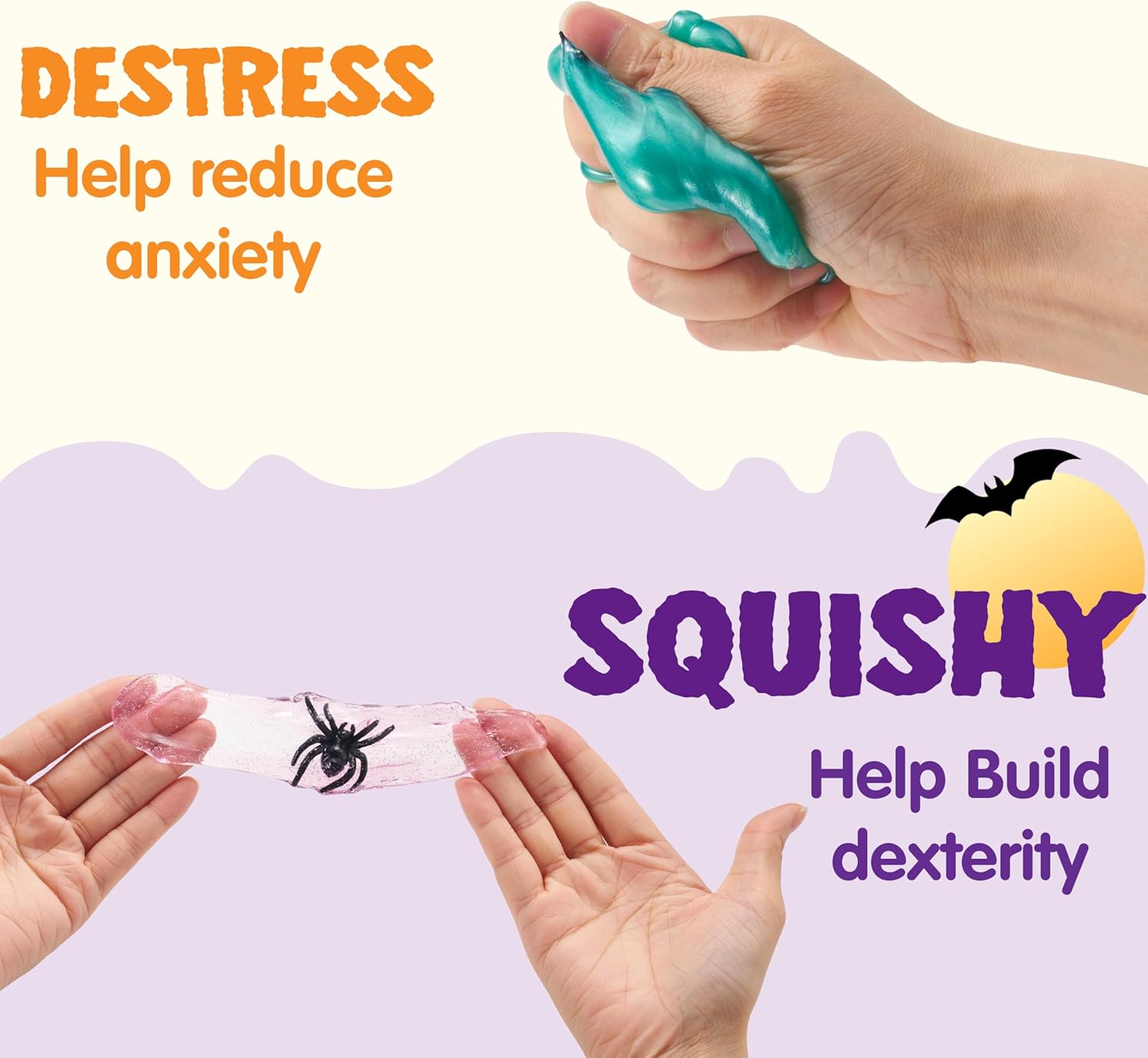 La confezione include: 24 melme con 6 personaggi iconici di Halloween (come fantasmi, zucche, gatti neri e pipistrelli) in 4 colori incantevoli. Ideale come aggiunta di slime di Halloween per feste o regali per feste per bambini. Tema di Halloween: trasforma il tuo evento con questi regali per feste di Halloween! Progettati con lanterne di zucca, fantasmi inquietanti e pipistrelli, sono perfetti come giocattoli di Halloween per "dolcetti o scherzetti", come regalo di Halloween per bambini o per riempire sacchetti di caramelle di Halloween. Sollievo dallo stress: lo stress da schiacciare, allungare e impastare via. Queste melme offrono un'esperienza di gioco sensoriale rilassante, possono essere riposte con i giocattoli di Halloween e fungono da alternativa creativa all'impasto di Halloween. Ottimo regalo: una sorpresa indimenticabile! Riempi i sacchetti regalo di Halloween, sorprendi i bambini durante il gioco "Dolce o scherzetto" o distribuiscili come giocattoli di Halloween durante il gioco "Dolce o scherzetto". Un successo come regalo di Halloween e dolcetti per la scuola! Sicuro e non appiccicoso: questi melma sono realizzati con formule atossiche e facili da pulire e non si attaccano alle mani o alle superfici. Sicuro per i bambini e pulito per i genitori!