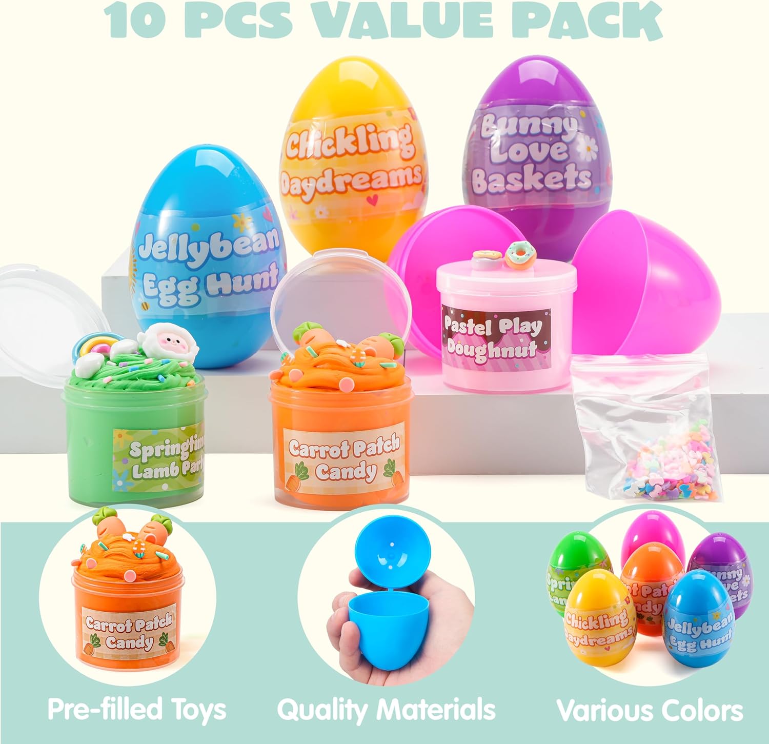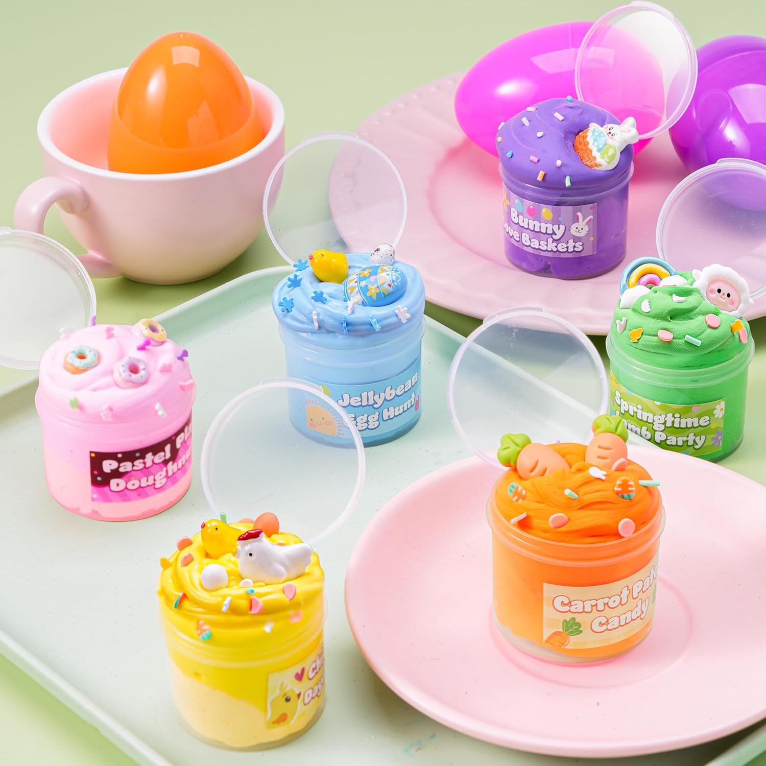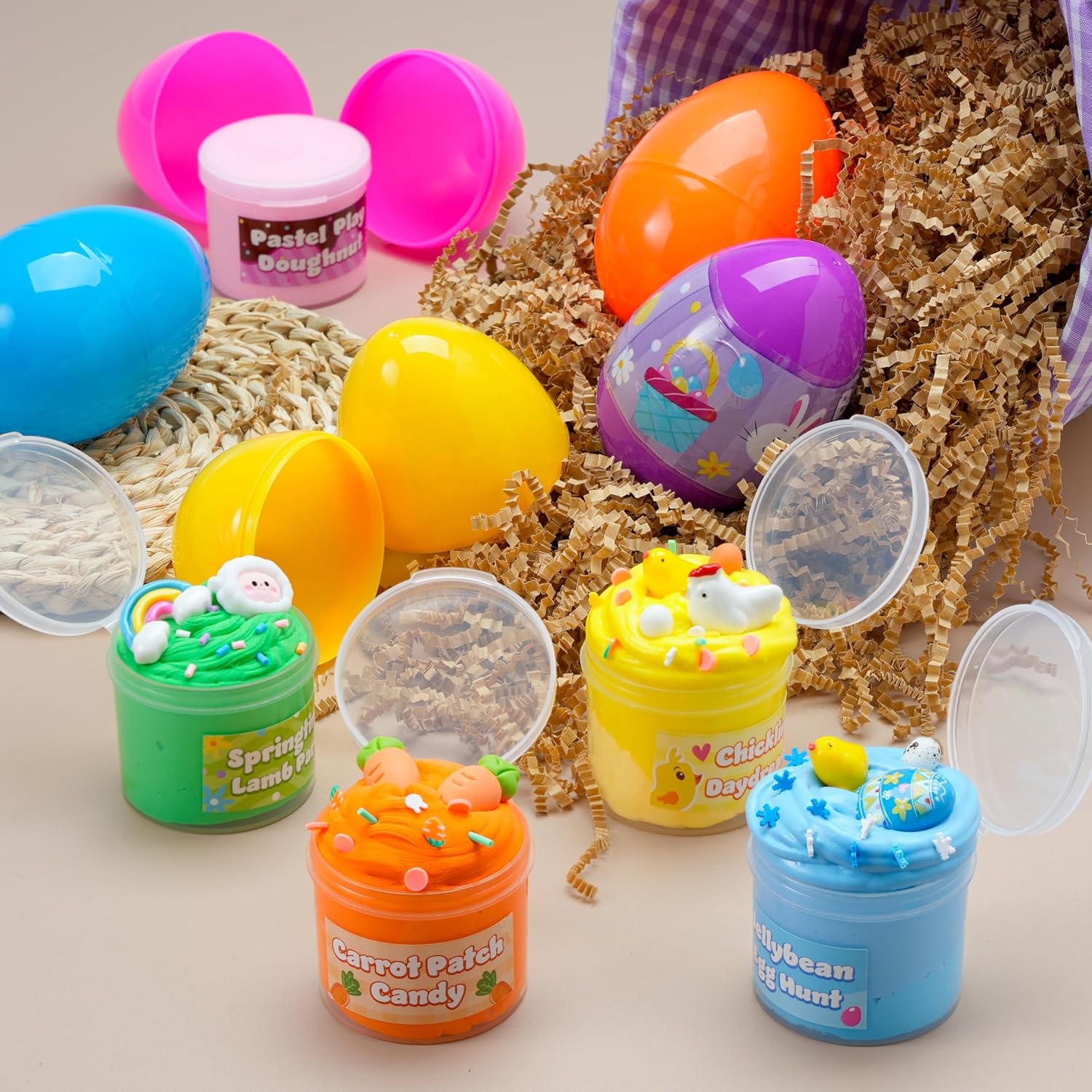 JOYIN 6 uova di Pasqua pre-riempite con giocattoli, uova di Pasqua in plastica con set di slime a tema pasquale, ripieni per cestini pasquali, regali di Pasqua per bambini, regali per feste a tema pasquale, caccia alle uova di Pasqua