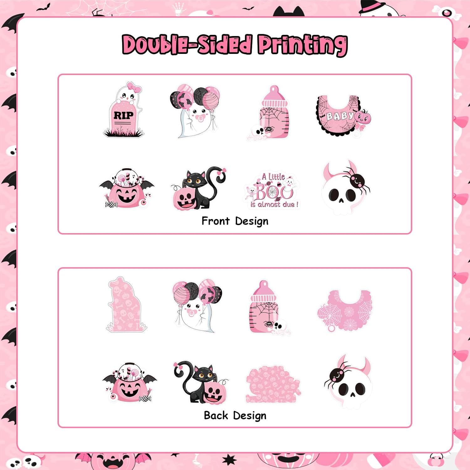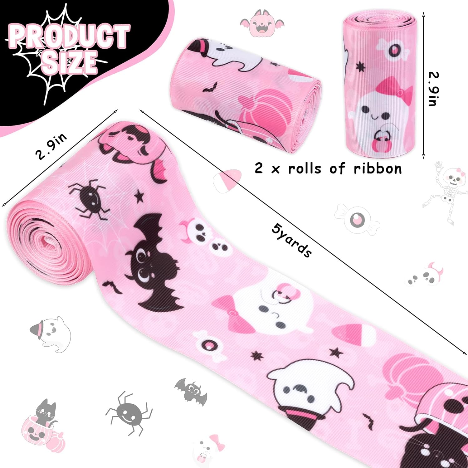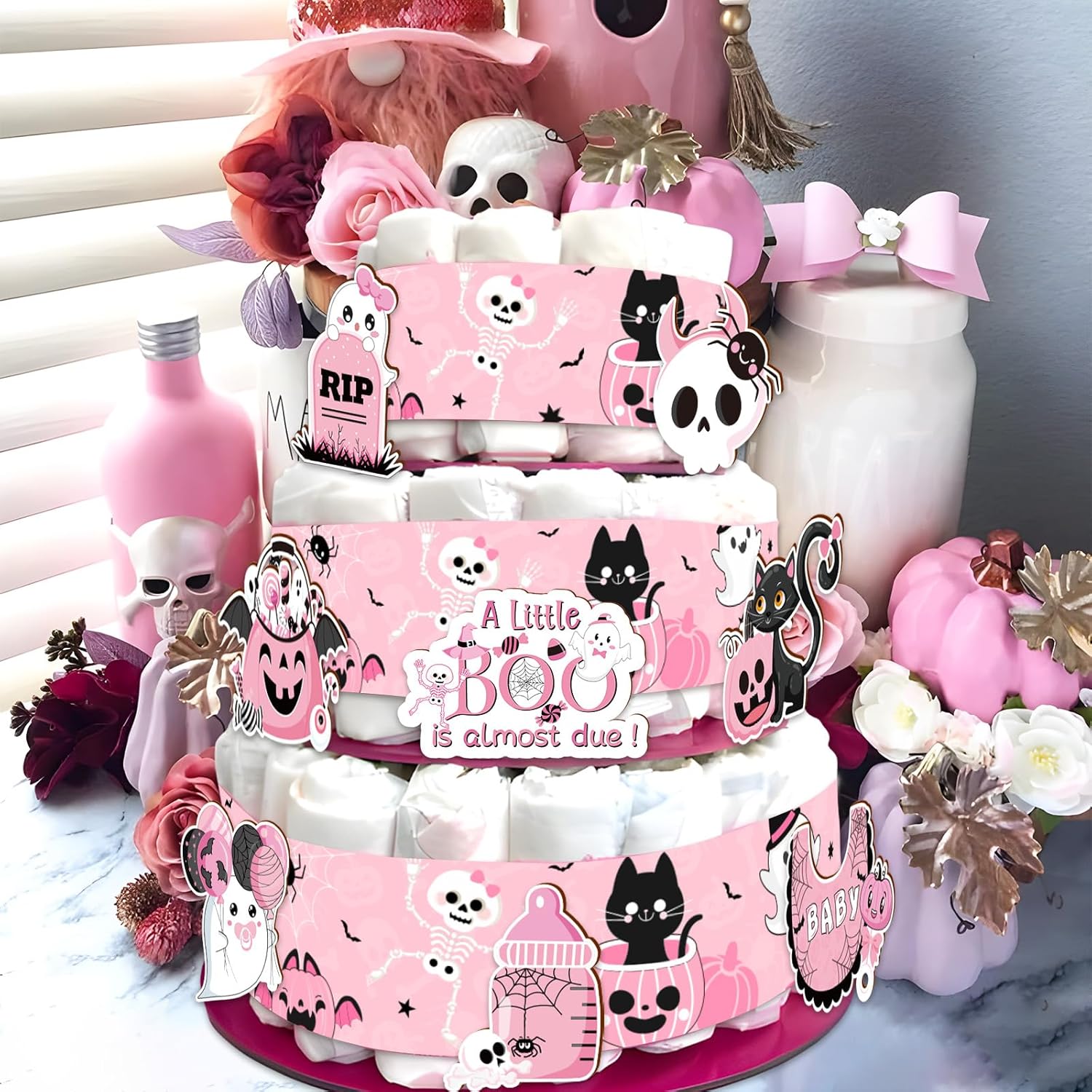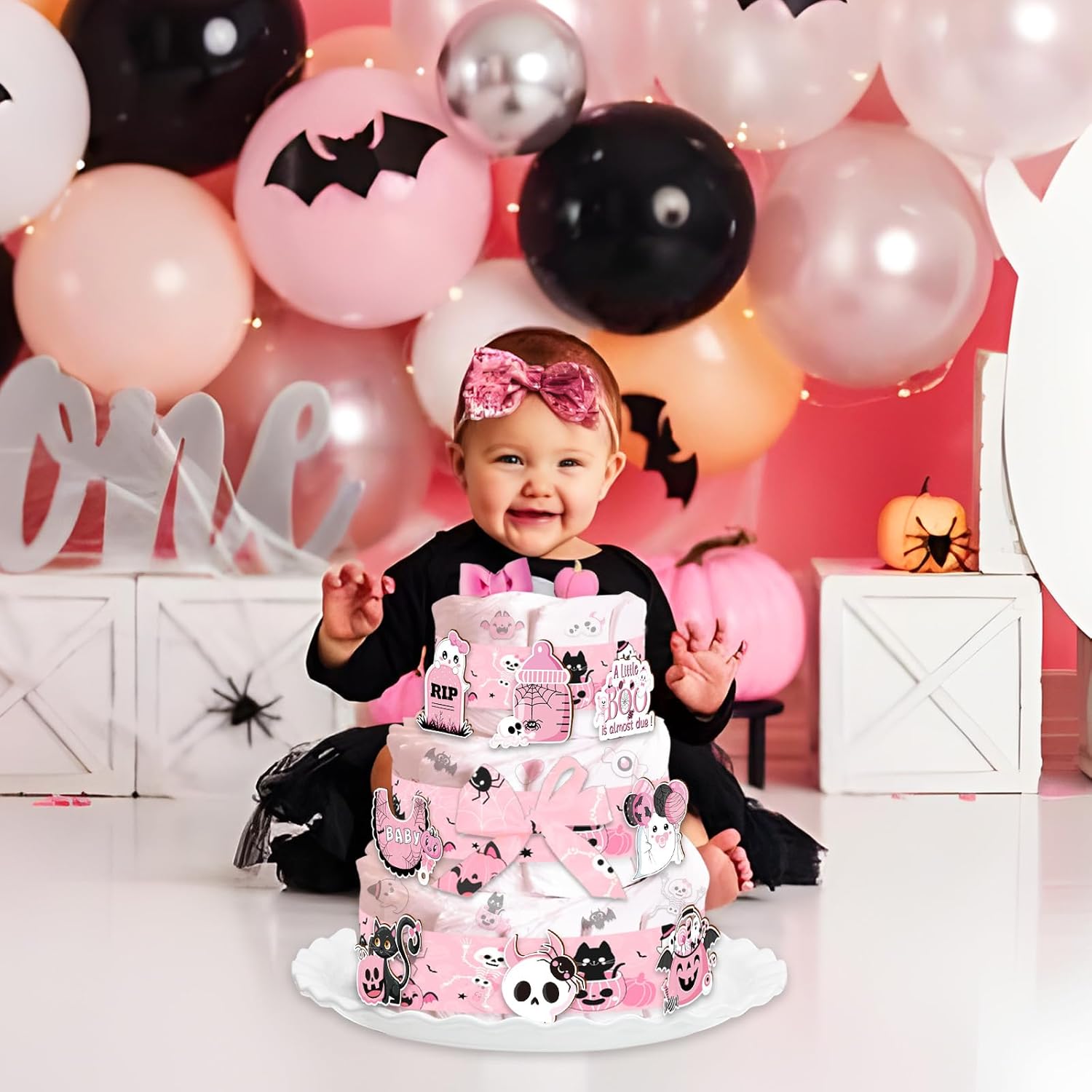 Il pacchetto include: 2 nastri con fantasia fantasma di Halloween da 5 metri, 8 pezzi di carte "un piccolo fischio è quasi dovuto" e 12 punti di colla. Design adorabile: abbiamo progettato i modelli in modo che fossero molto carini e adorabili. Ad esempio, una piccola anima fantasma che tiene in mano un ciuccio e tira un palloncino, una piccola zucca felice e sorridente, un teschio con un fiocco e così via. La tua bambina lo adorerà sicuramente! Materiali di alta qualità: il nastro è realizzato in tessuto satinato, con una superficie morbida e liscia e un colore brillante. I motivi sono tutti stampati con stampa a colori ad alta definizione, con colori brillanti e motivi chiari. La combinazione perfetta di rosa e nero: la combinazione di rosa e nero fa sembrare il prodotto particolarmente carino e di alta qualità, molto adatto per il baby shower per ragazze o per la festa di rivelazione del genere. Modo d'uso: Avvolgere la torta di pannolini con un nastro e poi incollare il cartoncino sul nastro con un punto di colla.