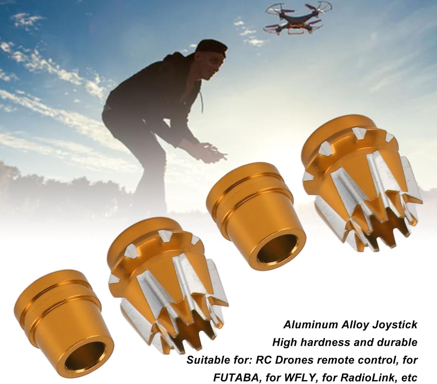 Compatibilità: questi joystick antiscivolo sono versatili e compatibili con un'ampia gamma di modelli di droni. Per FUTABA, per WFLY, per RadioLink, ecc. Lega di alluminio: materiale in lega di alluminio, elevata durezza e durevole, tecnologia di lavorazione fine CNC, operazione di anodizzazione ed eccellente sensazione al tatto. Design ergonomico: il design ergonomico antiscivolo offre una presa eccellente, che aiuta a ridurre l'affaticamento del pollice, offrendo maggiore precisione e sensibilità. Leggero: gli stick del telecomando sono leggeri. È comodo utilizzare il telecomando e non ti grava alcun peso. Proprio come il telecomando originale. Facile da installare: questi joystick sono progettati per essere facilmente installati sul telecomando del tuo drone. Rimuovi semplicemente i vecchi joystick e sostituiscili con questi in lega di alluminio e sei pronto per portare la tua esperienza di volo con droni a nuovi livelli.
