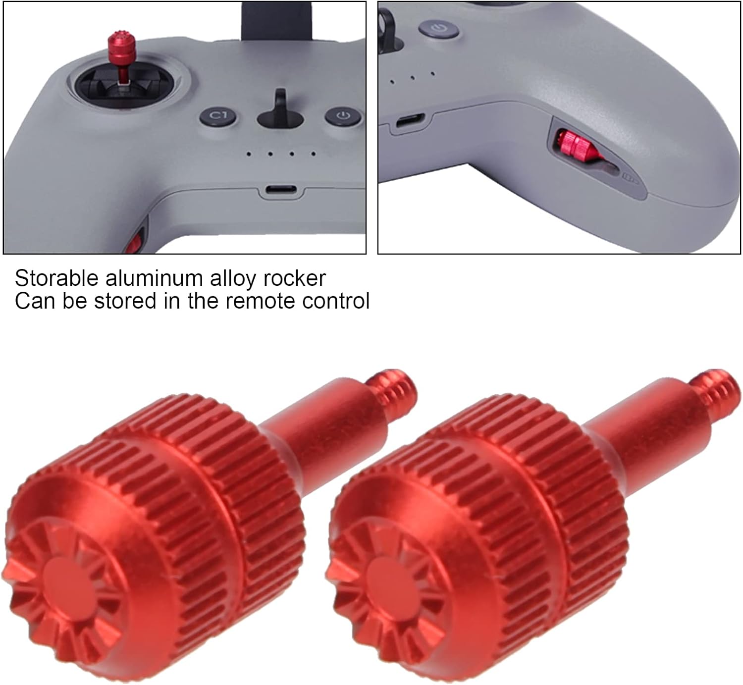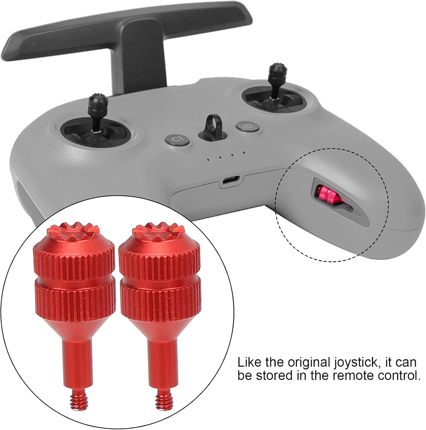 [Vestibilità perfetta e design riponibile] Questi joystick in lega di alluminio sono appositamente progettati per il telecomando D-JI-FPV V2 per garantire un abbinamento perfetto con i joystick originali. Grazie al loro design compatto e facile da riporre, possono essere comodamente riposti all'interno del telecomando, rendendoli ideali per un utilizzo unico. [Lega di alluminio di alta qualità] Questi joystick in lega di alluminio di alta qualità sono leggeri ma resistenti per garantire che non aggiungano peso inutile al telecomando. Il materiale di alta qualità garantisce prestazioni e affidabilità di lunga durata anche con un uso frequente. [Elaborazione CNC di precisione] Ogni joystick è sottoposto a un'elaborazione di precisione CNC per garantire una finitura impeccabile e un adattamento preciso. Il processo di colorazione anodizzata non solo migliora l'aspetto dei joystick, ma fornisce anche una superficie liscia e bella che resiste all'usura. [Design ergonomico e antiscivolo] Tenendo presente l'ergonomia, questi joystick offrono una presa comoda e un controllo senza sforzo. Il design zigrinato offre un ottimo effetto antiscivolo e garantisce una presa sicura anche durante intense sessioni di volo. [Leggero e resistente] Questi joystick in lega di alluminio pesano solo 6 g per joystick, riducendo il carico sul telecomando. Nonostante il loro peso leggero, sono costruiti per resistere all'abuso della frequenza, rendendoli durevoli e adatti agli appassionati di droni.