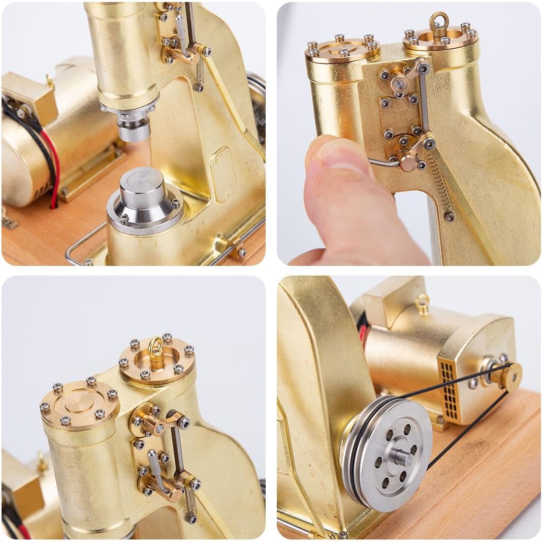 Struttura funzionale in ottone: realizzato in ottone di alta qualità con autentico design industriale, questo modello di martello elettrico presenta un funzionamento realistico attraverso meccanismi motorizzati. Non solo un pezzo da esposizione, funziona in realtà con movimenti di martellamento fluidi e ritmici Funzionamento a motore: alimentato da 8 batterie AA (non incluse), il martello si attiva tramite pedali superiori e inferiori. Guarda come il sistema di pulegge a cinghia si collega ad alberi motore e pistoni, creando autentiche azioni di forgiatura che ricordano i macchinari Industrial Revolution Movimento meccanico di precisione: presenta ingranaggi di riduzione interni, albero motore e sistemi di collegamento che dimostrano la vera meccanica del martello. La testa del martello si alza e cade con una precisione soddisfacente, mostrando movimenti realistici di sollevamento, battimento e minimo Educativo e divertente: perfetto per dimostrare principi meccanici e storia industriale. Uno strumento coinvolgente per aule, laboratori o collezioni personali che dà vita alla tecnologia industriale precoce Regalo da collezione di alta qualità: con la sua straordinaria lavorazione in ottone e le sue caratteristiche operative, questo è un regalo eccezionale per ingegneri, appassionati di storia, collezionisti di modelli e chiunque sia affascinato dall'artigianato meccanico