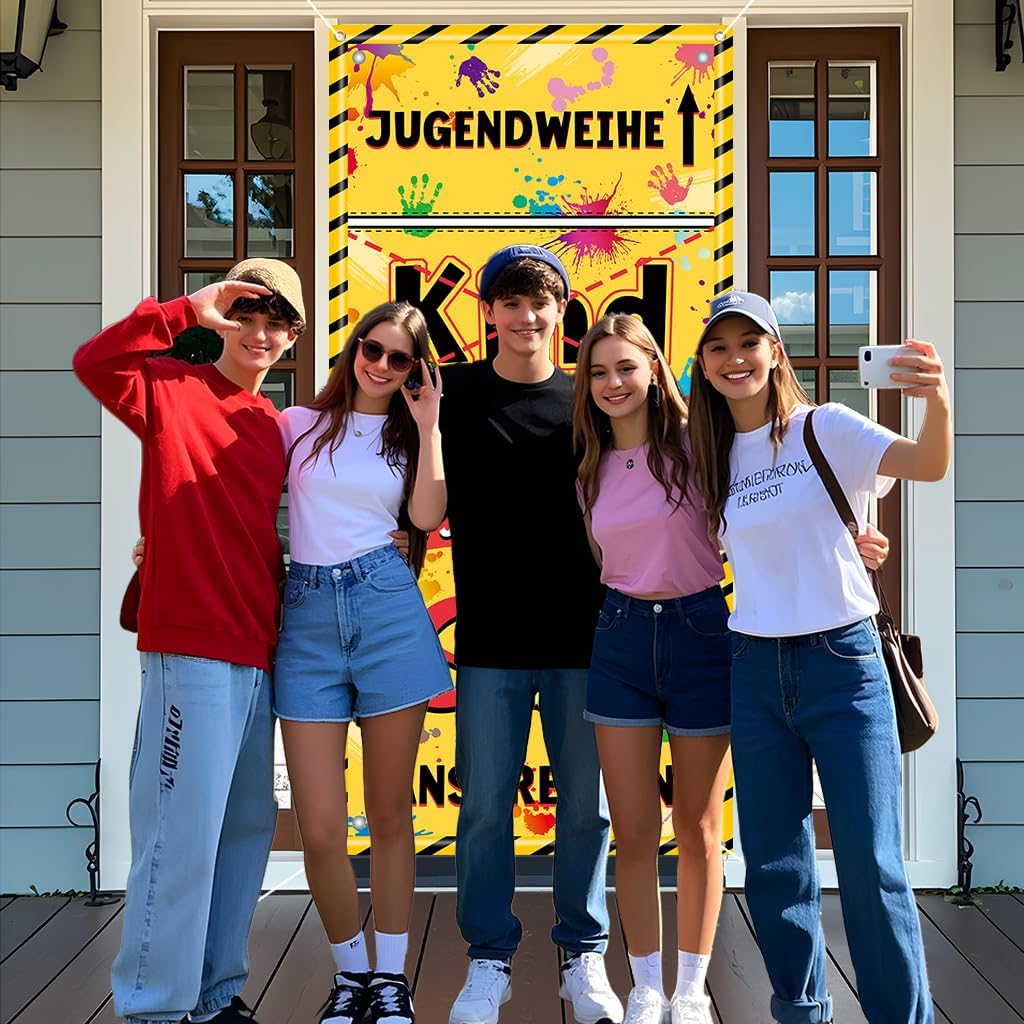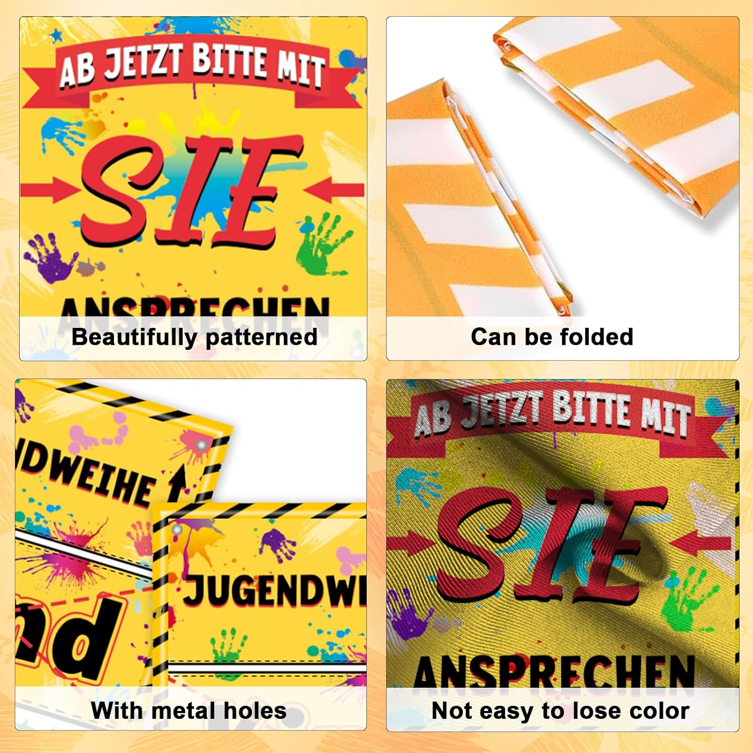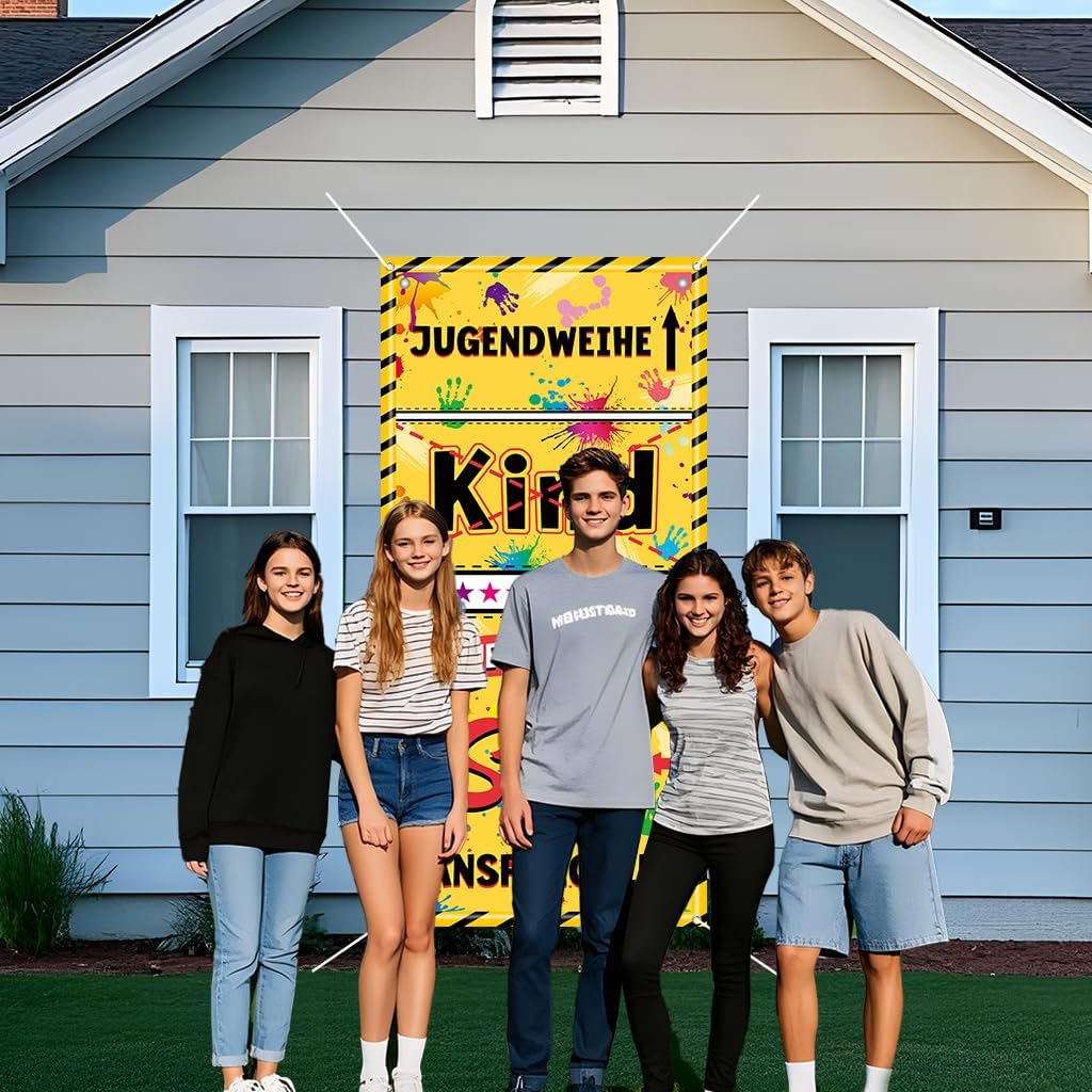 【Banner Jugendweihe】Riceverai uno striscione decorativo con dedica giovanile, 185 x 90 cm, abbastanza grande da essere utilizzato come decorazione finale o sfondo fotografico alla festa, aggiungi più colori alla festa! 【Materiale di alta qualità】 Il banner è realizzato in tessuto di poliestere resistente, morbido, leggero e resistente, stampato digitalmente con colori vivaci e elevata solidità del colore! Lo sfondo della festa è lavabile e riutilizzabile. 【Facile da usare】 Basta infilare lo striscione con la dedica dei giovani attraverso gli occhielli in ottone. Facile da appendere, può essere appeso ovunque nella stanza, parete, porta, tavolo, finestra, recinzione del giardino, ecc. Può essere utilizzato per decorare una stanza, come sfondo per le foto di laurea o come momento clou di una festa per catturare lo spirito devoto della giovinezza. 【Design unico】 Tipo-->Jugendweihe Deko, questo striscione finalmente per adulti può essere utilizzato come decorazione Jugendweihe per interni ed esterni, ideale per Jugendweihe o decorazione murale. Può essere utilizzato per decorare una stanza, come sfondo per le foto di laurea o come momento clou di una festa per catturare lo spirito devoto della giovinezza.