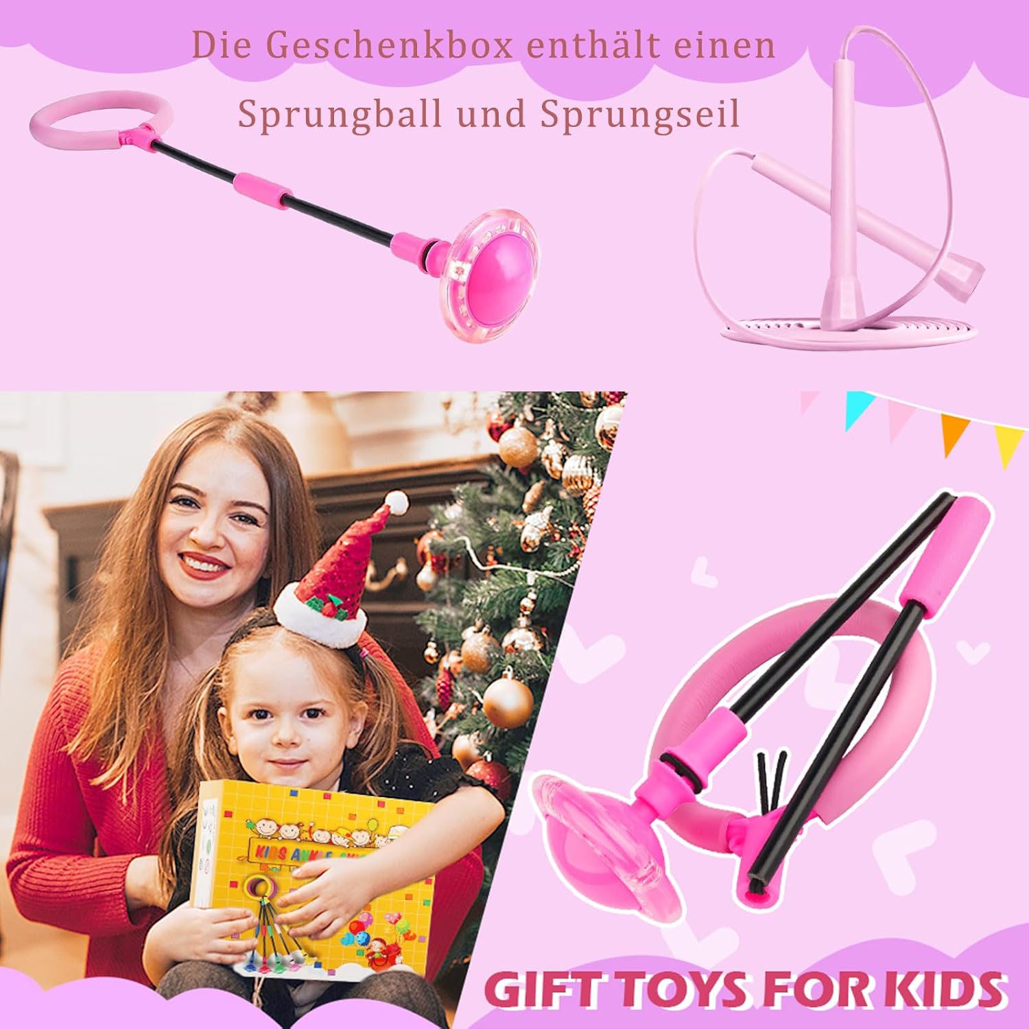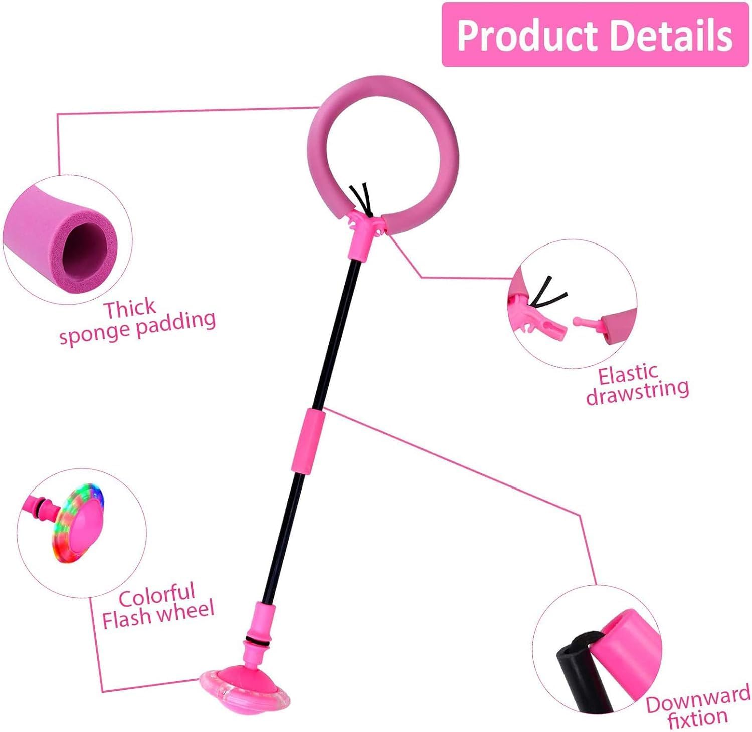 Palla per saltare luminosa: la confezione include una palla per saltare e una corda per saltare. Lascia che i tuoi bambini sperimentino 2 tipi di divertimento rimbalzante. Quando la palla che salta attorno alla caviglia, l'induzione elettromagnetica riproduce automaticamente uno spettacolo di luci colorate che rende il gioco notturno all'aperto più fresco e interessante per i bambini. Materiale di sicurezza: la qualità del prodotto continua a migliorare. La palla per saltare è realizzata in PVC e PP di alta qualità ed è dotata di una custodia protettiva interna a forma di cintura, ispessita, lunga e mobile, per proteggere efficacemente le caviglie dei bambini. Le morbide ruote in poliuretano Q-Elastic scivolano delicatamente senza graffiare il pavimento. Divertimento completo: il rivestimento in spugna ispessita può proteggere meglio le caviglie del bambino. Ci sono molti modi per giocare, facile e divertente. Gli adulti possono saltare anelli o corde con i loro figli per migliorare il rapporto tra genitori e figli, suscitare il loro interesse per lo sport e promuovere meglio la coordinazione degli arti. Regalo ideale: la palla per saltare e la corda per saltare vengono consegnate in una squisita confezione, regalo ideale per i bambini, sia per il compleanno che per le vacanze, regalo per bambine di 5, 6, 7, 8, 10, 11, 12 anni. I bambini lo adoreranno. Portatile: gli anelli per saltare e le corde per saltare sono relativamente leggeri e piccoli, facili da trasportare e pratici per i bambini per allenarsi in qualsiasi momento e ovunque. Se avete domande sugli anelli di salto per bambini, vi preghiamo di contattarci in tempo e vi forniremo un servizio di alta qualità in modo tempestivo.