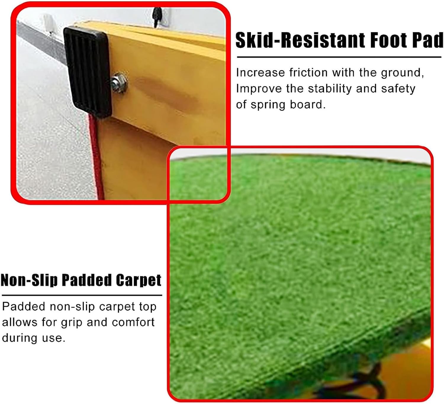 Per i giovani ginnasti, questo trampolino di dimensioni junior è una scelta versatile per l'allenamento a casa. Ha una capacità di carico affidabile di 65 kg/140 libbre. Progettato per le gare di volteggio e per migliorare le abilità, questo trampolino presenta una robusta struttura in legno con feltro antiscivolo, molle in acciaio al manganese e una piastra in acciaio resistente alle intemperie. Progettato con molle ad alta elasticità per un supporto ottimale durante le routine di ginnastica, o 【Trampolino da ginnastica】Il trampolino da ginnastica è un ausilio per il salto negli eventi di volteggio, utilizzato per migliorare le abilità di salto, esercitarsi nello sbarco e nell'atterraggio, nell'arte sportiva e nello stretching. Il trampolino aiuta gli atleti ad aumentare l'altezza del salto e supporta i movimenti tecnici complessi negli sport aerei. 【Attrezzatura da ginnastica robusta e durevole】I nostri trampolini sono realizzati con assi di legno duro, feltro antiscivolo sulla superficie, molla in acciaio al manganese ispessita all'interno, forte capacità portante, nessuna deformazione, nessuna piastra in acciaio antiruggine fissata. In qualsiasi condizione atmosferica, adatti per interni ed esterni. 【Quattro molle ad alta elasticità】: Progettato con quattro robuste molle caratterizzate da eccezionale elasticità e resilienza, questo trampolino offre un'esperienza sicura e duratura. Queste molle ad alta resistenza offrono un supporto superiore, consentendo un utilizzo ottimale per varie routine di ginnastica. 【Feltro antiscivolo】La superficie del trampolino è rivestita in feltro antiscivolo e resistente all'usura, che consente ai piedi di mantenere una buona presa durante il salto, ed è sicuro e anticaduta, proteggendoci il più possibile dagli infortuni. Non pungerà i piedi anche se sei a piedi nudi.