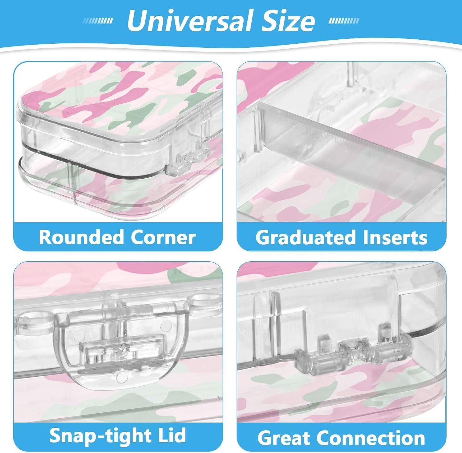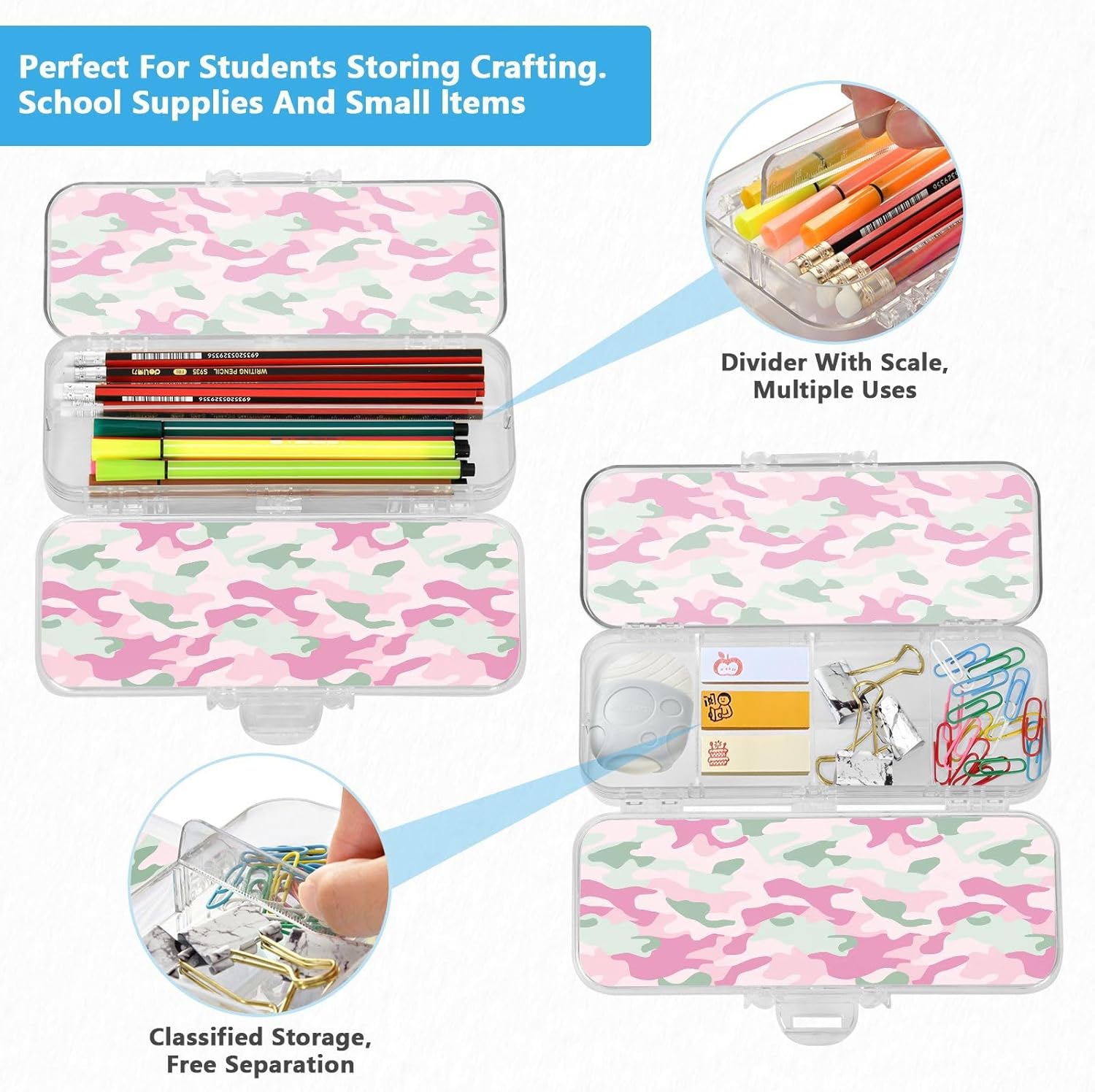 Plastica PET. Resistenza: presenta una struttura robusta e trasparente in PET. Facile da pulire; si consiglia il lavaggio a mano (non lavare in lavatrice/candeggina). Mantiene la chiarezza e resiste all'uso quotidiano negli zaini per l'apprendimento, il lavoro o i viaggi. Doppio strato: il design a doppio strato offre una grande capacità. Entrambi gli strati possono contenere matite, pennarelli o piccoli oggetti come gomme, graffette e clip. Consigliato per bambini dai 3 anni in su. Conservazione personalizzabile: la scatola trasparente include 3 divisori corti (6 cm) e 1 lungo (19 cm). Rimuovili facilmente per progettare 6 sezioni, risolvendo la disorganizzazione e mantenendo ogni piccolo oggetto classificato. Portatile e sicuro: custodia compatta per scuola, ufficio, gite o viaggi. La chiusura a scatto mantiene il contenuto al sicuro durante . Trasporta oggetti artistici, articoli di cancelleria o oggetti essenziali da viaggio ordinatamente organizzati Coperchio affidabile: la chiusura a scatto assicura che entrambi gli strati rimangano al sicuro. Il contenuto rimane protetto e perfettamente posizionato.