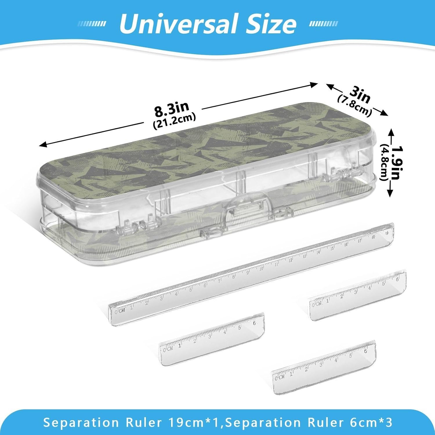 Plastica PET. Resistenza: presenta una struttura robusta e trasparente in PET. Facile da pulire; si consiglia il lavaggio a mano (non lavare in lavatrice/candeggina). Mantiene la chiarezza e resiste all'uso quotidiano negli zaini per l'apprendimento, il lavoro o i viaggi. Design trasparente a doppio strato: massimizza lo spazio di archiviazione nel minimo spazio. Due scomparti in plastica PET trasparente per matite, pennarelli, gomme, clip e altro ancora. Perfetto per mantenere la scuola, l'ufficio o oggetti artigianali visibili e accessibili. Adatto per bambini dai 3 anni in Scomparti personalizzabili: include 3 divisori corti + 1 lungo rimovibile. Crea 6 sezioni o spazi aperti liberamente. I divisori fungono da pratici righelli. Organizza penne, piccoli oggetti in modo sicuro, evitando perdite e disordine senza sforzo. Divisori e righelli di separazione: 3 divisori corti (6 cm) e 1 lungo (19 cm) sono anche righelli funzionali! Adatto per compiti rapidi e soluzioni intelligenti per studenti e artigiani. Coperchio sicuro a scatto: l'affidabile chiusura a scatto mantiene entrambi gli strati saldamente chiusi, garantendo che tutto rimanga perfettamente in posizione durante lo zaino.