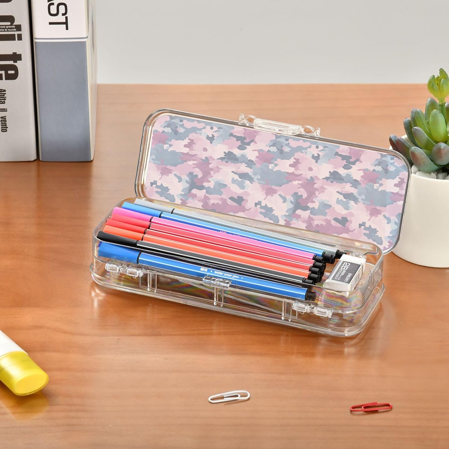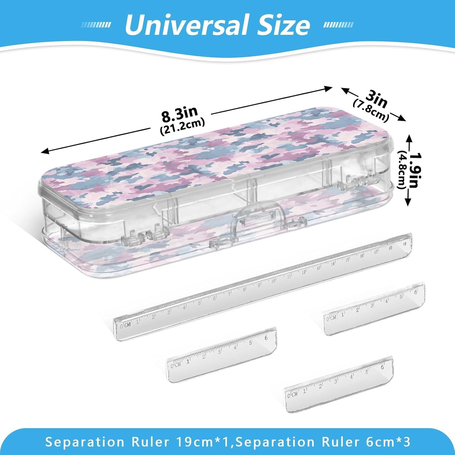 Trasparente e portatile: la scatola di plastica trasparente è realizzata in plastica PET trasparente per una visibilità istantanea del contenuto. Dimensioni compatte (21,1 x 7,6 x 4,8 cm) per scuola, ufficio, viaggi o avventure di schizzi all'aperto. Doppio strato: il design a doppio strato offre una grande capacità. Entrambi gli strati possono contenere matite, pennarelli o piccoli oggetti come gomme, graffette e clip. Consigliato per bambini dai 3 anni in su. Scomparti personalizzabili: include 3 divisori corti + 1 lungo rimovibile. Crea 6 sezioni o spazi aperti liberamente. I divisori fungono da pratici righelli. Organizza penne, piccoli oggetti in modo sicuro, evitando perdite e disordine senza sforzo. Portatile e sicuro: custodia compatta per scuola, ufficio, gite o viaggi. La chiusura a scatto mantiene il contenuto al sicuro durante . Trasporta oggetti artistici, articoli di cancelleria o oggetti essenziali da viaggio ordinatamente organizzati Soluzione versatile per l'organizzazione: design di archiviazione su due lati. Separa facilmente diversi oggetti (matite contro gomme). Aiutare bambini e adulti a mantenere in ordine scrivanie, borse o kit di attività.