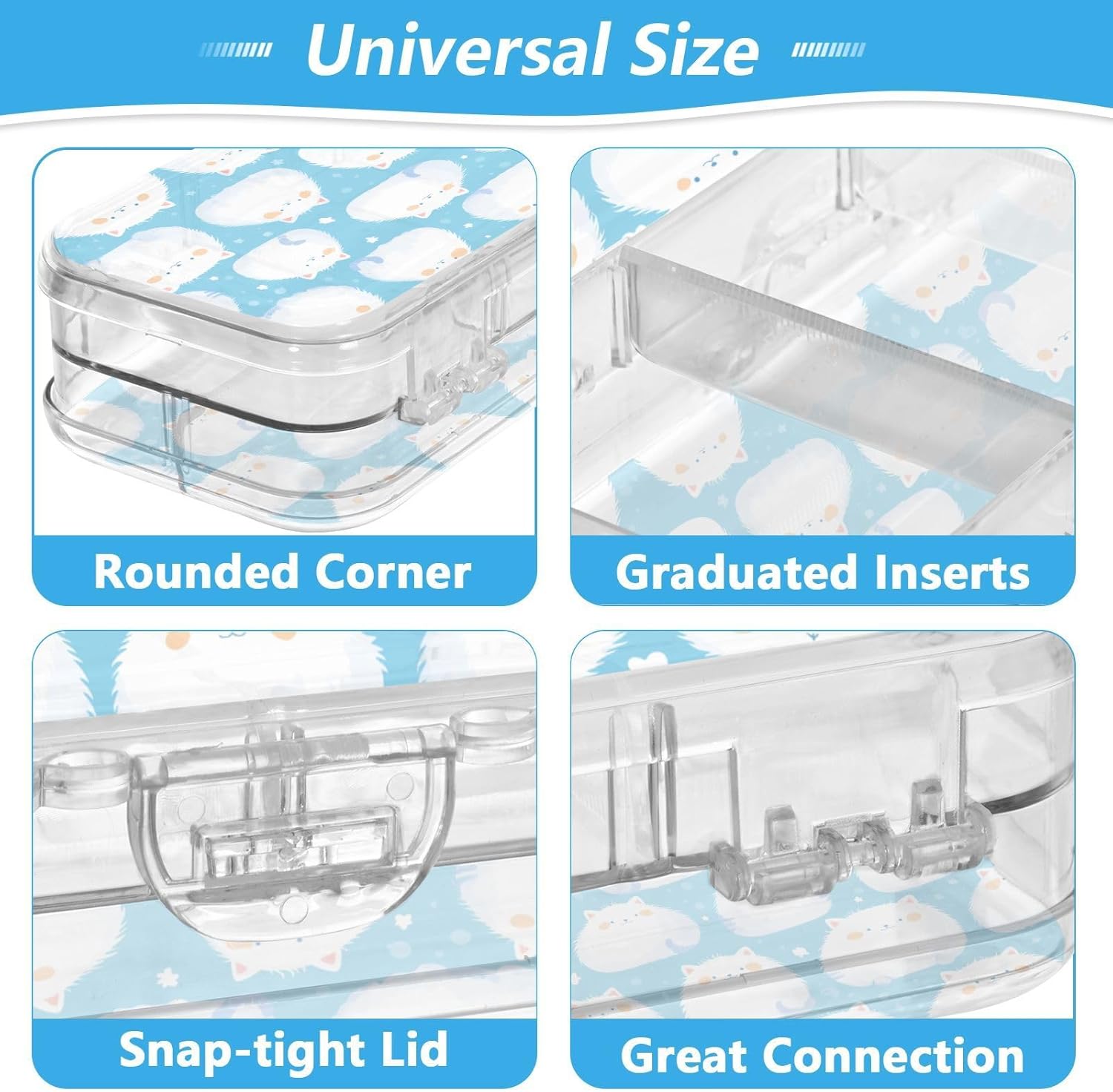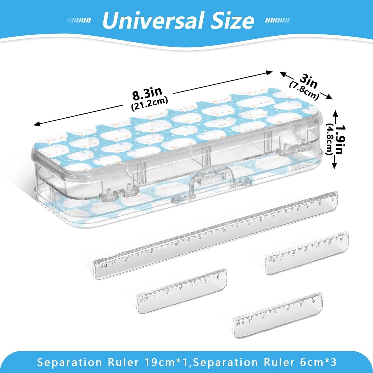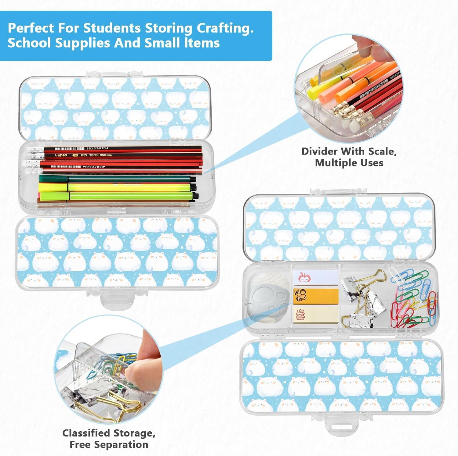 Materiale trasparente: la scatola trasparente misura 21,1 x 7,6 x 4,8 cm, realizzata in PET trasparente resistente ai graffi. Visualizza facilmente i contenuti e prendi ciò di cui hai bisogno per studiare, lavorare o viaggiare. Doppio strato: il design a doppio strato offre una grande capacità. Entrambi gli strati possono contenere matite, pennarelli o piccoli oggetti come gomme, graffette e clip. Consigliato per bambini dai 3 anni in su. Conservazione personalizzabile: la scatola di plastica include 3 divisori corti (6 cm) e 1 lungo (19 cm). Rimuovili facilmente per progettare 6 sezioni, risolvendo la disorganizzazione e mantenendo ogni piccolo oggetto classificato. Righelli di separazione multiuso: ogni divisore rimovibile funge da pratico righello piccolo (6 cm o 19 cm) per misurazioni rapide in classe o in viaggio. Soluzione versatile per l'organizzazione: design di archiviazione su due lati. Separa facilmente diversi oggetti (matite contro gomme). Aiutare bambini e adulti a mantenere in ordine scrivanie, borse o kit di attività.