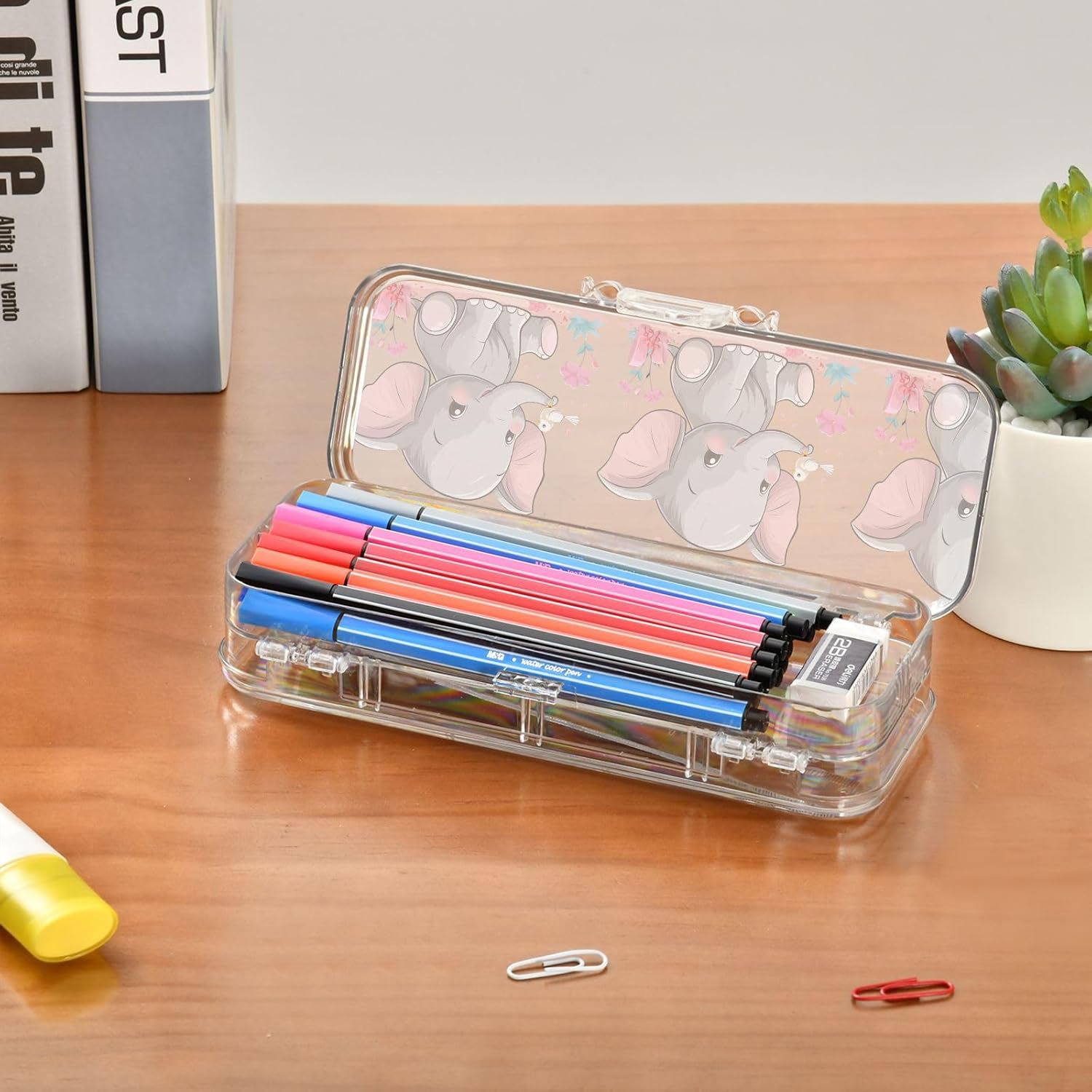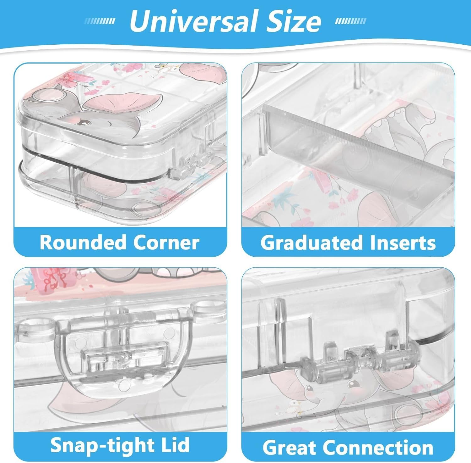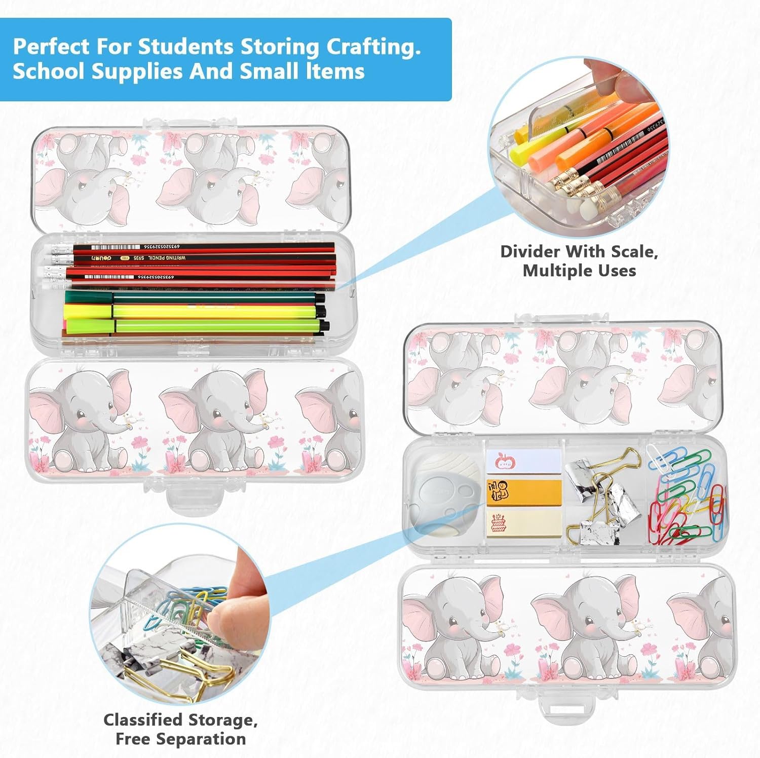 Materiale trasparente: la scatola di plastica trasparente misura 21,1 x 7,6 x 4,8 cm, realizzata in PET trasparente resistente ai graffi. Visualizza facilmente i contenuti e prendi ciò di cui hai bisogno per studiare, lavorare o viaggiare. Doppio strato: il design a doppio strato offre una grande capacità. Entrambi gli strati possono contenere matite, pennarelli o piccoli oggetti come gomme, graffette e clip. Consigliato per bambini dai 3 anni in su. Conservazione personalizzabile: la scatola trasparente include 3 divisori corti (6 cm) e 1 lungo (19 cm). Rimuovili facilmente per progettare 6 sezioni, risolvendo la disorganizzazione e mantenendo ogni piccolo oggetto classificato. Portatile e sicuro: custodia compatta per scuola, ufficio, gite o viaggi. La chiusura a scatto mantiene il contenuto al sicuro durante . Trasporta oggetti artistici, articoli di cancelleria o oggetti essenziali da viaggio ordinatamente organizzati Coperchio sicuro a scatto: l'affidabile chiusura a scatto mantiene entrambi gli strati saldamente chiusi, garantendo che tutto rimanga perfettamente in posizione durante lo zaino.