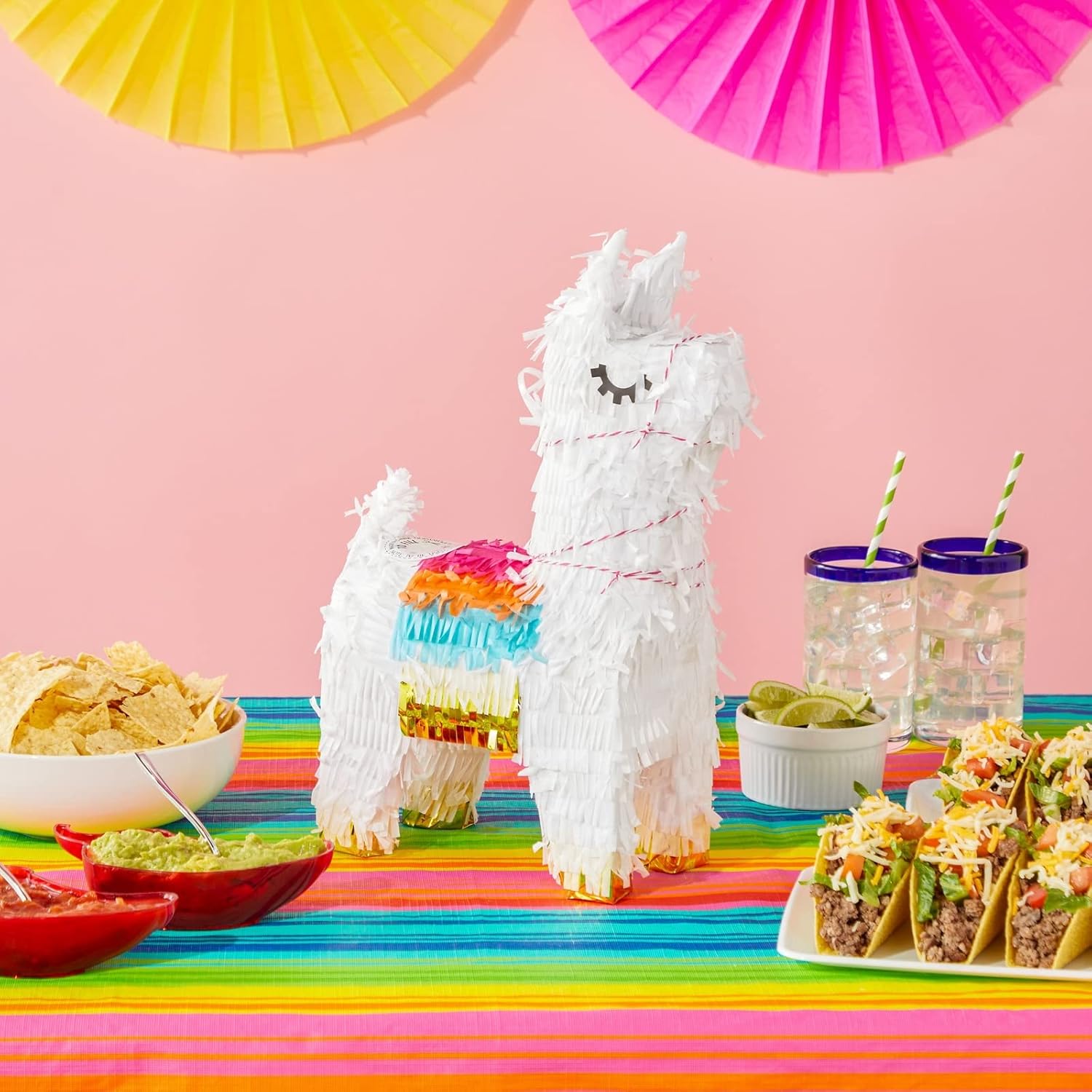 Contenuto della confezione: 1 piñata di lama bianca con lamina dorata e accenti colorati. Farcitura: basta riempirla con caramelle e piccoli giocattoli. Pratico: può essere appeso o posizionato sul tavolo come decorazione per le feste. Ideale per: feste di compleanno, feste. Dimensioni (L x P x A): 21,6 x 11,4 x 38,1 cm