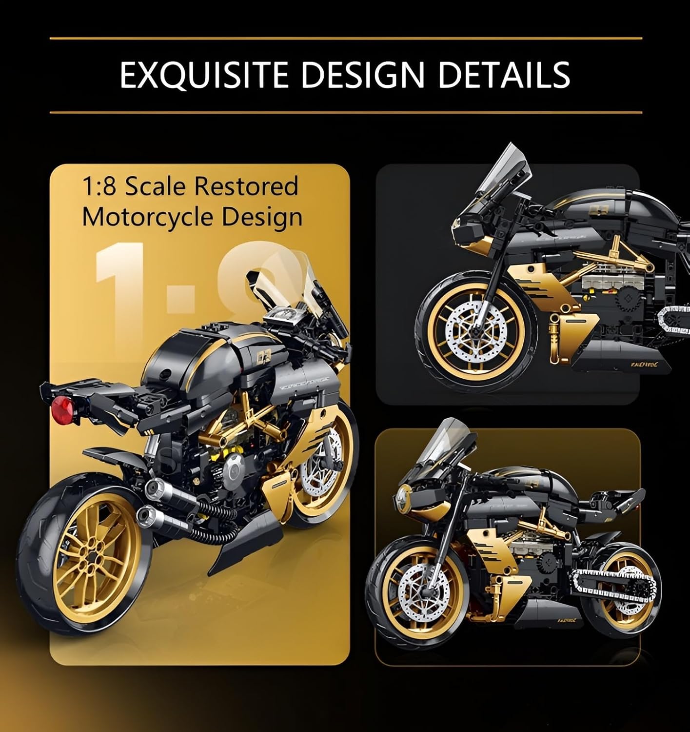 【Blocchi di motocicletta】 Questo modello di motocicletta in scala 1:8 riproduce perfettamente l'aspetto classico dell'originale. Sia sullo scaffale che per il gioco fantasioso, questo modello è un omaggio al design motociclistico. 【Adatto a tutte le età】 Il nostro kit modello di moto contiene 506 pezzi di elementi costitutivi e viene fornito con istruzioni passo passo a colori che sfidano e intrattengono sia i principianti che i costruttori esperti. 【Design realistico】 Questo set per moto presenta un corpo liscio e aerodinamico, tubi di scarico realistici e manubrio mobile. Mettere insieme questi dettagli ti riempirà di orgoglio. 【Qualità Premium】 Questo modello di mattoncini per moto è realizzato in materiale durevole e di alta qualità con una superficie liscia e priva di sbavature. Le istruzioni passo passo sono semplici e facili da capire, quindi chiunque può facilmente assemblare il modello. 【Regalo per gli appassionati di motociclette】 Questo modello di motociclette ad alta tecnologia è un'ottima scelta per compleanni, vacanze o occasioni speciali. Attira appassionati di ogni ceto sociale, dagli amanti delle motociclette agli appassionati di architettura.