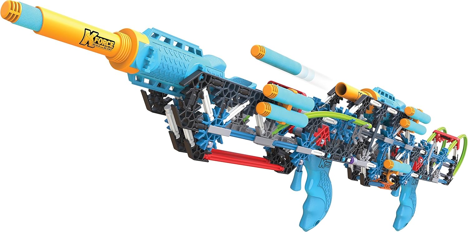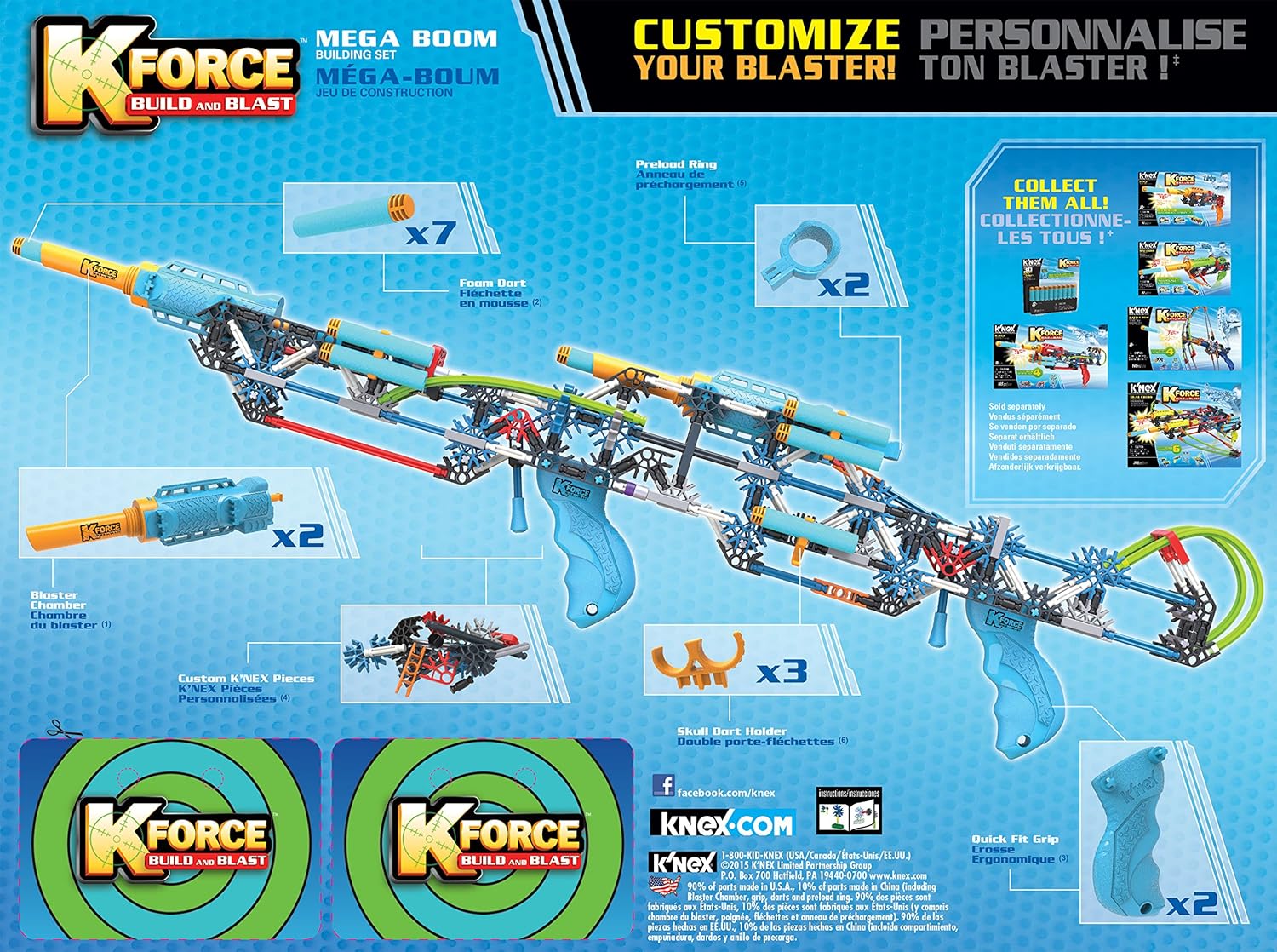 Costruisci il tuo k-force mega boom blaster in 6 modi diversi Manico ergonomico , 7 freccette morbide Spara fino a 22 metri Compatibile con tutti i k-force blaster knex Dagli 8 anni in su