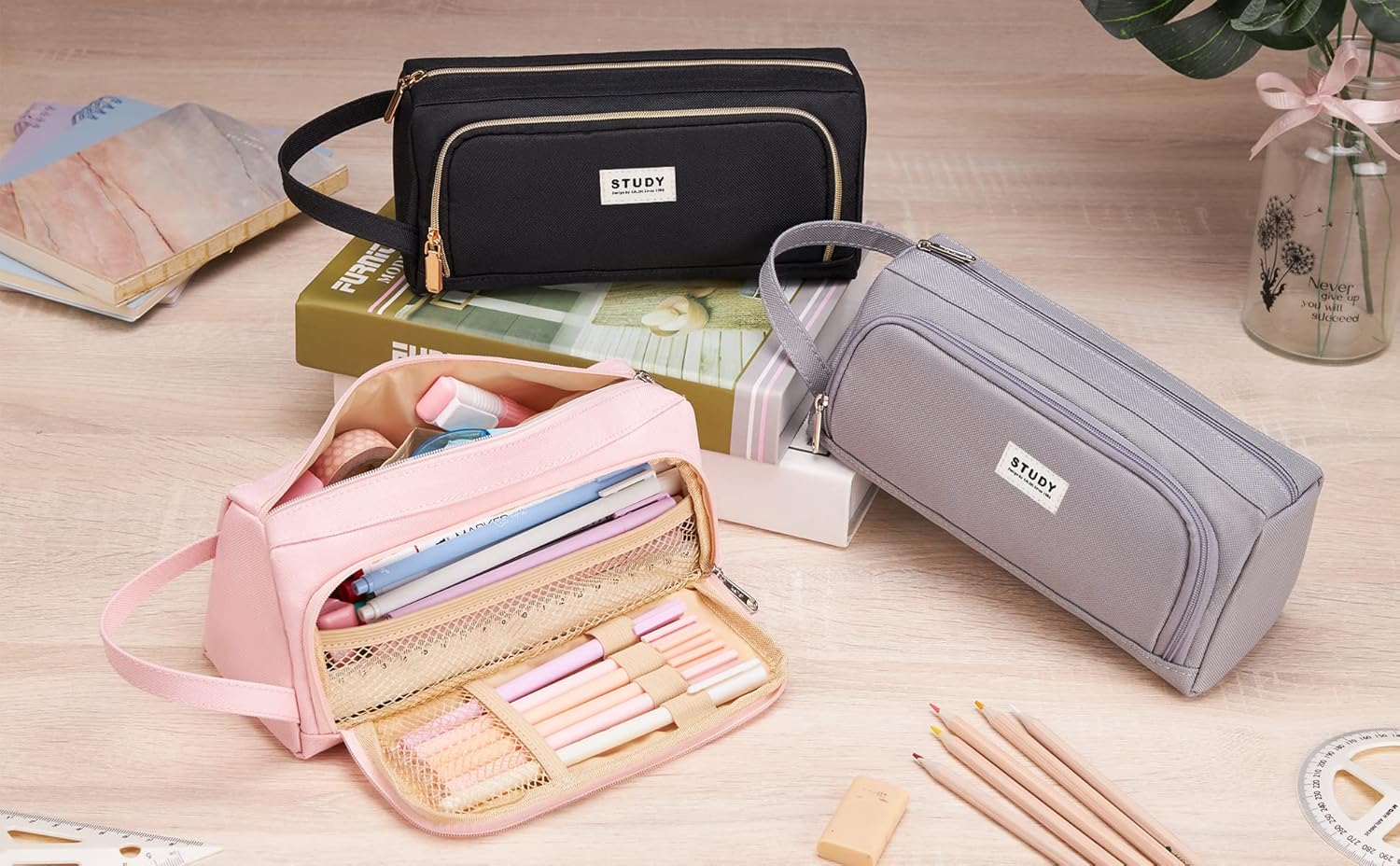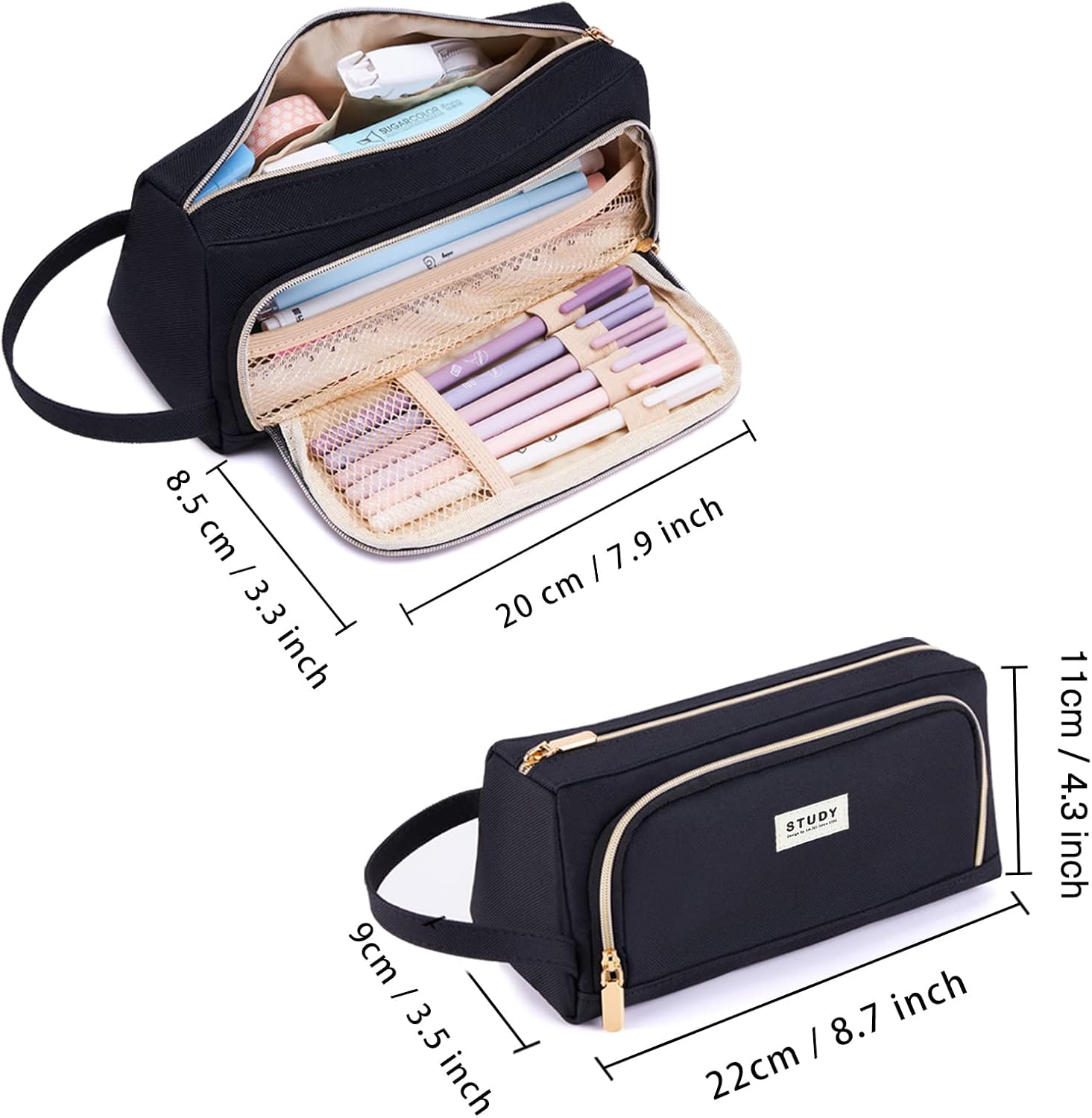 Grande capacità: questo astuccio offre un ampio scomparto principale per 50-60 penne. Sulla parte anteriore è presente una cerniera lampo. Quando si apre la cerniera, ci sono 4 scomparti per le penne che sono utilizzati frequentemente. Design comodo. Sulla parte anteriore di questo astuccio c'è una maglia a rete. Grazie alla rete, la cancelleria non cade. Questo astuccio ha una maniglia che facilità il trasporto. Materiale: questa custodia per penne è realizzata in PVC robusto e di alta qualità. Misure e peso: 22 cm x 9 cm x 11 cm (lunghezza x larghezza x altezza). Peso: 80 g.