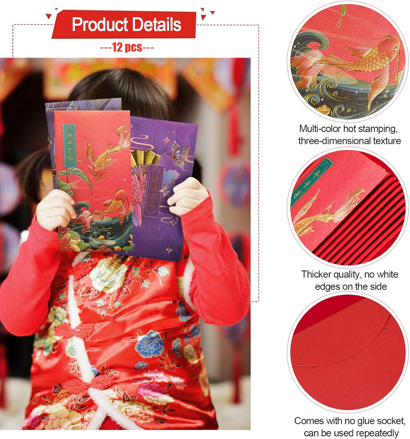 🎉 Il pacchetto include: I nostri prodotti includono 12 buste rosse cinesi con design abbronzante a 6 colori.Il motivo della busta ha un forte stile cinese con colori diversi. La dimensione di ogni carta è di circa 3,54 * 6,69 pollici. 🎉 Design raffinato: le nostre buste rosse hanno squisiti pavoni, gru, loto, pesci rossi e altri motivi in stile cinese. Il design abbronzante rende la busta rossa molto delicata. 🎉Materiale: le buste rosse sono realizzate in carta perlata bianca di alta qualità. Il tocco della busta rossa è molto confortevole ed elegante. 🎉 Buoni auguri: su ogni busta rossa è scritta una benedizione cinese. Le buste rosse portano pace e salute alle persone benedette e una carriera tranquilla. Sii felice nei giorni a venire, tutto va bene. 🎉 Occasioni adatte: buste regalo in denaro fortunato perfette per Capodanno, Festival di Primavera, Natale, matrimonio, regali di compleanno, parenti in visita o altre occasioni speciali.