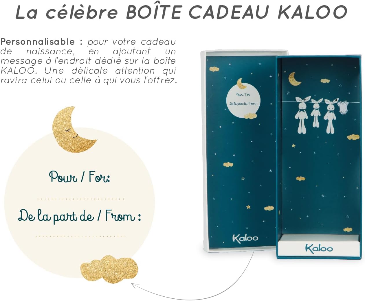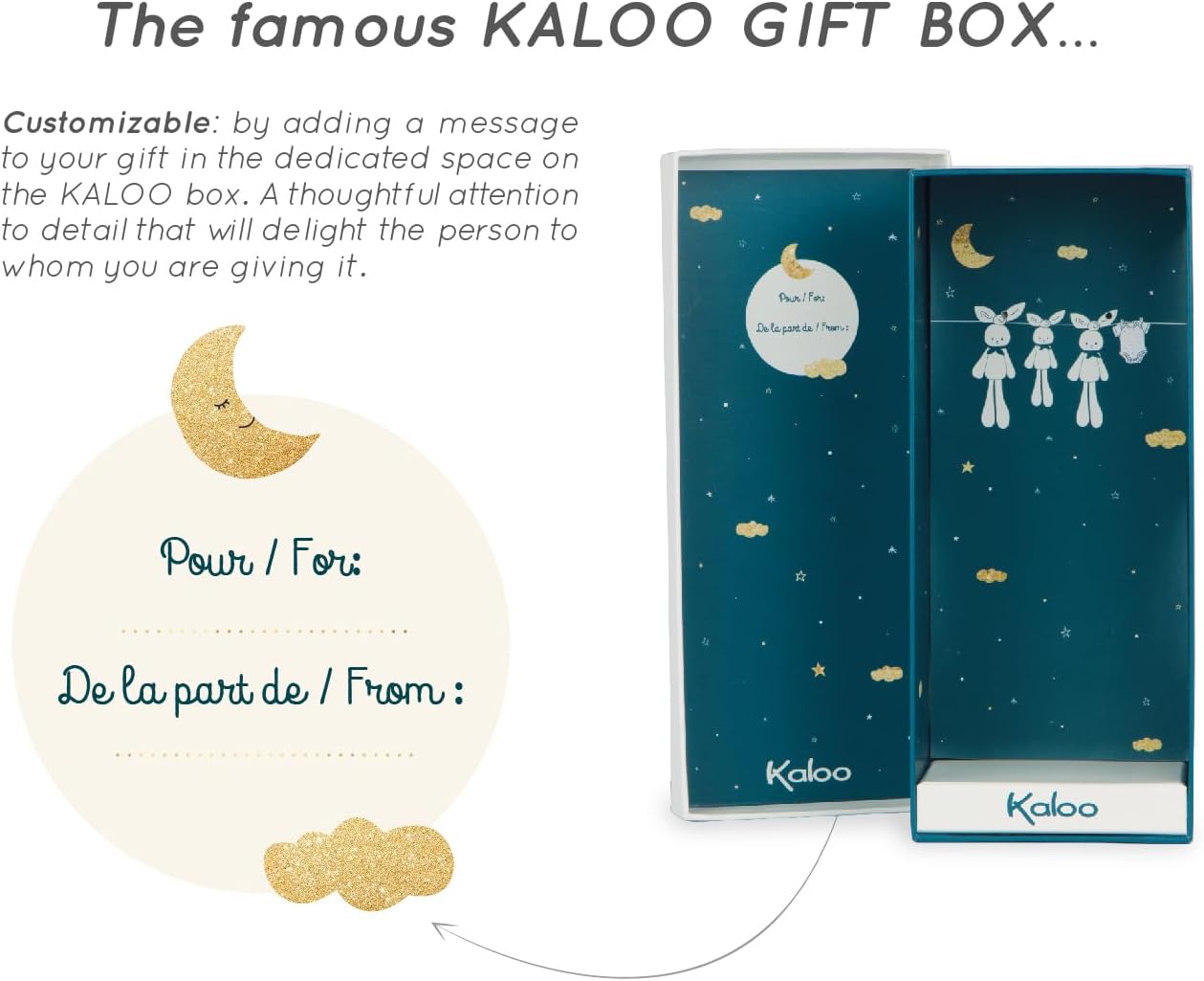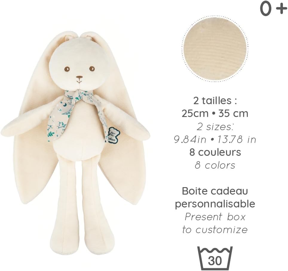 IL MIO DOUDOU LAPINOO: questo doudou a forma di coniglietto color crema alto 35 cm (orecchie escluse) sarà il compagno ottimo per il tuo bambino fin dalla nascita; morbido grazie alla sua pelliccia in velluto a coste e decorato con una simpatica bandana fantasia, porterà un piccolo tocco di colore e tenerezza nella cameretta del tuo bambino OTTIMO REGALO PER LA NASCITA: questo doudou di Kaloo conquisterà grandi e piccini con la sua morbidezza e il suo simpatico aspetto, e accompagnerà il neonato per molti anni; è presentato in una confezione regalo personalizzabile con un messaggio LAPINOO DI KALOO: lasciati conquistare dalla collezione "Lapinoo" di Kaloo, una famiglia di coniglietti teneri e delicati che accompagnano i bambini fin dalla nascita; questi doudou da mordere e coccolare possono essere appesi ovunque grazie alle lunghe orecchie; realizzati con materiali morbidi ed eleganti, questi simpatici coniglietti diventeranno i compagni preferiti dei più piccoli CARATTERISTICHE : Contiene un peluche; Dimensioni del peluche : Lunghezza 12 cm x Larghezza 8,5 cm x Altezza 35 cm; Materiale(i) utilizzato(i) : Velluto; Fascia d'età consigliata : dalla nascita PRIMI MOMENTI DI FELICITÀ: Kaloo propone una collezione completa di teneri compagni che veglieranno sui più piccoli, rassicurandoli e guidandoli durante le loro prime scoperte; Kaloo è un abbraccio di amore, tenerezza e conforto che avvolgerà il neonato sin dalla nascita, e lo aiuterà a crescere e svilupparsi apportando benessere; i doudou, i peluche e i giocattoli multisensoriali Kaloo sono progettati in Francia e sviluppati prestando particolare attenzione allo stile, ai colori e alla qualità dei materiali