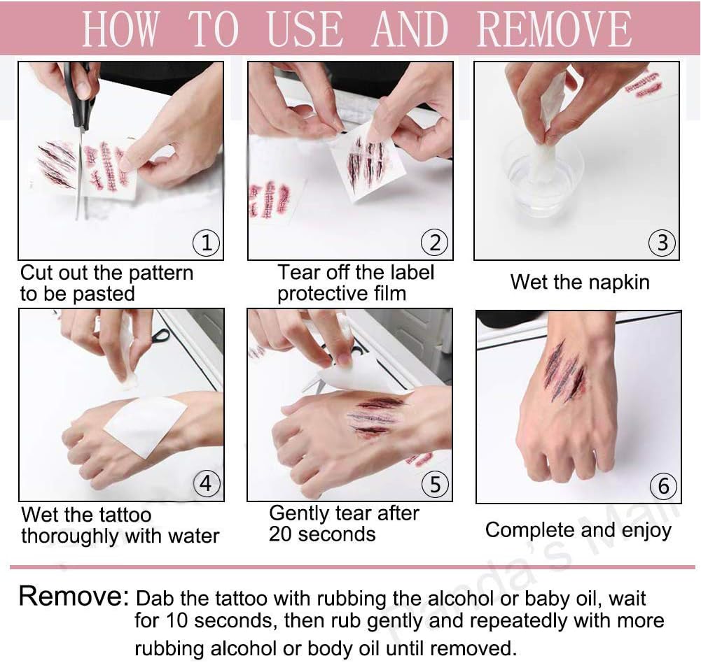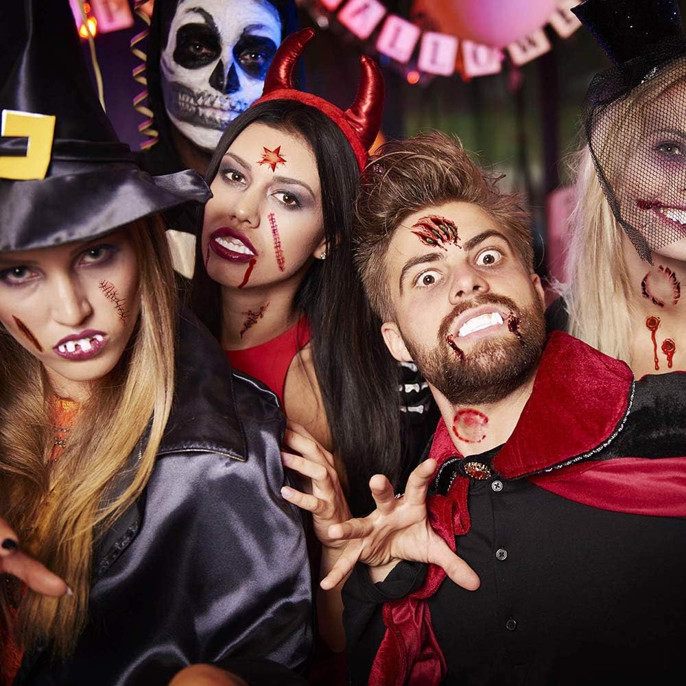 Tatuaggi temporanei a tema Horror Ideali per make-up di halloween o feste in maschera Facili e veloci da applicare - Impermeabili ed a lunga durata Sicuri per la pelle - Adatti ad adulti e bambini Set 4 fogli con 19 tatuaggi temporanei diversi