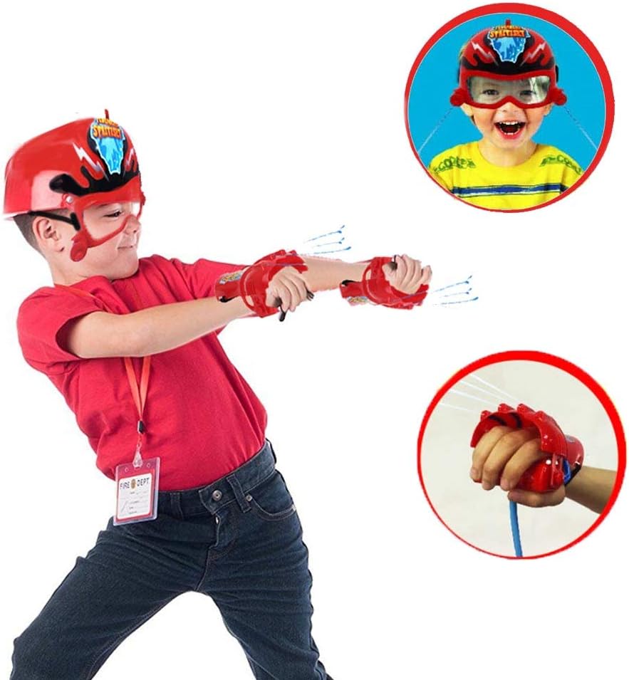 Aiuta i pompieri a spegnere gli incendi! Spruzza acuqa con getto a lungo raggio Serbatoio con tappo a vite: facile da ricaricare Casco con visiera con valvole sui lati per sparare acqua - Guanto rigido con sistema meccanico per spruzzare acqua - Serbatoio a forma di bombole da indossare sulle spalle Adatto a bambini dai 3 anni in sù