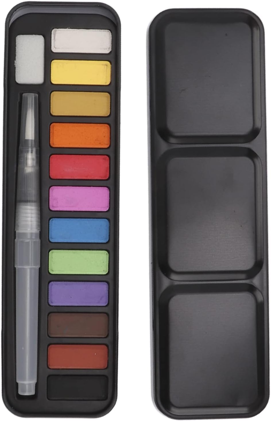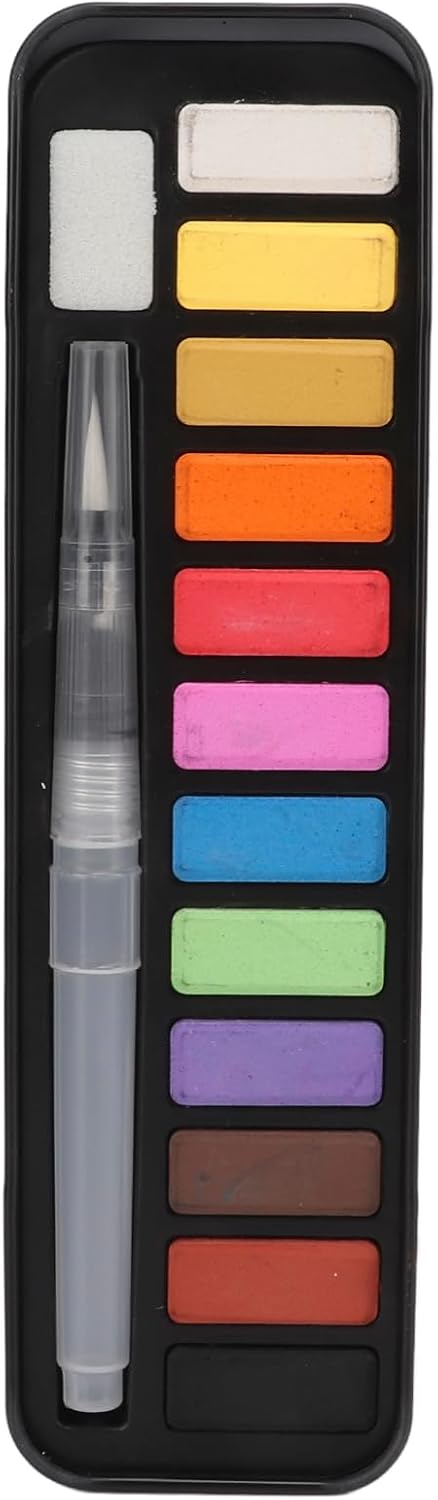 12 colori: questo set di vernici ad acquerello comprende 12 colori ad acquerello, una penna stilografica, una spugna, soddisfacendo le tue varie esigenze. Pigmento senza veleno: questo set di vernici ad acquerello adotta un pigmento premium, che è senza veleno e innocuo, affidabile per i bambini da usare. Forte adesione: queste vernici per il colore dell'acqua possiedono una formulazione premium e una consistenza lucida per una forte adesione. Colori vibranti: queste vernici per il colore dell'acqua presentano un'eccellente semplicità della luce e colori vibranti, realizzando sottili effetti di trasparenza. ideale: queste vernici per il colore dell'acqua con 12 colori sono un ideale e squisito per i tuoi amici, bambini e familiari che amano la pittura.
