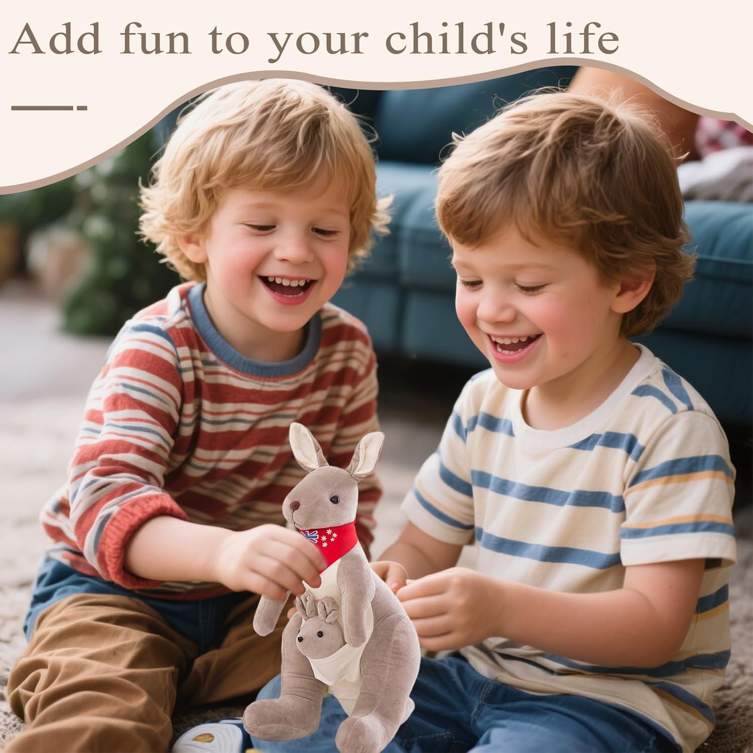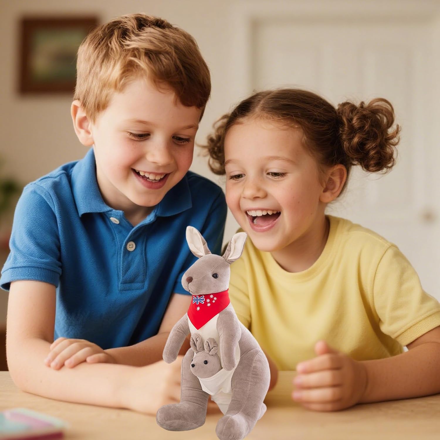 Materiale di alta qualità: realizzato con imbottitura in cotone PP di alta qualità e morbido tessuto di cotone, questo peluche a forma di canguro, mamma e figlio, è morbido e piacevole. La sua consistenza morbida è allo stesso tempo accogliente e coccolabile, tanto che è difficile lasciarlo andare. Dolce peluche a forma di canguro: il design della dolce mamma canguro grigio e del suo cucciolo è giocoso e unico, non solo amato dai bambini, ma anche un gioiello alla moda per ogni famiglia, che attrae tutti. FACILE DA PULIRE: il peluche a forma di canguro da 32 cm può essere lavato a mano o in lavatrice ed è facile da pulire. In questo modo risparmierai tempo ed energie nella cura quotidiana e avrai sempre un peluche pulito e fresco. REGALO IDEALE: La forma innocente del canguro lo rende un regalo di Natale ideale. Un regalo fantastico per la famiglia, gli amici e i bambini. Che si tratti della festa dei bambini, di un compleanno, della festa della mamma, di Natale, di Halloween, di Capodanno o di qualsiasi altro evento speciale, sicuramente farà piacere al destinatario. Ampiamente utilizzato: questo peluche ha una vasta gamma di utilizzi. Non è solo un divertente compagno di giochi che i bambini adorano, ma porta anche un'atmosfera calda e decorativa nella loro cameretta. Si tratta inoltre di una collezione di animali necessaria per soddisfare le esigenze di diverse scene.