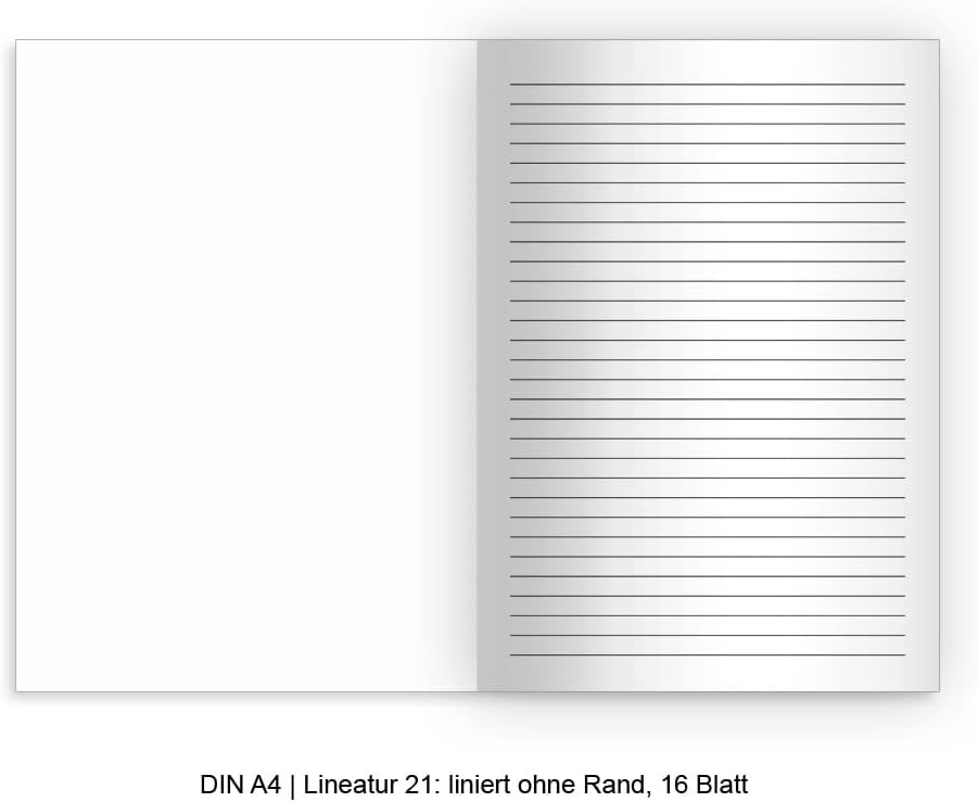 2 quaderni personalizzati Formato: DIN A4, riga 21: a righe senza bordo, 16 fogli - Design: quaderno/quaderno/diario Kartenkaufrausch Carta di copertina: 170 g liscia, lucida; Esterno copertina quaderno/quaderno/diario: stampa a 4 colori; Quaderno/taccuino/diario scolastico Interno copertina: stampa in bianco/nero; Quaderno/taccuino/diario Pagine interne: carta da 80 g, senza legno, bianca, struttura della carta aperta per una scrittura più bella. Ideale anche come quaderno per simpatici pensieri, appunti e schizzi. Che si tratti di un business plan, di una pianificazione del giardino, di un diario di bilancio, di un diario della felicità o di un resoconto di viaggio, scrivi ciò che ti emoziona e rendilo unico personalizzandolo. Combina i nostri quaderni e ottieni ELEGANTI ACCESSORI PER LA SCRITTURA per scrivere, imparare, calcolare e pensare in modo più divertente. +++ Ogni quaderno è prodotto individualmente per te. Stampati con design eleganti e di alta qualità, questi quaderni portano colore e gioia al tuo zaino e alla tua scrivania. Pratici in formato DIN A4 e DIN A5: non sono troppo spessi e stanno in ogni tasca. Scegli tra i numerosi motivi di copertina la copertina che meglio si adatta alla tua situazione di vita. Utilizza con profitto le nostre bellissime riviste. Che si tratti del vostro piano aziendale, dei vostri seminari o del progetto del giardino. Annota le tue idee o tieni il libro e il diario di casa o scrivi semplicemente il tuo resoconto di viaggio.