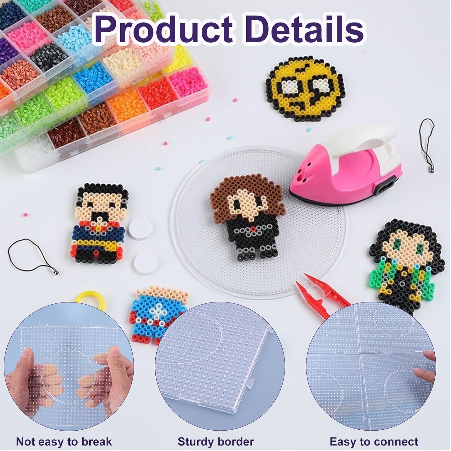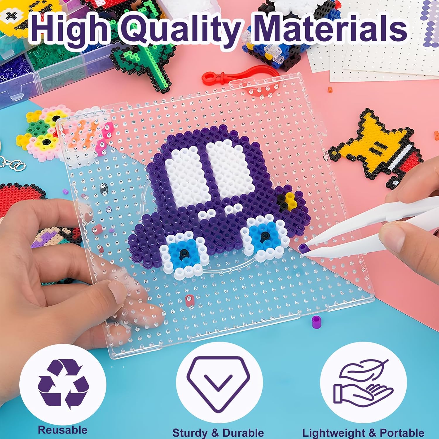 【Set di piastre per perline Perler】 Questo set contiene 4 modelli quadrati e 2 modelli rotondi, ciascuno dotato di fori precisi per perline da 5 mm per fissare stabilmente le perline. Questi modelli non solo possono essere utilizzati singolarmente, ma possono anche essere assemblati in modelli più grandi per espandere lo spazio creativo e incoraggiare una creatività senza fine. 【Materiale di alta qualità】 Tutti i modelli sono realizzati in plastica di alta qualità, che garantisce durata e stabilità. La plastica è leggera e facile da usare, adatta a tutte le età e facile da pulire e mantenere, consentendo un utilizzo a lungo termine del prodotto. 【Design della composizione unico】 Il design unico dei modelli quadrati consente loro di essere assemblati in modelli più grandi per creare modelli più complessi e diversificati. Questo design non solo aumenta la flessibilità del prodotto, ma offre agli utenti anche opzioni più creative. Facile da usare: la versatilità di questo set è evidente nella sua facilità d'uso e adattabilità. Che siano principianti o dilettanti esperti, tutti possono utilizzarlo facilmente e creare modelli di perline personalizzati. Inoltre, i modelli rotondi offrono agli utenti ulteriori opzioni di forma e aumentano la varietà di design. 【Usi versatili】 Questo set di modellismo con perline è adatto a varie occasioni, tra cui intrattenimento familiare, istruzione scolastica, laboratorio creativo, ecc. Non può solo servire come strumento per le attività genitore-figlio per promuovere l'interazione tra i membri della famiglia, ma anche come strumento educativo per insegnare ai bambini il riconoscimento della forma e del colore, essendo anche la scelta ideale per gli appassionati per mostrare la propria creatività.