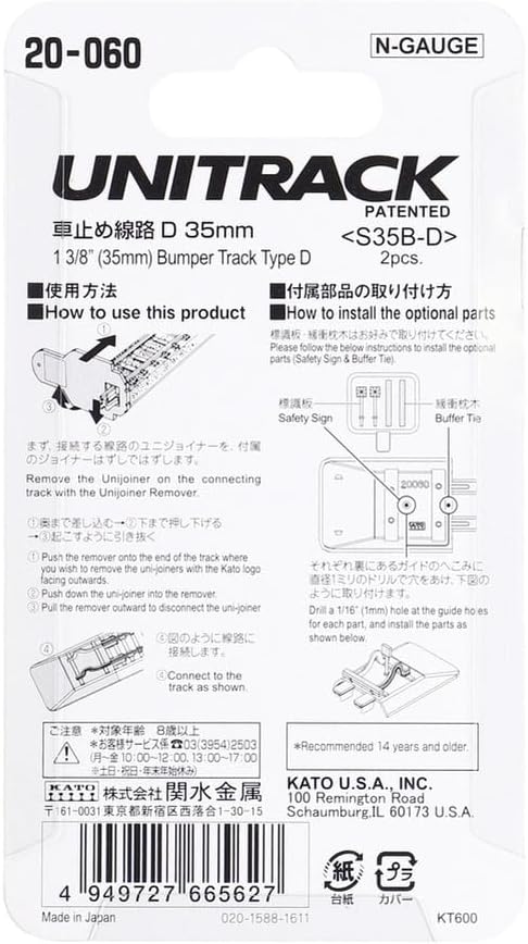 È un prodotto finito e l'aspetto è impostato con una normale pista di legno per l'acqua del sonno (letto di zavorra). Binario Dritto con Paraurti D 35mm (2 pezzi) Importazione Giappone Modello: 20-060 KATO è un'azienda giapponese che progetta, produce e vende modelli ferroviari. È uno dei principali produttori di vendere modelli ferroviari. Kato si attiene alla propria produzione e sviluppa molti modelli non solo in Giappone ma anche all'estero. Vari sviluppi tecnologici sono stati fatti per realizzare modelli più realistici e molto apprezzati dall'estero.