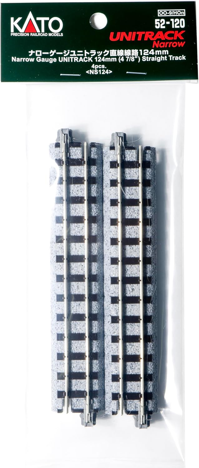 KATO A scartamento stretto Uni-Track a calibro stretto Uni-Track binario dritto 124 mm (4 pezzi) Una pista con un ampio fondo stradale distanziato per scartamenti stretti. Puoi ricreare il mondo di Narrow Gauge con un uni-track comodo e sicuro La pista è di 0,4 pollici (9 mm) e la guida utilizza il codice 80. I binari con i fondali rendono il layout facile anche per i principianti