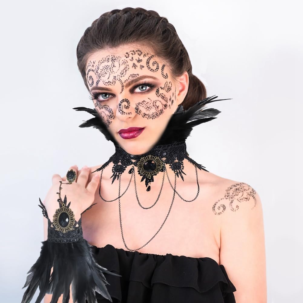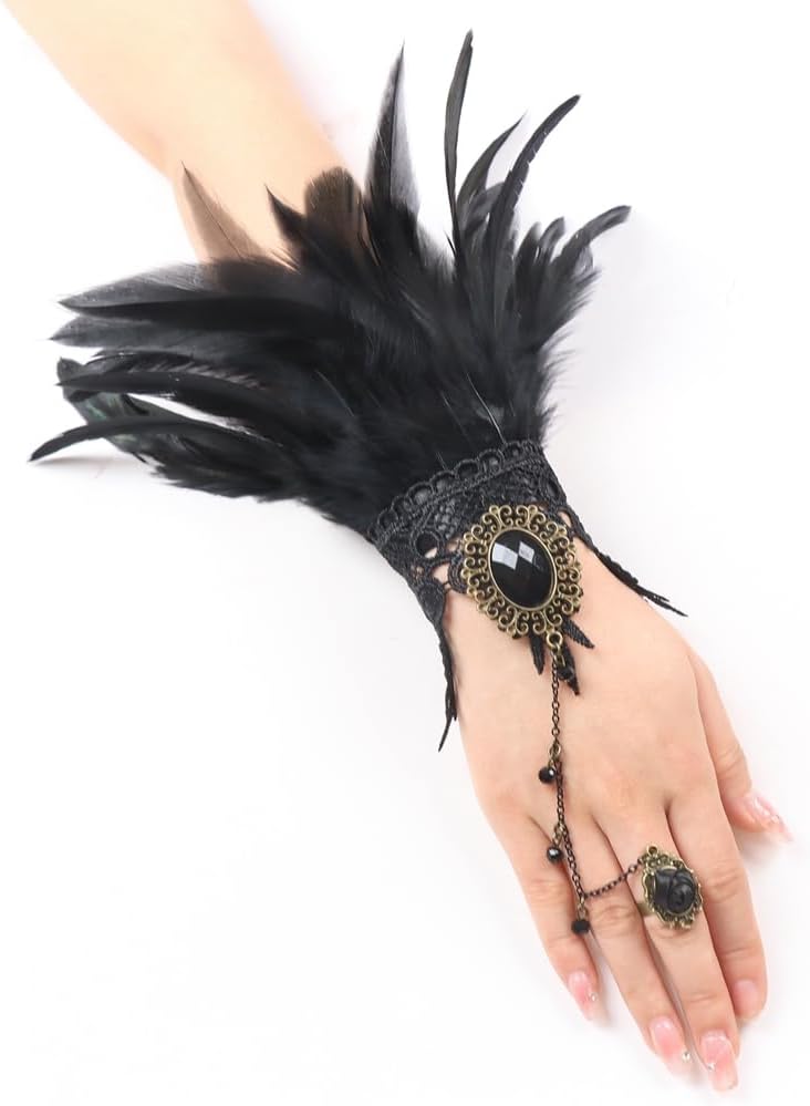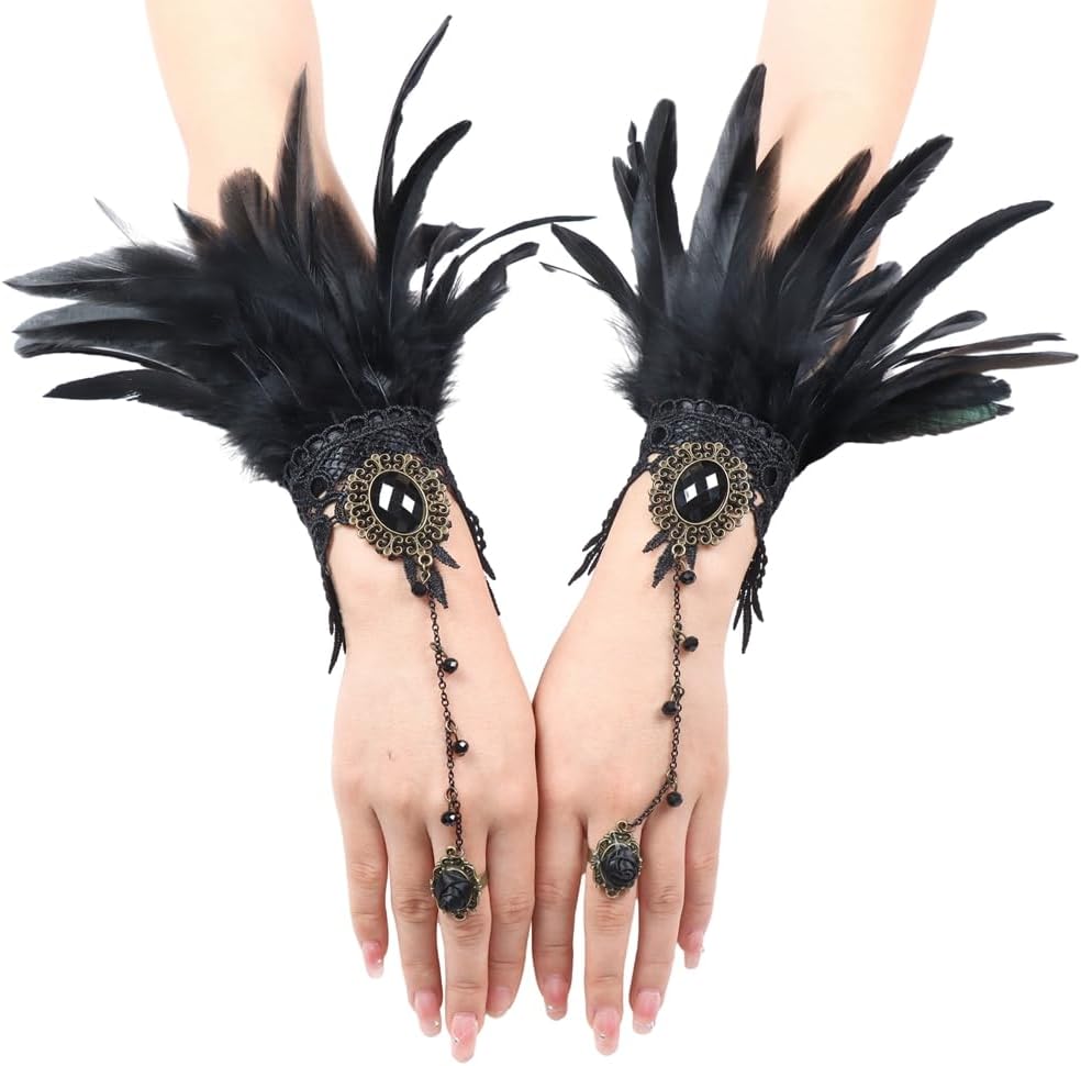 Katutude Girocollo in piume Guanti in piume Colletto in piume di pizzo Vestito operato Collana girocollo gotica Guanti lunghi di Halloween Polsino in piume vintage per matrimonio Carnevale Cosplay Halloween Specifiche: Nome prodotto: Guanti e girocollo in pizzo con piume Materiale: Pizzo e piume Colore: Nero Dimensioni del prodotto: Come mostrato Stile: Stile A/B Quantità: Tipo 1: Collana di piume Tipo 2: 1 Guanto di piume Tipo 3: 1 paio Tipo 4: Colletto di piume + 1 paio di guanti di piume Contenuto della confezione: 1 collare di piume/1 guanto di piume/1 paio di piume Guanti/Colletto in piuma + 1 paio di guanti in piuma